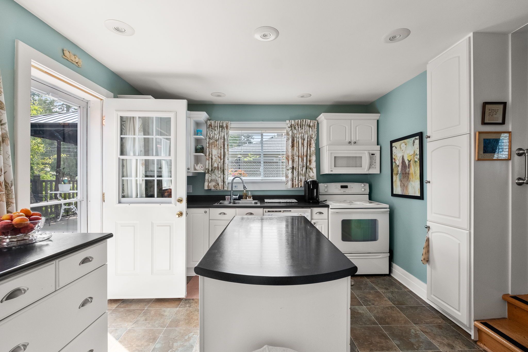 • Bright updated kitchen and tiered backyard deck for outdoor enjoyment.