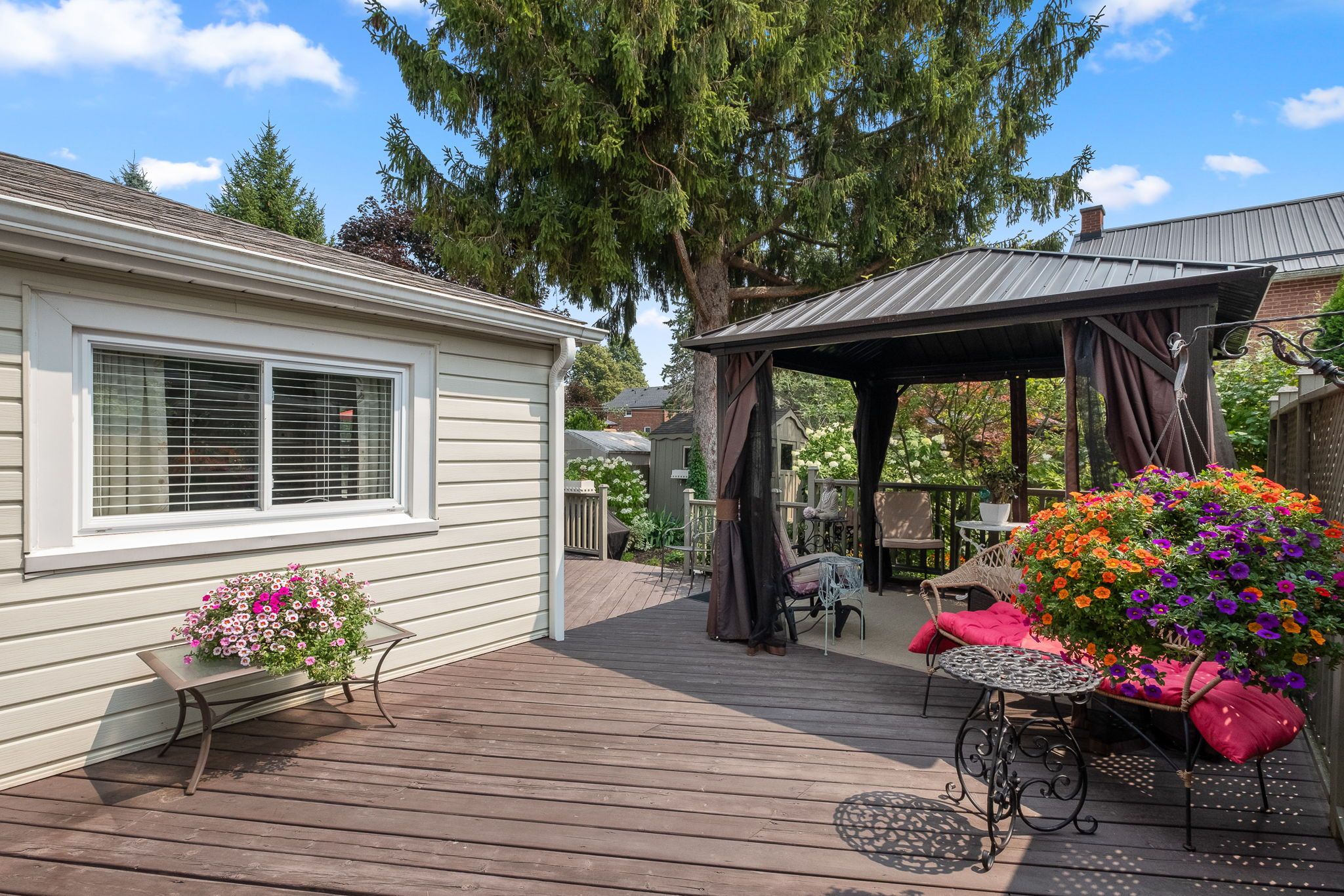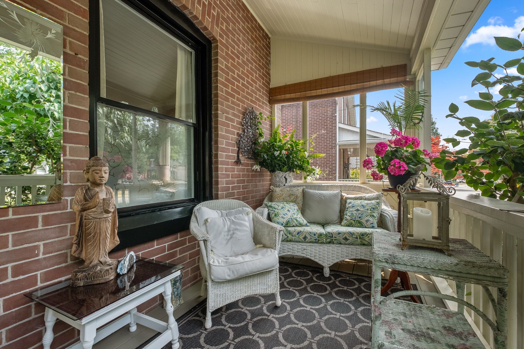 • Whimsical gardens and inviting front porch create a warm first impression.