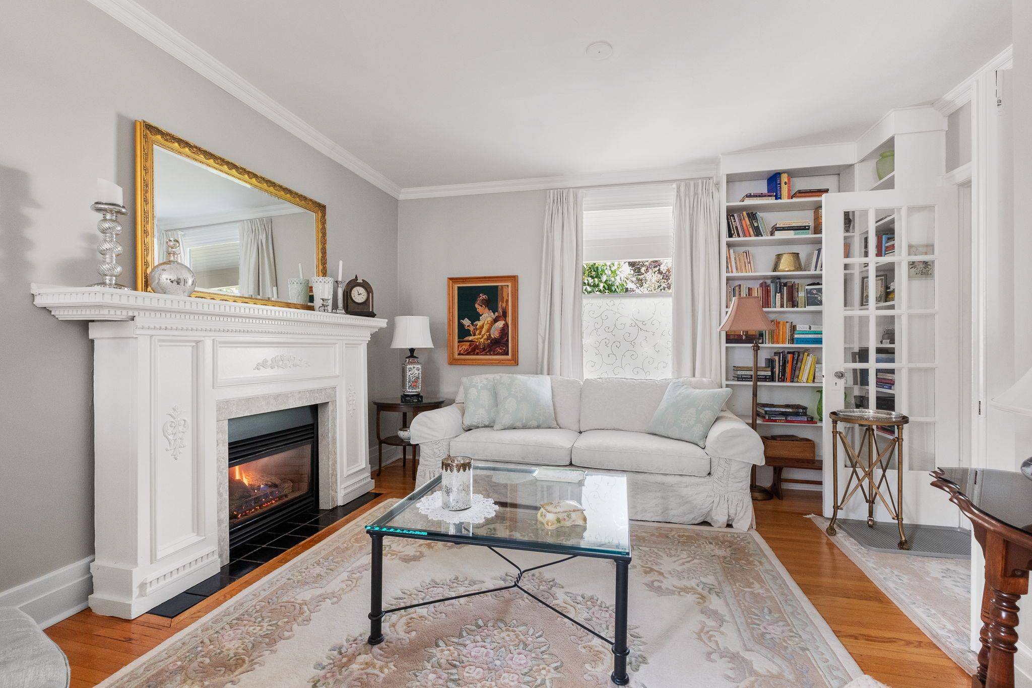 • Cozy living room with gas fireplace perfect for family gatherings.
