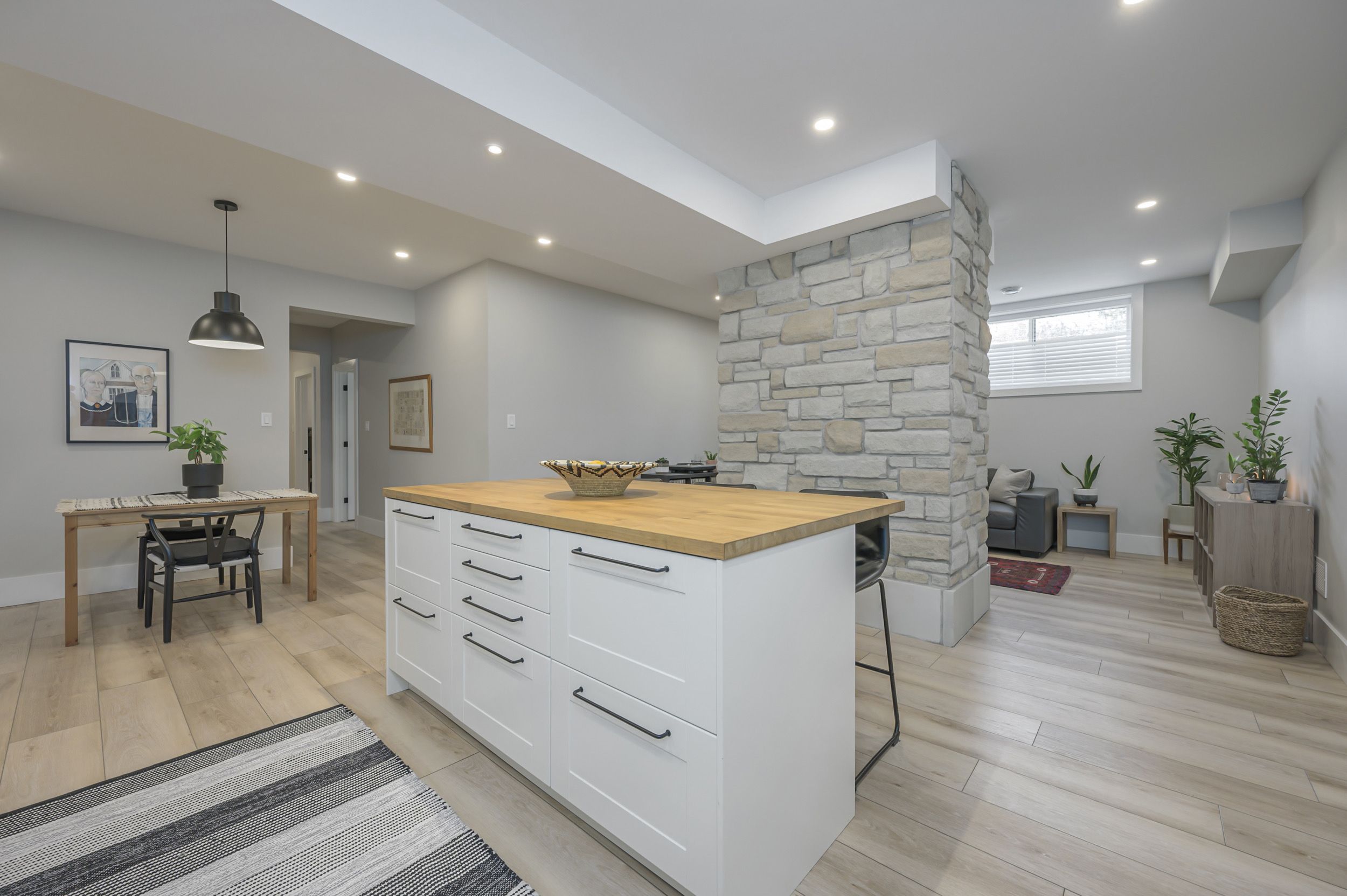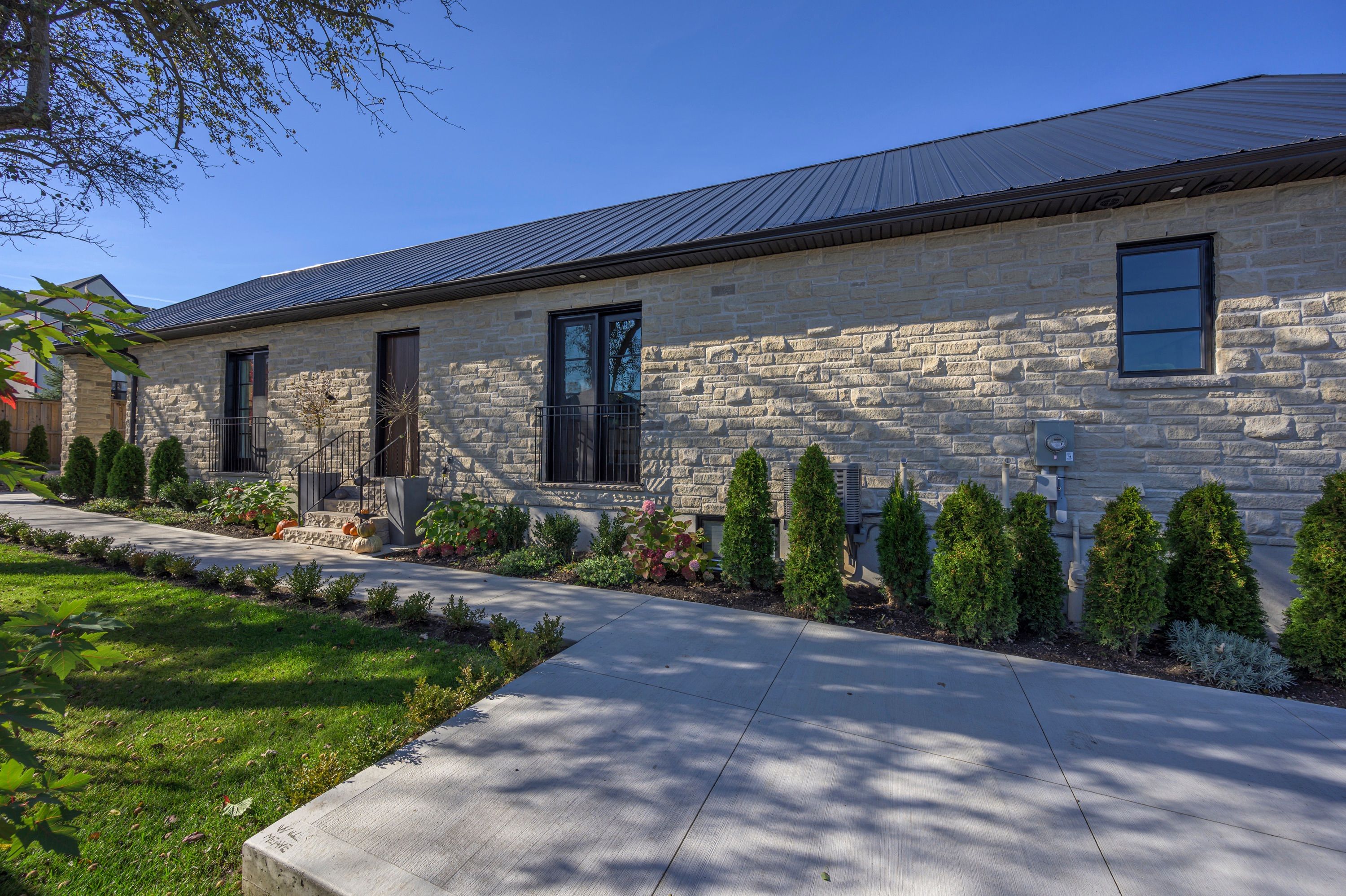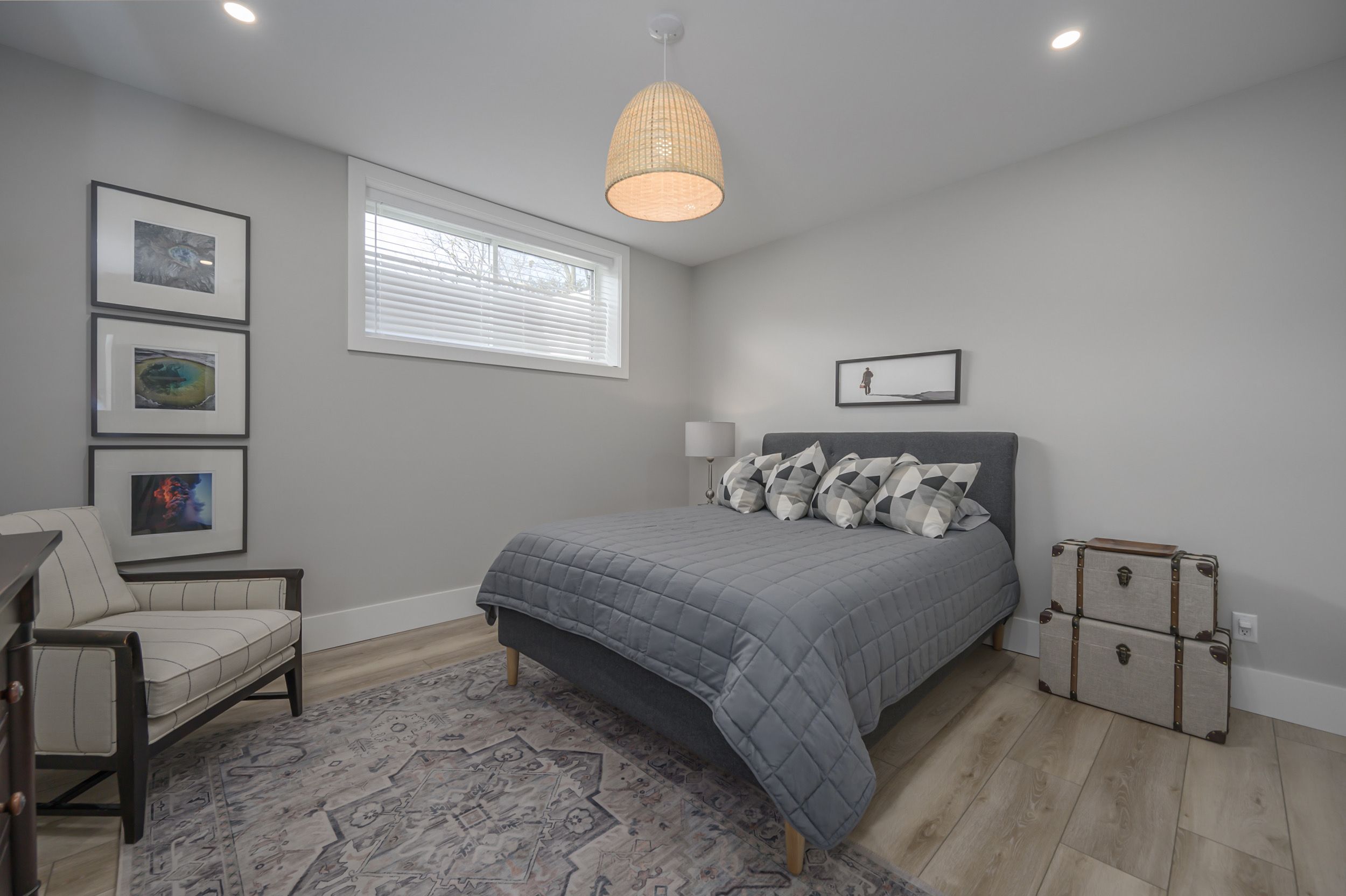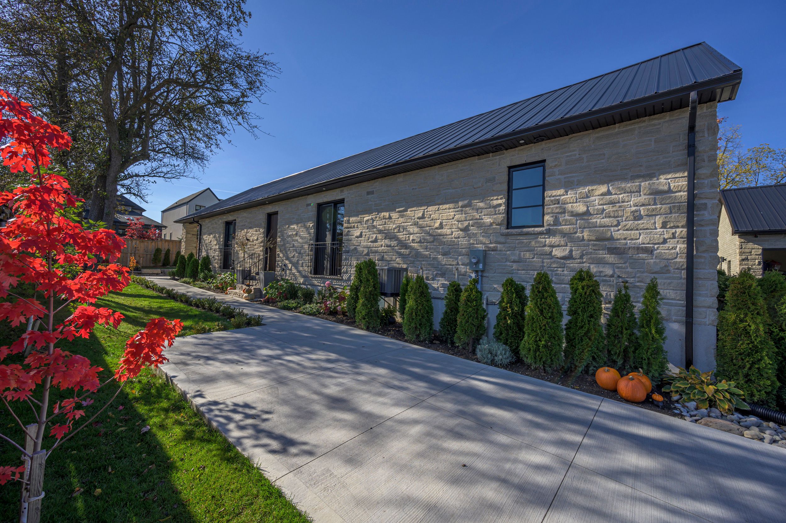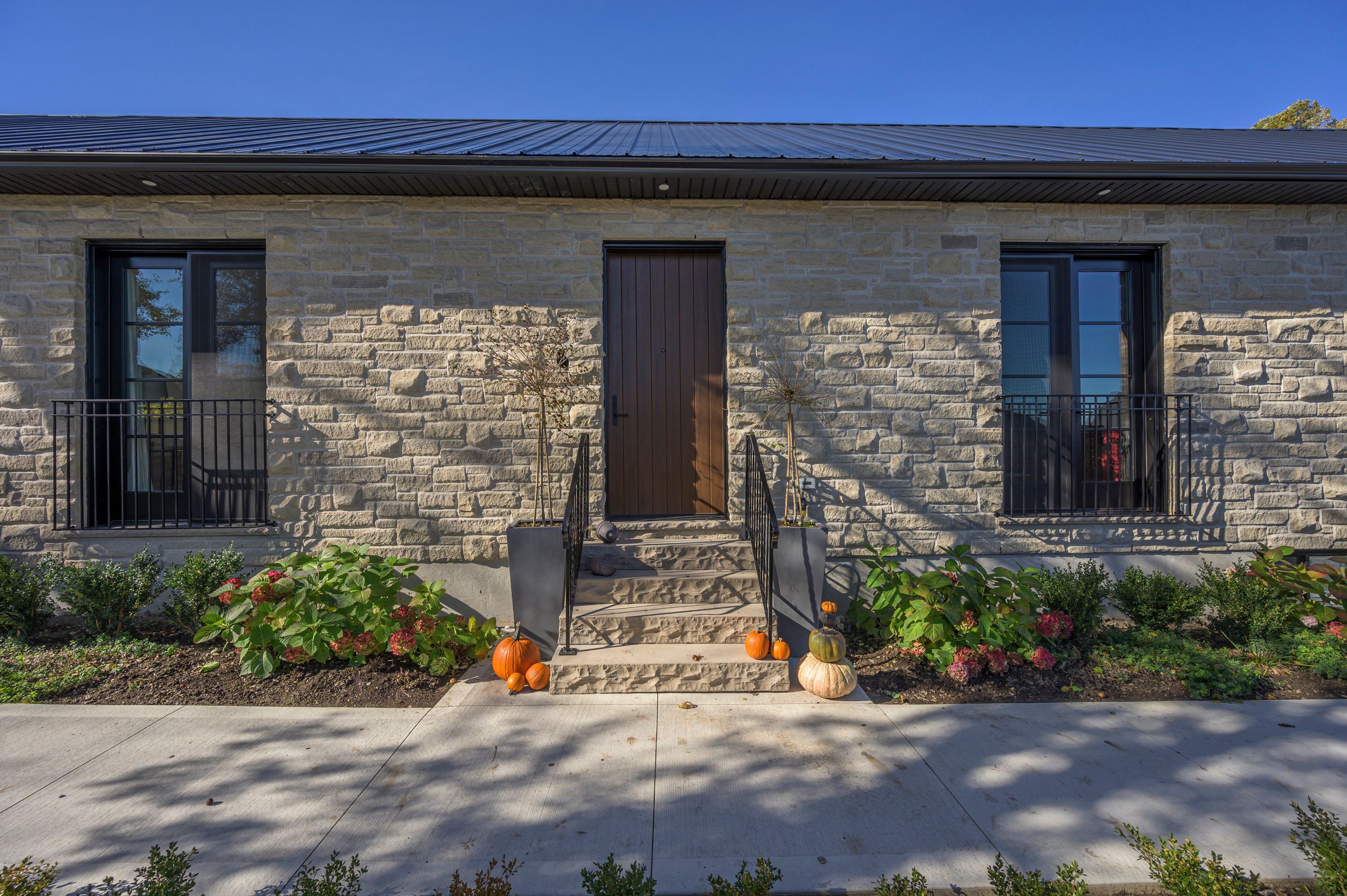 Understated executive bungalow, set intentionally back from the road, behind the mystique of automated privacy gates, creating the english stone-cottage inspired residence found wrapped in trees, tranquility, and quiet prestige. A long, softly illuminated, concrete drive draws you away from traffic to a quiet fully fenced, pool-sized lot, with abundant guest parking and a separate 3-car garage. The timeless stone exterior, romantic juliette balconies, and partially covered verandah set the stage for refined outdoor living, anchored by a two-sided fireplace that invites lingering evenings and effortless entertaining. Inside, soaring 10-ft ceilings on the main level and 9-foot ceilings in the lower level create a sense of volume and light for this modern-european aesthetic. The main floor unfolds in a thoughtful 2-bedroom plus den layout that balances intimacy and openness, centred around a showpiece kitchen with ceiling-height flat-panel cabinetry, quartz surfaces, and a wet bar/servery with garden door access to the terrace. Scandinavian-inspired baths and a serene, boutique-style primary suite complete the upper level with quiet sophistication, while the den adapts easily as a third bedroom. The lower level is equally impressive and remarkably versatile, offering 3 additional bedrooms, 2 bathrooms, a full second kitchen and laundry, and expansive living areas filled with natural light. Whether envisioned as a seamless extension of the main home, a private guest or teen retreat, or an elevated work-from-home, the possibilities are exceptional. Notably, there are no interior load-bearing walls on this level, allowing easy removal of fireplace and island to create an exceptional flex/games/media space. A metal roof, 3-bay garage w/ 220-amp service & the rare setback position complete this private, design-driven residence delivering beauty, presence, and flexibility in equal measure-quietly tucked away, yet moments from hospitals, wortley village, and highland golf.