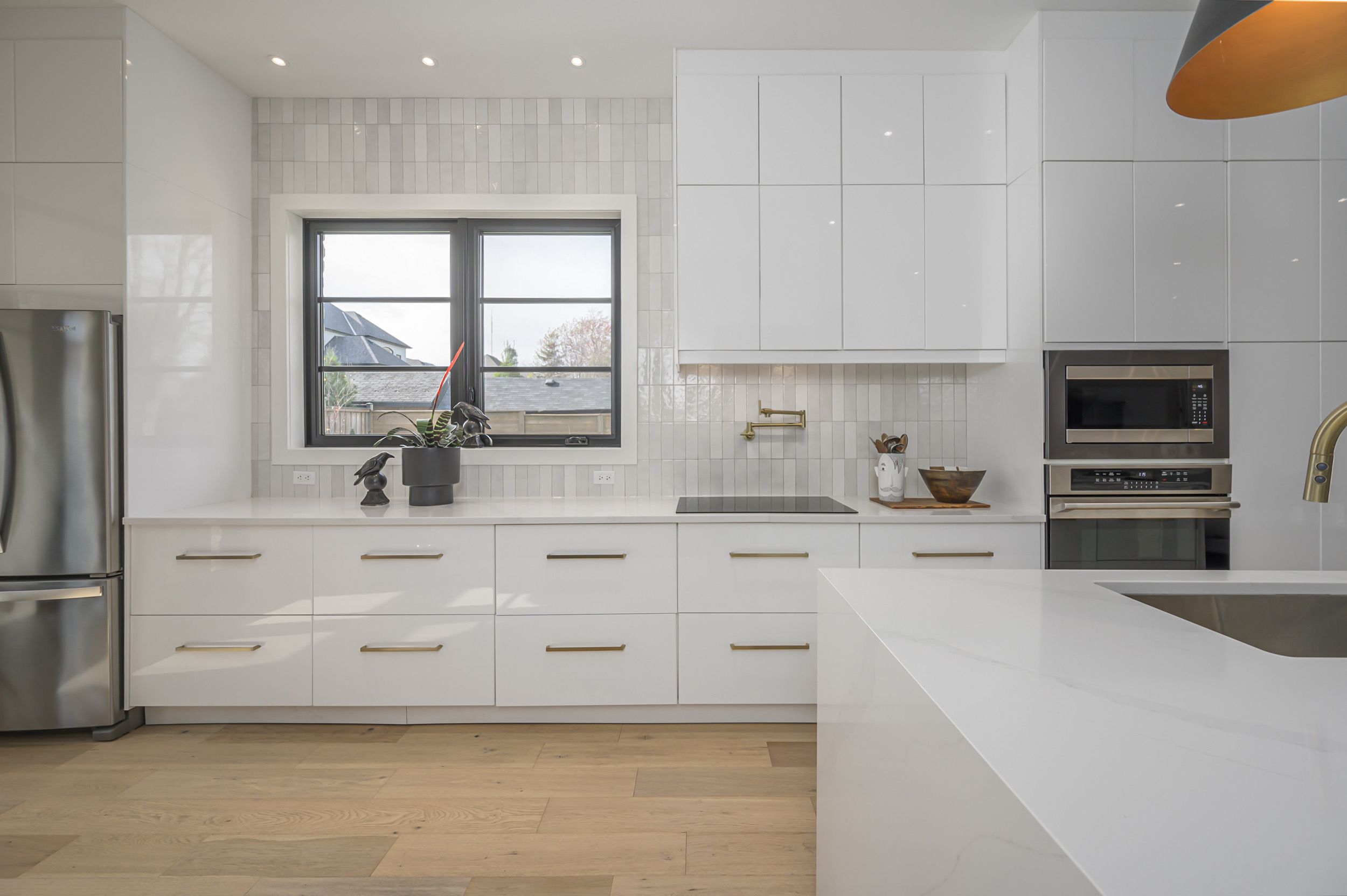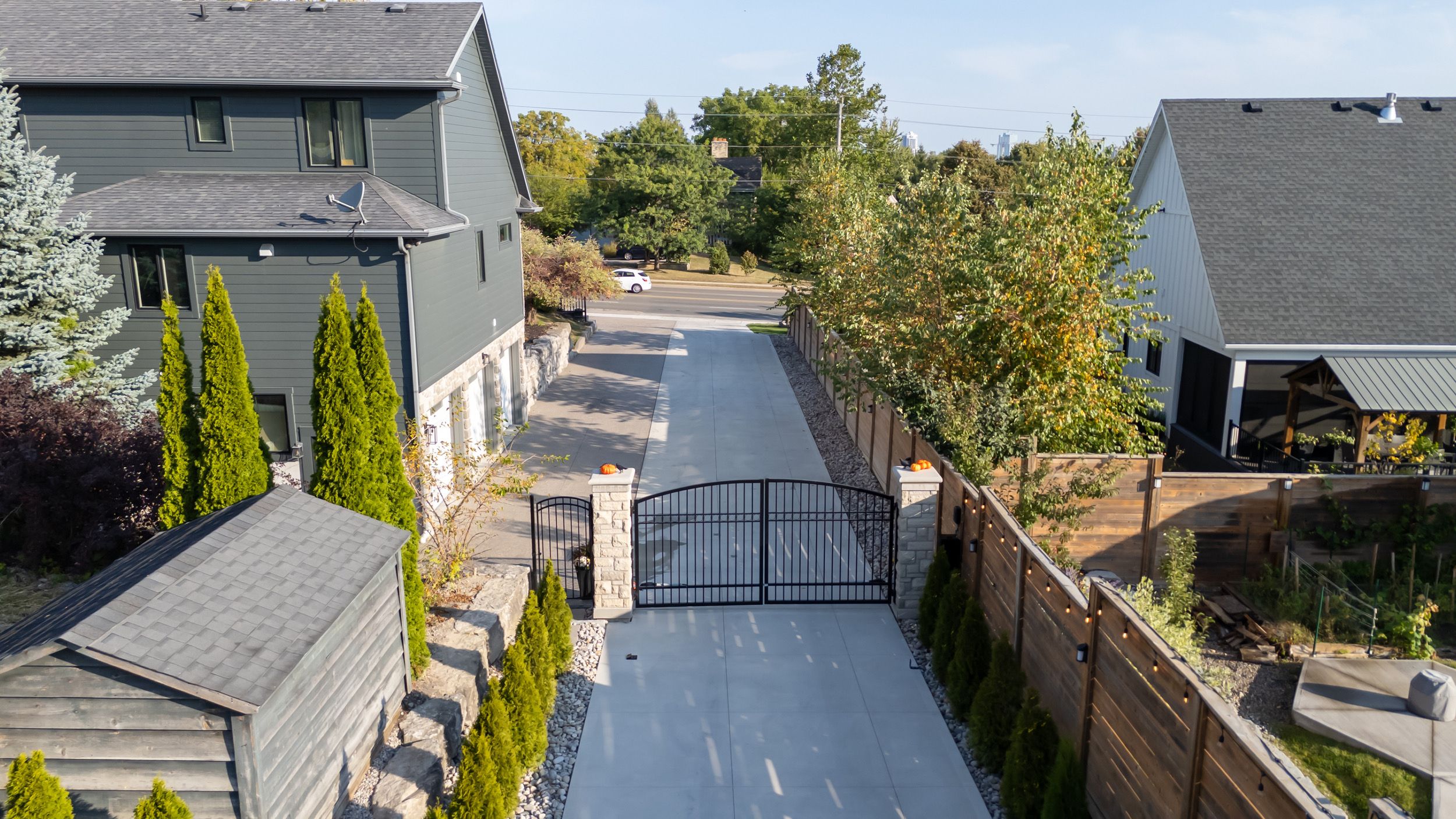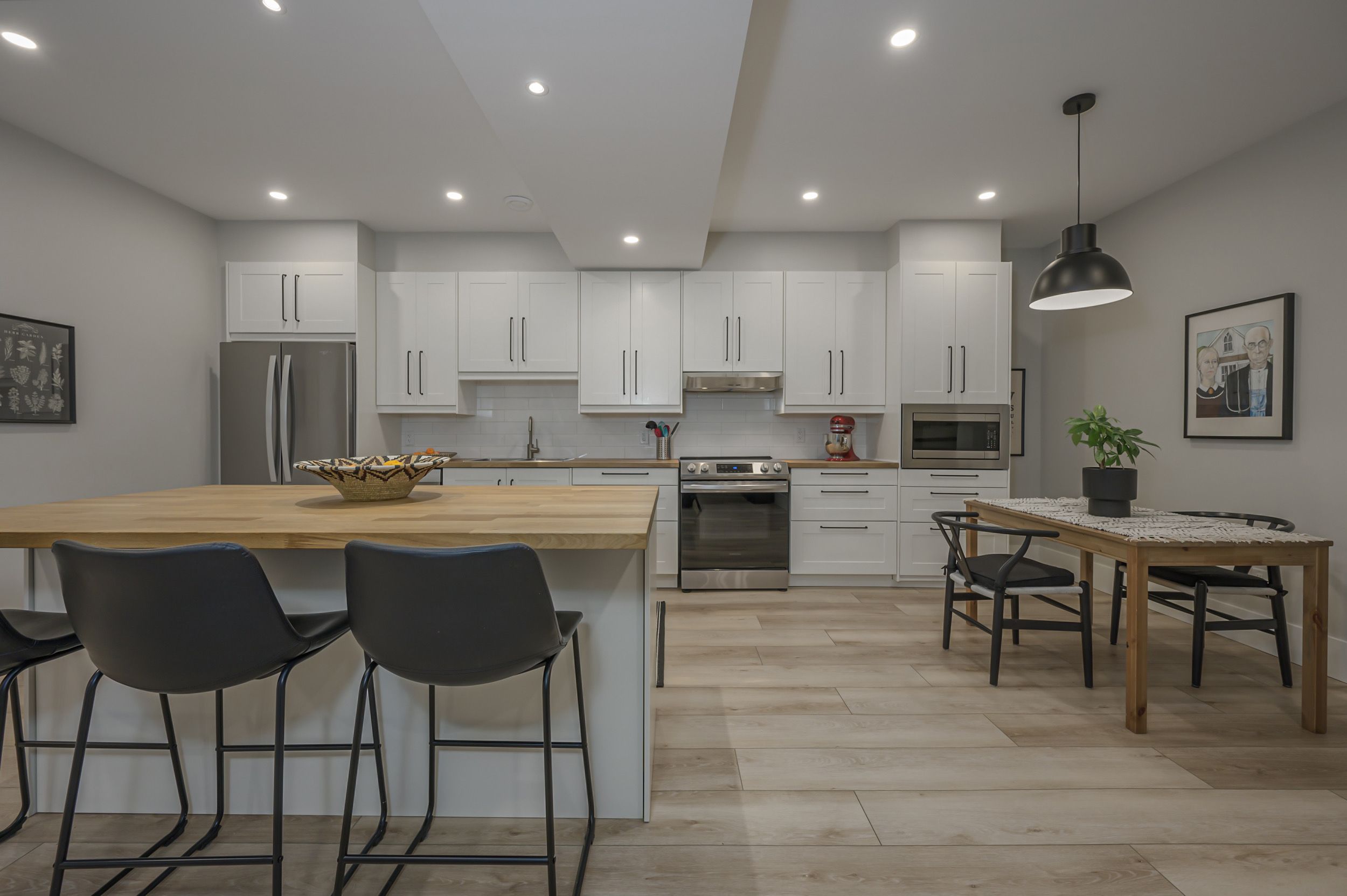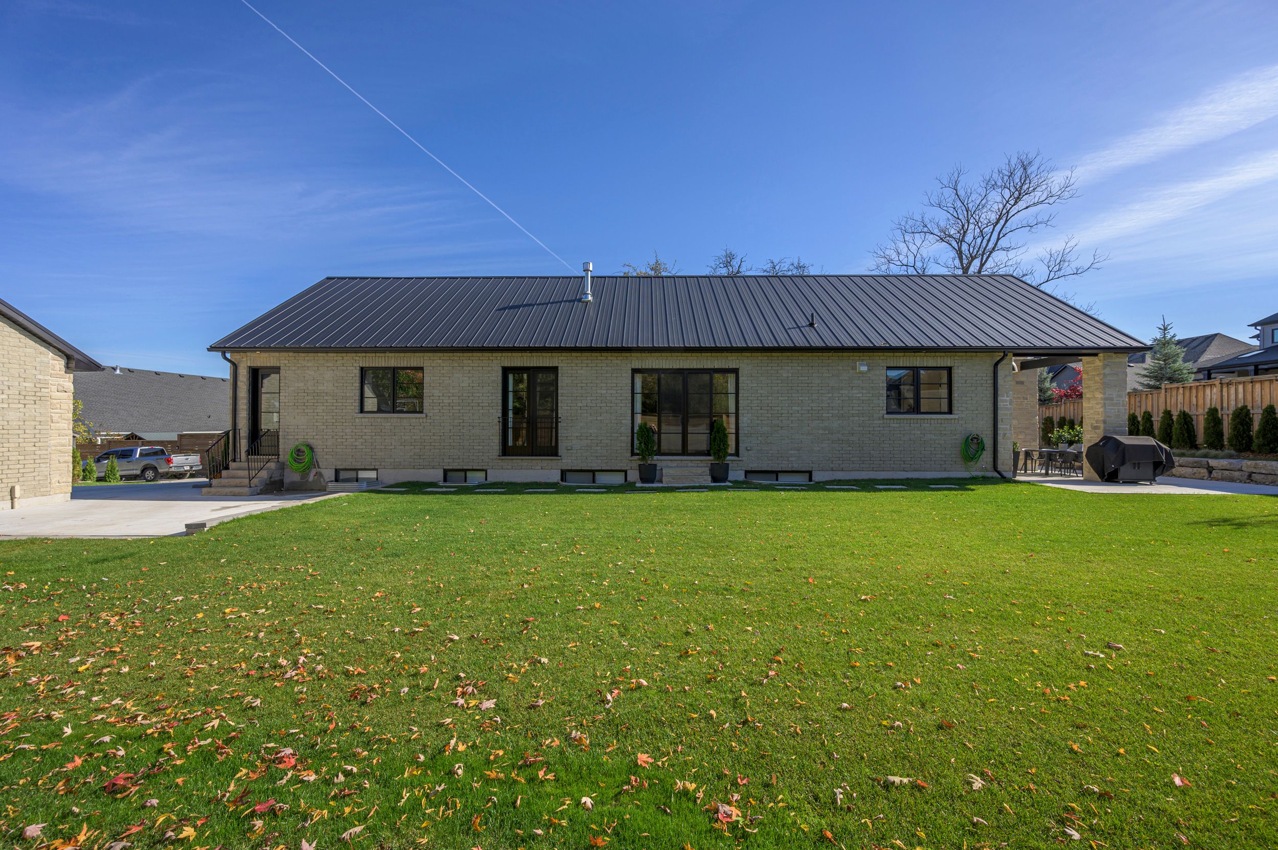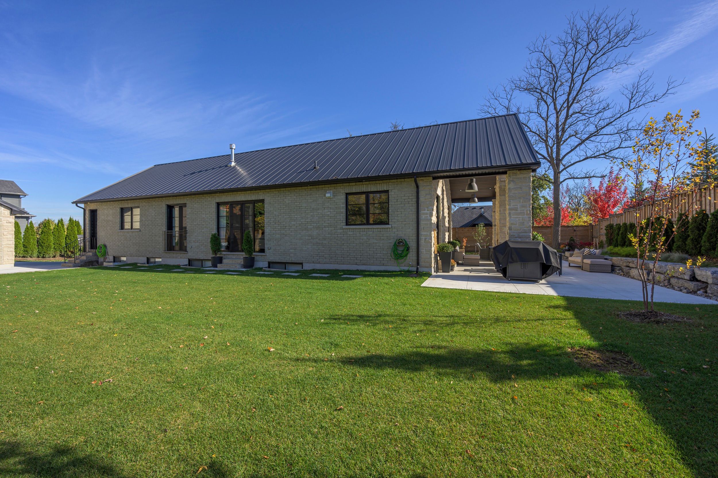 Understated executive bungalow, set intentionally back from the road, behind the mystique of automated privacy gates, creating the english stone-cottage inspired residence found wrapped in trees, tranquility, and quiet prestige. A long, softly illuminated, concrete drive draws you away from traffic to a quiet fully fenced, pool-sized lot, with abundant guest parking and a separate 3-car garage. The timeless stone exterior, romantic juliette balconies, and partially covered verandah set the stage for refined outdoor living, anchored by a two-sided fireplace that invites lingering evenings and effortless entertaining. Inside, soaring 10-ft ceilings on the main level and 9-foot ceilings in the lower level create a sense of volume and light for this modern-european aesthetic. The main floor unfolds in a thoughtful 2-bedroom plus den layout that balances intimacy and openness, centred around a showpiece kitchen with ceiling-height flat-panel cabinetry, quartz surfaces, and a wet bar/servery with garden door access to the terrace. Scandinavian-inspired baths and a serene, boutique-style primary suite complete the upper level with quiet sophistication, while the den adapts easily as a third bedroom. The lower level is equally impressive and remarkably versatile, offering 3 additional bedrooms, 2 bathrooms, a full second kitchen and laundry, and expansive living areas filled with natural light. Whether envisioned as a seamless extension of the main home, a private guest or teen retreat, or an elevated work-from-home, the possibilities are exceptional. Notably, there are no interior load-bearing walls on this level, allowing easy removal of fireplace and island to create an exceptional flex/games/media space. A metal roof, 3-bay garage w/ 220-amp service & the rare setback position complete this private, design-driven residence delivering beauty, presence, and flexibility in equal measure-quietly tucked away, yet moments from hospitals, wortley village, and highland golf.