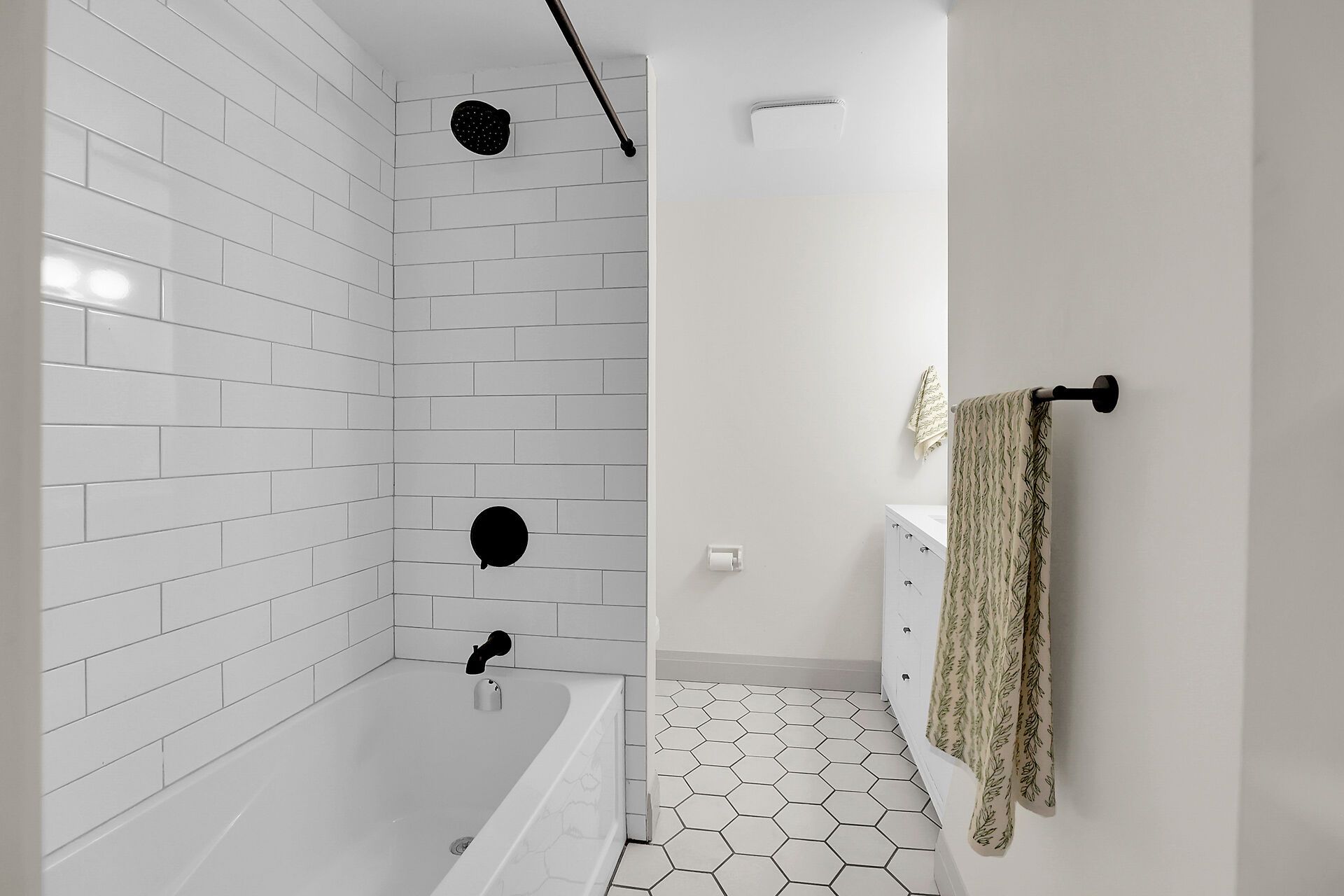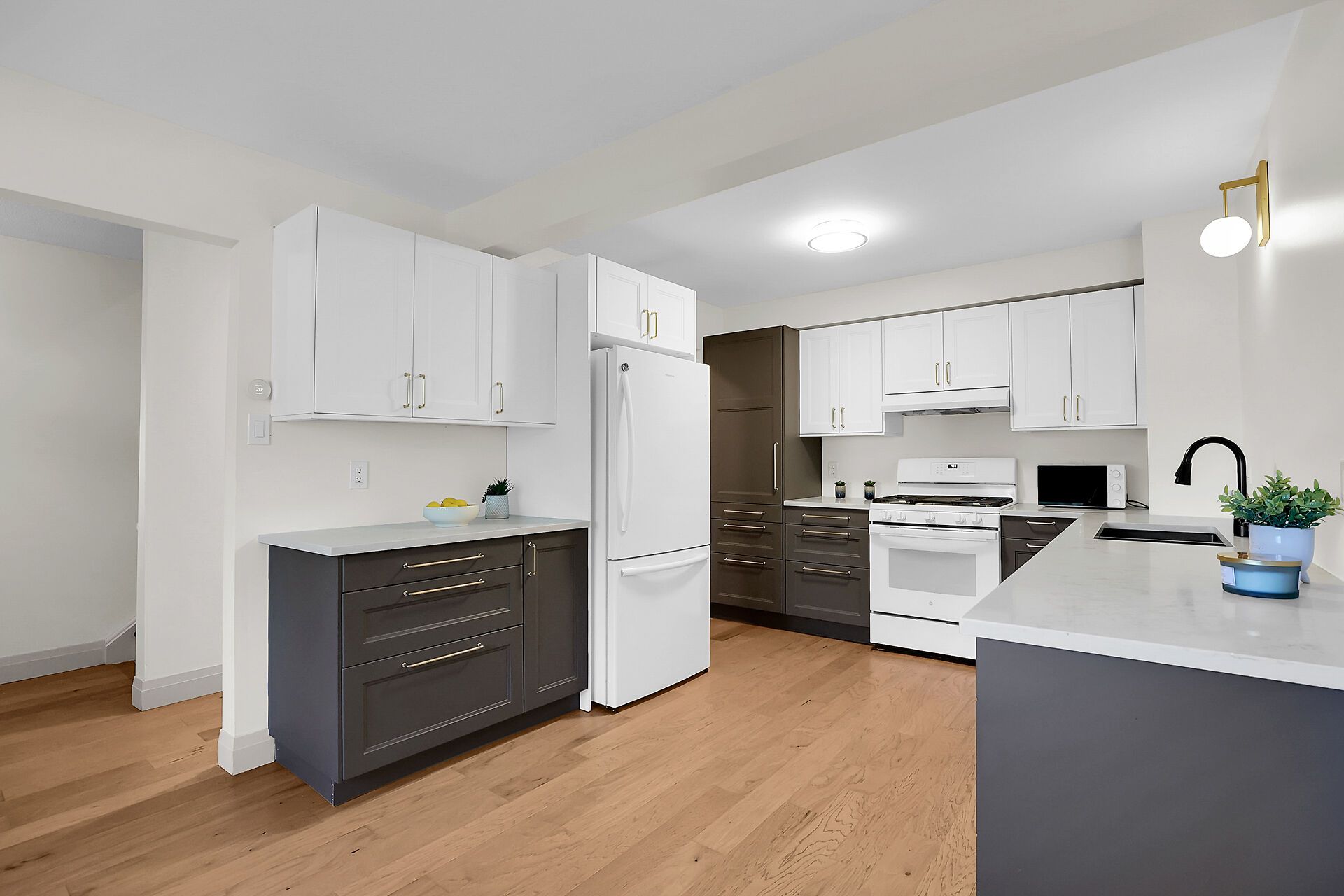 • Modern kitchen with quartz countertops and plenty of storage space.