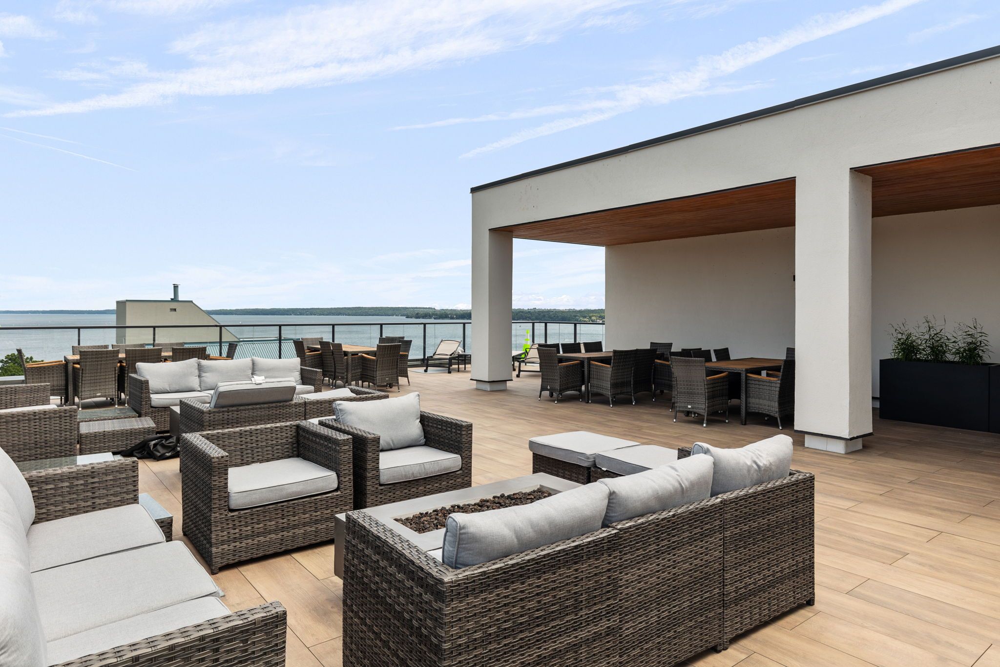 • Access to a gym, hot tub, sauna, and lakeside trails.