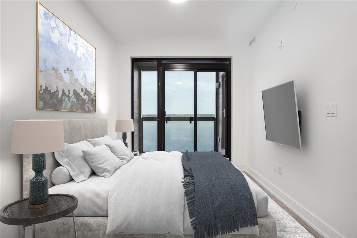 Welcome to the lakhouse in barrie. Enjoy breathtaking unobstructed water views overlooking kempenfelt bay in this spacious 883 sq ft, 1 bedroom plus full-size den that would work as a functional 2nd bedroom including a closet, could make a great space for a large office/guest space, 2 bathrooms including a private ensuite combined with laundry. This suite features top grade vinyl flooring, quartz counters, centre island, ample cabinets, pot lights, high end stainless appliances, 9 ft ceilings, stylish backsplash, a glass-tiled master ensuite shower. Primary bedroom has a private spacious south facing balcony with lumon glass enclosure system which allows you to enjoy the outdoor space 3 seasons of the year. Enjoy barrie's waterfront right at your front door, take leisurely strolls along the boardwalk, experience wonderful local dining, and engage in the summer festivals. Fantastic exclusive amenities, include a private fitness room, stunning party room, hot tub, sauna, steam room, and scenic lakeside views from the roof top patio providing access to a community barbecue and a private dock on the bay. Underground parking, concierge, secure building, elevators, pet friendly, social environment. The lakhouse is a waterfront haven directly on the shores of kempenfelt bay, come and enjoy your true condominium lakeside living!