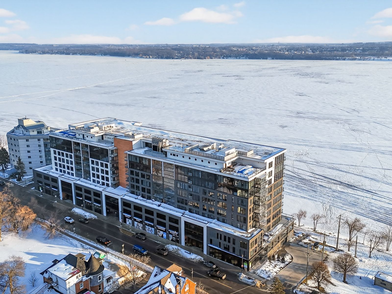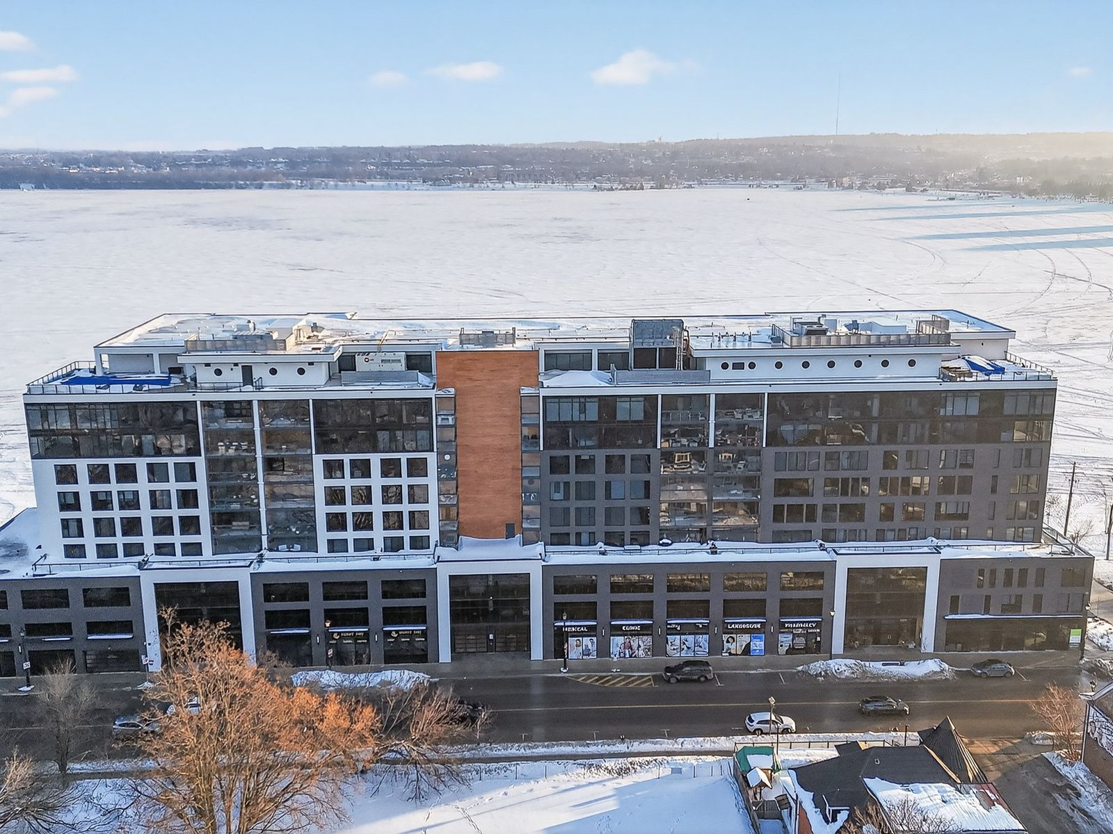 Breathtaking views from this indulgent condo - large sq ft, 3 bdrm condo with a lake view and peaceful exposure! Immerse yourself in sweeping views of kempenfelt bay and the ease of lakeside living. Take leisurely strolls along the boardwalk, indulge in local dining, and engage in summer festivals. Elevate your lifestyle with exclusive amenities, including a private gym, hot tub, sauna, steam room, and scenic lakeside trails. This 1,600 sq. Ft open-concept residence with three bedrooms, two bathrooms! Open concept living and dining rooms, combined with a fancy kitchen! Unique concept- spacious enclosed balcony (open in the summer, close in winter). Luxuriate in quartz countertops, high-end stainless steel appliances, a stylish backsplash, a glass-tiled master ensuite shower, top-grade laminate flooring, and ample pot lights. At lakhouse, enjoy concierge service, a party room, and inviting communal spaces. Full concrete construction! Make this waterfront haven your home and relish the epitome of lakeside living!