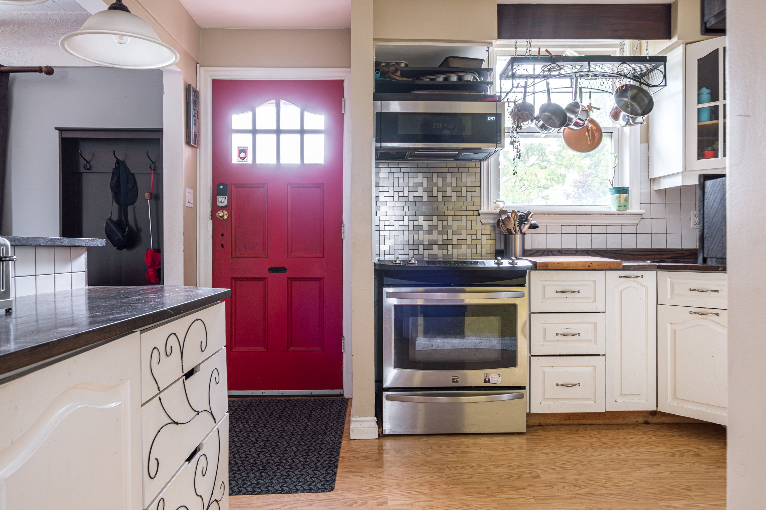 Welcome to this beautifully maintained 3-bed, 2-bath detached home with a fully finished basement, located in a desirable neighbourhood where charm meets comfort. From the moment you arrive, you'll be impressed by the inviting front porch, lovely gardens, and fruit trees - a true gardeners delight. Step inside to discover a freshly painted interior with hardwood floors, high cove ceilings, and an updated kitchen (2021) with modern finishes. The open-concept living and dining areas feature a built-in bar and entertainment unit, perfect for family gatherings or quiet evenings at home. A main floor bedroom and full 4-piece bath add convenience and flexibility for guests or multi-generational living. Upstairs, you'll find two bright bedrooms with large windows, deep closets, and vaulted ceilings. The lower level offers exceptional space with a cozy recreation room, home office/guest room, laundry room with bosch washer and dryer, and an electric fireplace for added warmth. This home has been thoughtfully updated and energy-efficiently enhanced with a metal roof (2018 & 50-year warranty), high-efficiency windows (2010), owned solar panels, a new hot tub pump (2023), owned water heater (2022), and owned heat pump with an extra built-in heater for colder days. Recent updates include new front steps and plumbing (2025). Spray foam insulation ensures year-round comfort in this home very sweet home! Enjoy a private, fully fenced backyard perfect for relaxing or entertaining, plus a detached single-car garage with shelving and a 240-amp plug for an electric vehicle. A truly move-in-ready home that blends warmth, efficiency, and character, all within a peaceful setting you'll love coming home to each and every day.