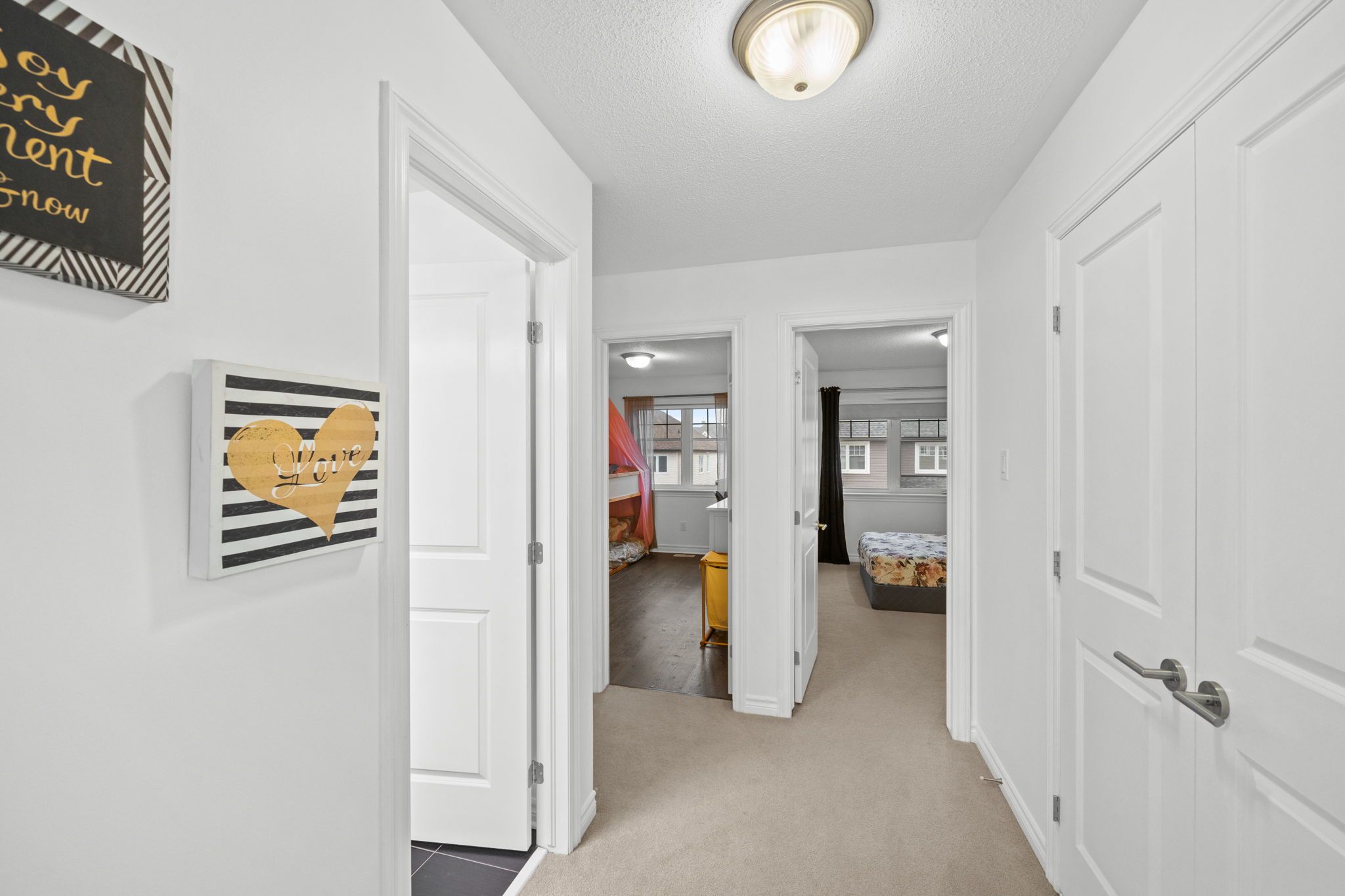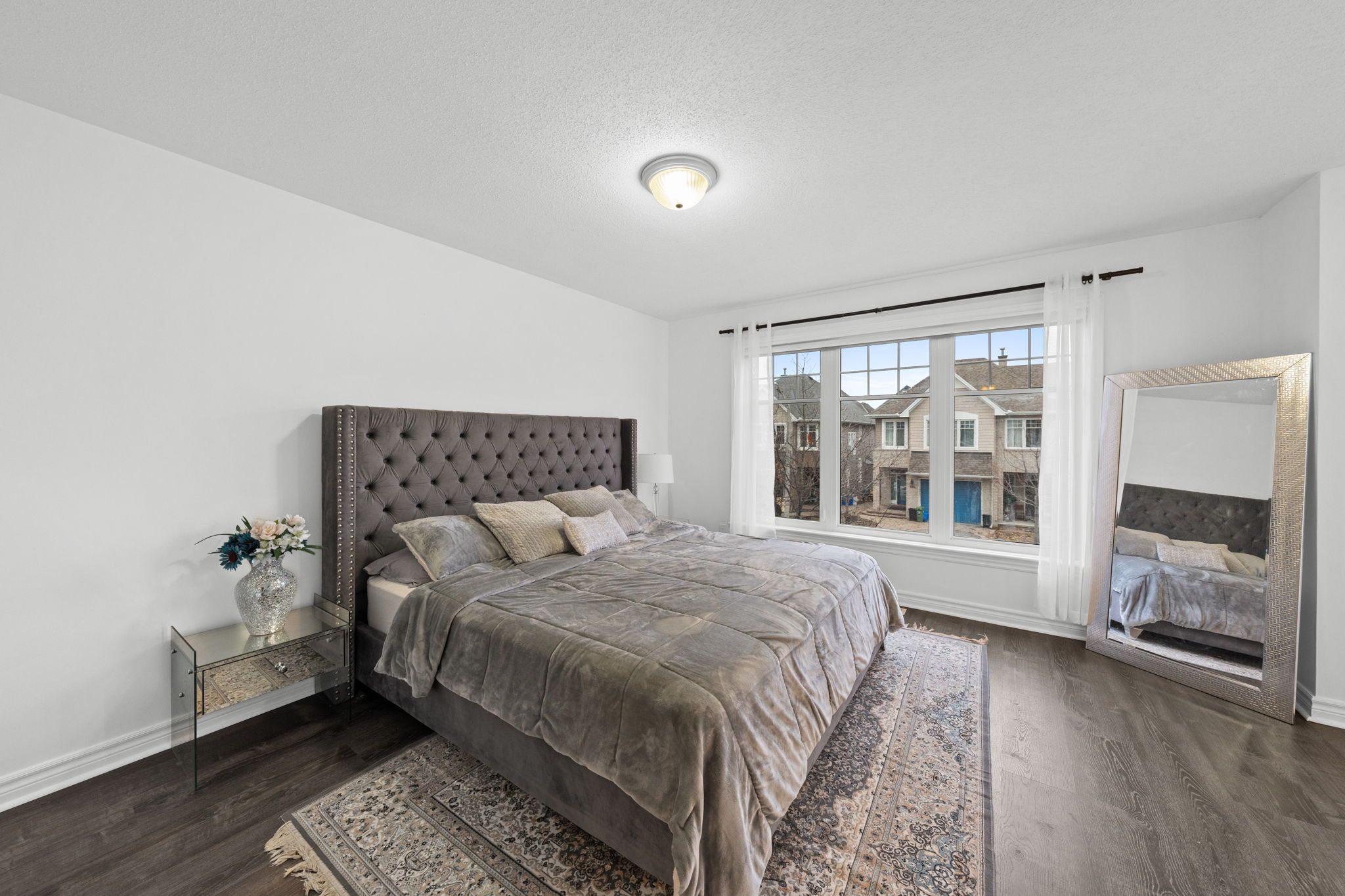 Welcome to this rarely offered tamarack huntington end-unit townhome in the desirable findlay creek community. Offering over 2,100 sq ft of beautifully finished living space including approximately 411 sq ft in the fully finished basement, this modern and meticulously maintained home features over $70,000 in upgrades. The bright open-concept main floor showcases 9-foot ceilings, elegant hardwood floors, a cozy gas fireplace, and a stunning modern kitchen with upgraded stone countertops, centre island, gas range, pantry, and stylish finishes - perfect for both everyday living and entertaining. Upstairs you will find a spacious primary retreat with walk-in closet and a luxurious 5-piece ensuite with dual sinks and glass shower, along with two additional well-sized bedrooms, a versatile loft space, full bathroom, and convenient second-floor laundry. The finished basement provides a large and flexible recreation area ideal for a family room, home office, or gym, with additional storage space. Additional highlights include fresh full-home paint, modern finishes throughout, an attached garage with inside entry, central air conditioning, and an oversized driveway offering generous parking space. Ideally located close to parks, schools, shopping, nature trails, and transit, this move-in-ready home offers the perfect combination of style, comfort, and convenience in one of ottawa's most sought-after communities.