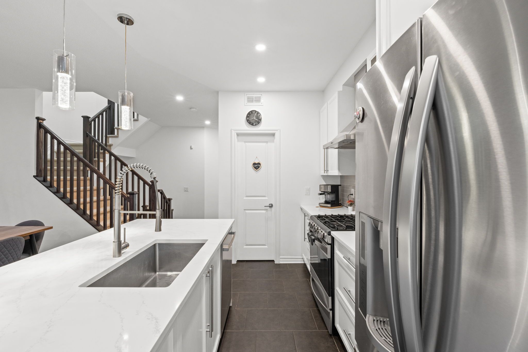 • Modern kitchen with upgraded countertops, gas range, and stylish finishes.