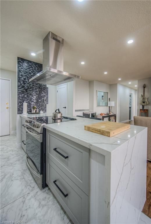Welcome to unit 410 at 185 kehl street - a rare and beautifully renovated gem in kitchener that's truly move-in ready. Since 2022, this unit has seen over $30,000 in stylish upgrades, making it one of the most updated condos you'll find at this price point. Step inside to find updating flooring, fresh paint throughout and a warm, inviting living space complete with a custom fireplace surround. The completely renovated eat-in kitchen is a true showstopper, featuring quartz countertops, a custom island, beautiful cabinetry, and a newer stainless steel appliances - perfect for morning coffees, causal meals, or entertaining guests. The spacious layout includes a two-piece ensuite, a renovated main bathroom, and even in-suite storage to keep everything organized. Step out onto your private balcony and enjoy the sunset after a long day - it's a perfect spot to unwind. Set in a building with a distinctive exterior and updated windows, this unit stands out not just for its interior updates, but also for its low condo fees, which are a rare find in kitchener-waterloo. With quick access to highway 7/8 and close proximity to everyday amenities, this condo is ideal for first-time buyers, downsizers, or savvy investors. Don't miss your chance to own one of the most beautifully updated units in the building!