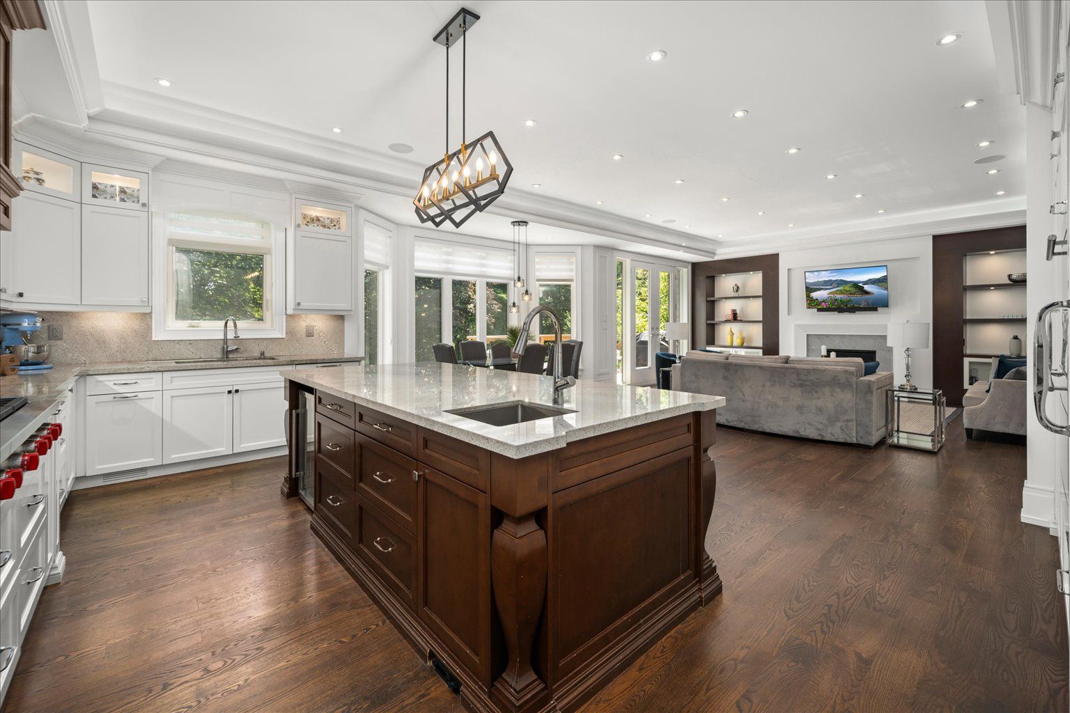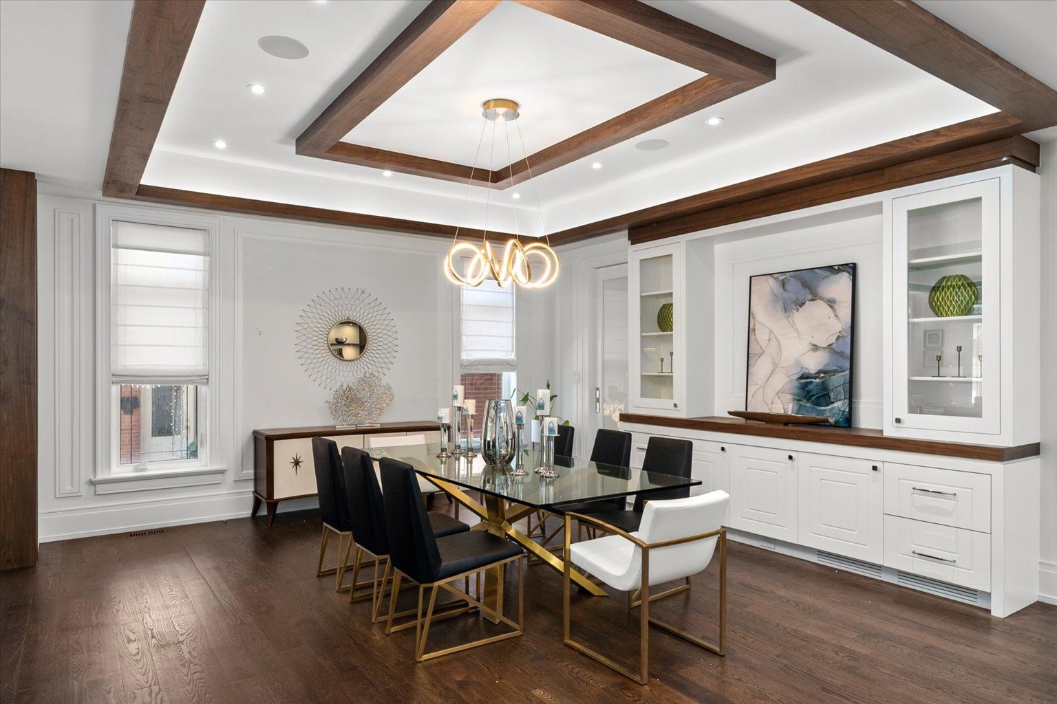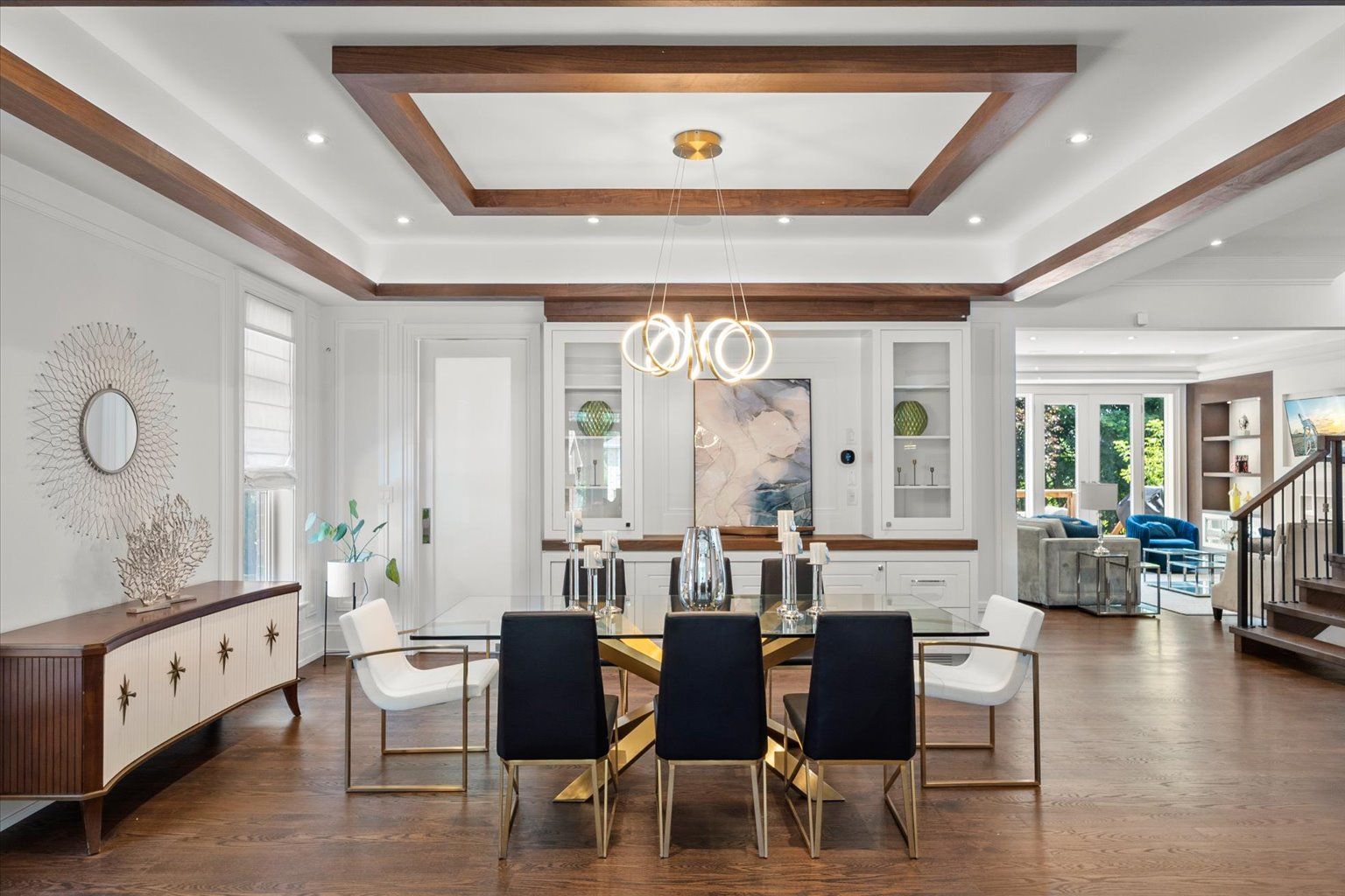 Masterfully built in 2021 with extremely detailed design on a deep pool sized lot, backing onto the quiet part of caswell park! Impeccable finishings and unparalleled features: large size principal rooms, walnut accent in walls and ceilings, marble slabs in foyer entrance, wide oak hardwood and porcelain flooring, coffered/dropped ceiling & ropelights with soaring cling height > library/foyer:14', basement rec rm:12', main & 2nd flr:10' !! Contemporary crown moulding, full panelled wall in library, foyer, hallways, living & dining room, and basement recreation room. High-end millwork:built-in wall units, cabinetry, closets & custom headboard in 4bedrooms. Gas fireplaces & natural stone mantels, washlet toilets(toto) for all washrooms. Gourmet kitchen includes state-of-the art wolf&sub-zero appliances, cabinets&granite c/top. Large master bedroom with fireplace, boudoir w/i closet & 7-pc heated floor ensuite w/steam sauna! Open rising staircase with night lights & skylight above. Spacious family room w/o to deck & patio & fully fenced lovely backyard with 3gates! Pre-cast facade with bricks in back and sides. Professional finished walk-out heated floor basement includes huge recreation room with wetbar, gas fireplace, 2nd powder rm, bedroom, 4pc ensuite, and a large roughed in second laundry includes all cabinetry & counter top!