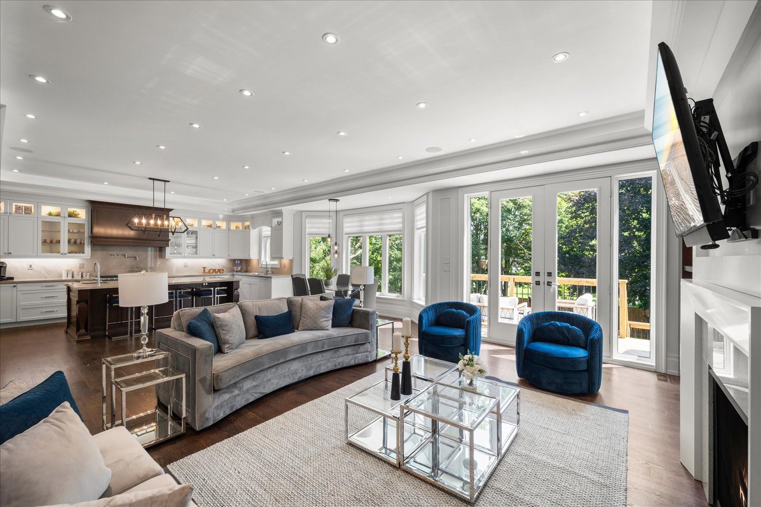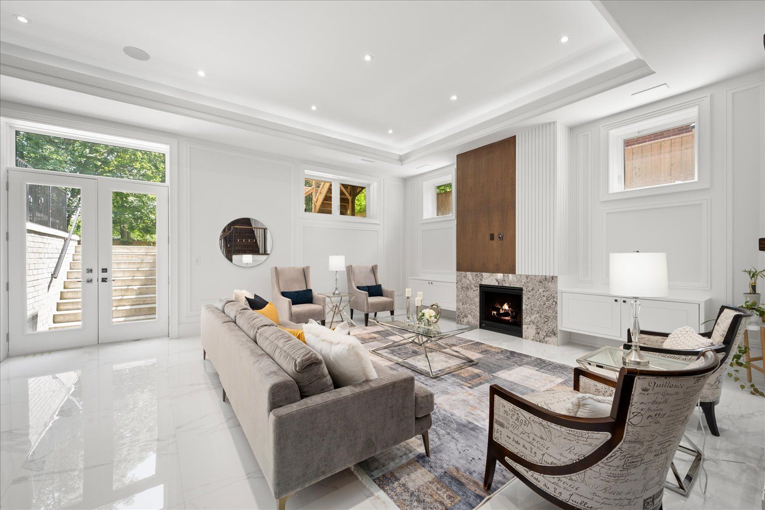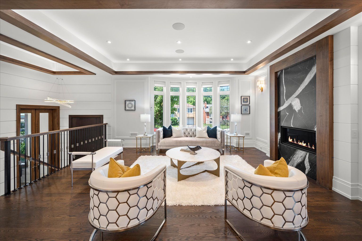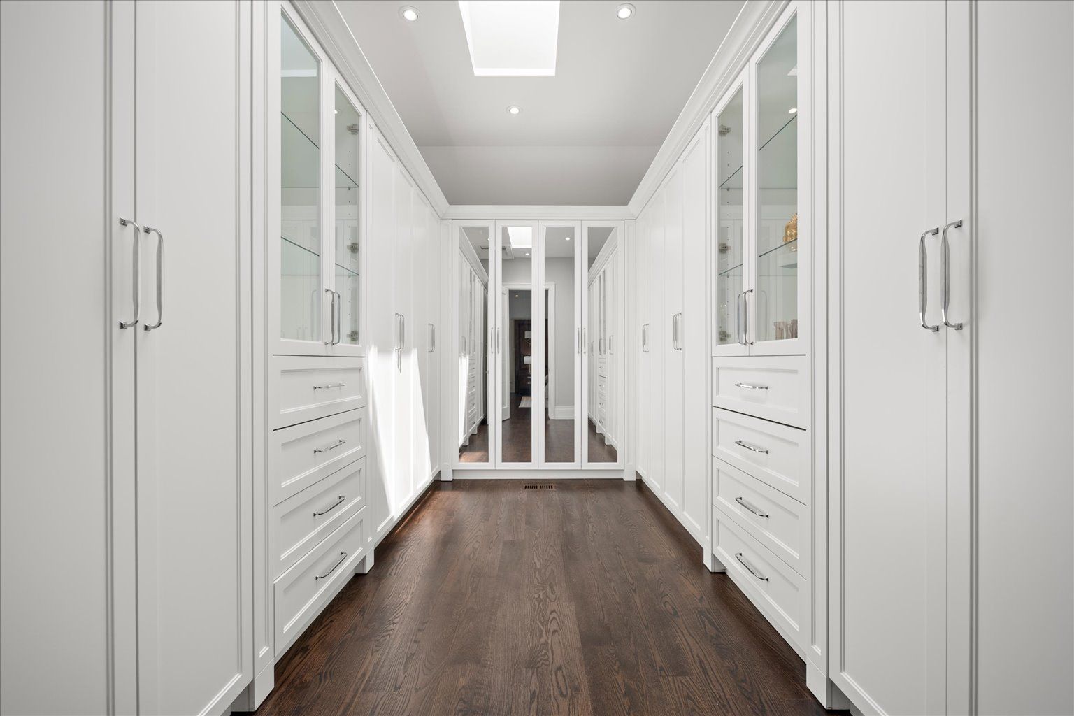 Masterfully built in 2021 with extremely detailed design on a deep pool sized lot, backing onto the quiet part of caswell park! Impeccable finishings and unparalleled features: large size principal rooms, walnut accent in walls and ceilings, marble slabs in foyer entrance, wide oak hardwood and porcelain flooring, coffered/dropped ceiling & ropelights with soaring cling height > library/foyer:14', basement rec rm:12', main & 2nd flr:10' !! Contemporary crown moulding, full panelled wall in library, foyer, hallways, living & dining room, and basement recreation room. High-end millwork:built-in wall units, cabinetry, closets & custom headboard in 4bedrooms. Gas fireplaces & natural stone mantels, washlet toilets(toto) for all washrooms. Gourmet kitchen includes state-of-the art wolf&sub-zero appliances, cabinets&granite c/top. Large master bedroom with fireplace, boudoir w/i closet & 7-pc heated floor ensuite w/steam sauna! Open rising staircase with night lights & skylight above. Spacious family room w/o to deck & patio & fully fenced lovely backyard with 3gates! Pre-cast facade with bricks in back and sides. Professional finished walk-out heated floor basement includes huge recreation room with wetbar, gas fireplace, 2nd powder rm, bedroom, 4pc ensuite, and a large roughed in second laundry includes all cabinetry & counter top!