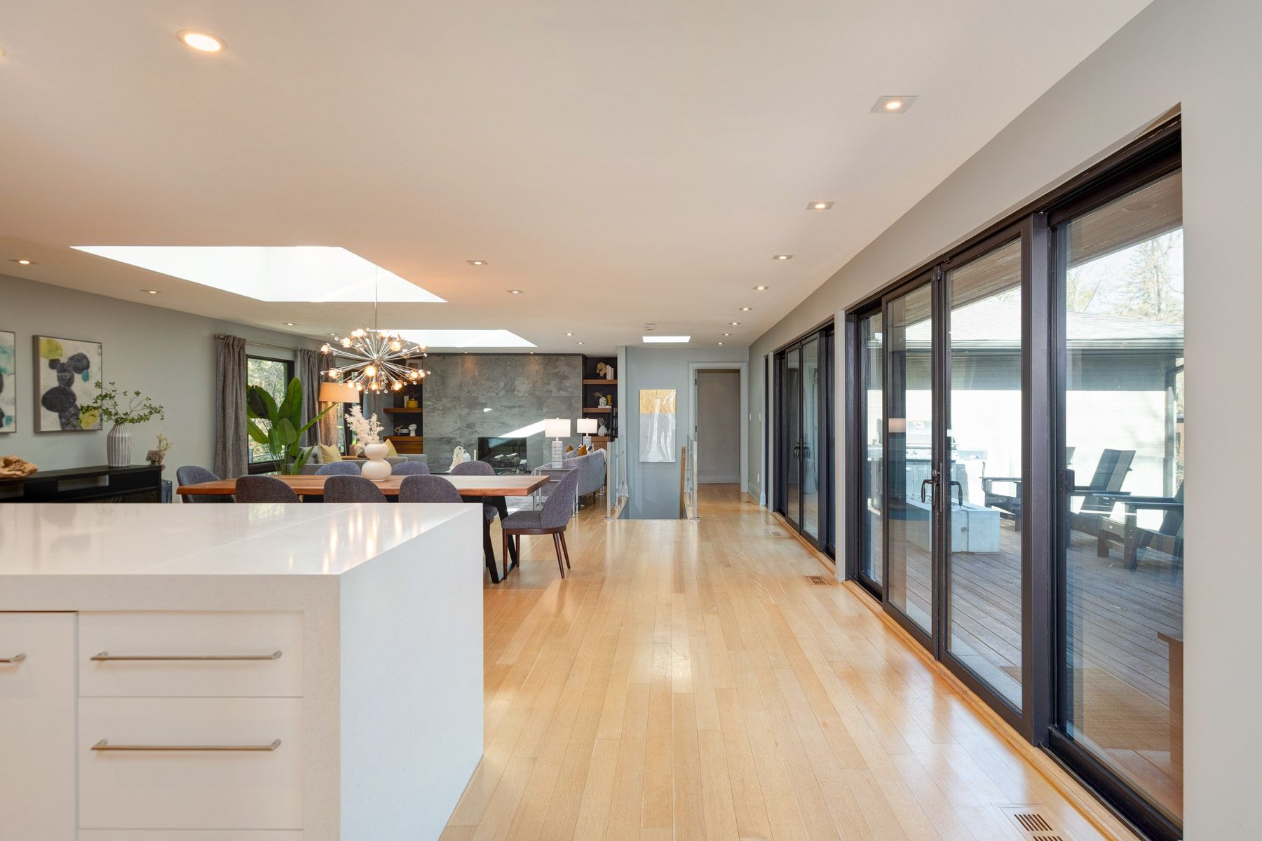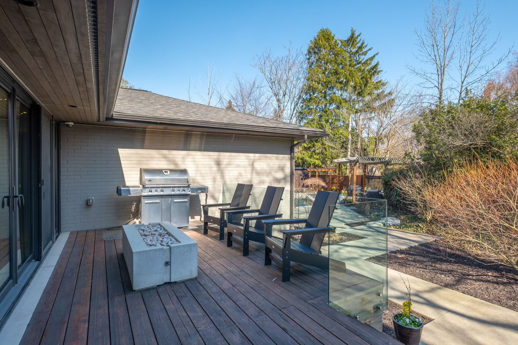 In this prestigious oakville community, homes of this calibre rarely come to market. Welcome to 185 morrison rd - a meticulously maintained luxury residence on a picturesque lot, where every detail has been considered and nothing has been overlooked. At the heart of this modern home is a stunning walnut kitchen outfitted with top-of-the-line appliances including wolf, sub-zero, and miele. A dedicated pantry, appliance garage, integrated appliances, and abundant storage make this a kitchen that functions as beautifully as it looks. It flows directly into a large combined dining and living area anchored by a gas fireplace, a layout designed for effortless entertaining. Double sliding glass doors open fully onto the deck, creating true indoor-outdoor living through the spring and summer months. The main floor primary suite is a rare and desirable offering, ideal for those who appreciate single-level living or simply value separation from the rest of the home. Overlooking the pool and landscaped grounds, it features a generous walk-in closet and a spa-calibre bathroom with an oversized soaker tub, double vanity, separate shower, and water closet. Upstairs, two additional bedrooms each offer built-in closets and their own ensuite bathrooms thoughtfully appointed for children, guests, or anyone who values privacy and comfort equally. The lower level is expansive & fully realized: a home gym, pool table area with wood-burning fireplace, large recreation room with gas fireplace, full bathroom, and a dedicated office or guest suite. Space for every need. Step outside and the 101x149 foot lot delivers a fully landscaped backyard designed for resort-style living features a sparkling pool, pergola, outdoor dining area with a natural gas bbq hookup, fire table, and a generous deck. It is a space that will be used and loved in every season. Top-ranked school district. Walking distance to lake ontario. A truly exceptional home in one of oakville's most prestigious neighbourhoods.