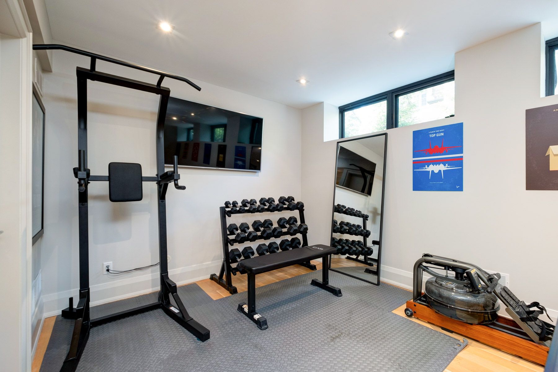 • Lower level includes gym, recreation room, office, and guest suite.