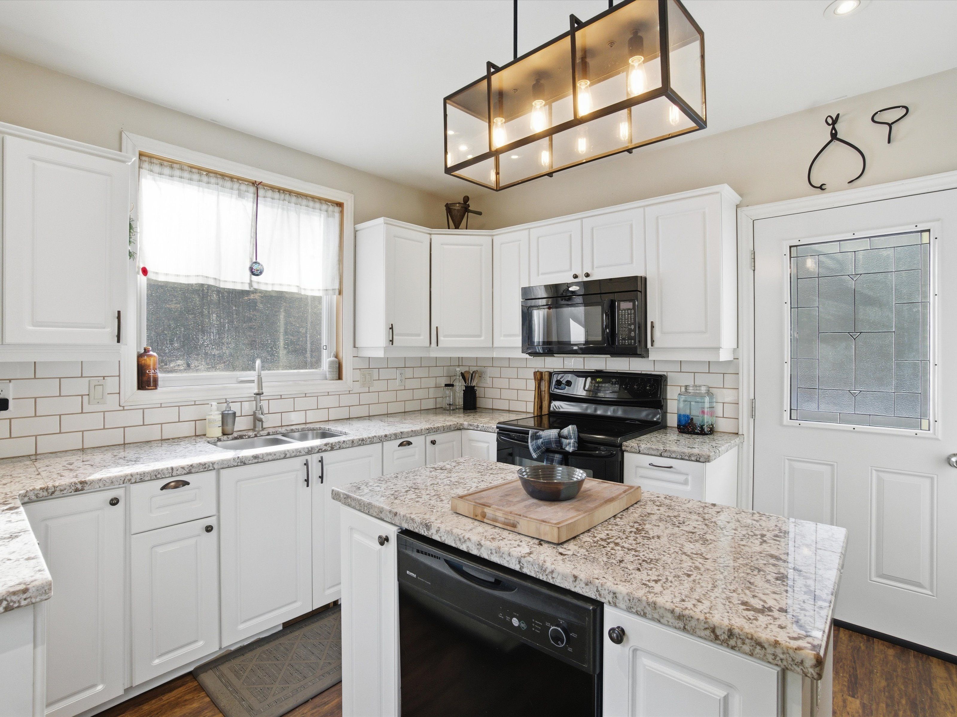 • Spacious kitchen with granite counters and center island for gatherings.