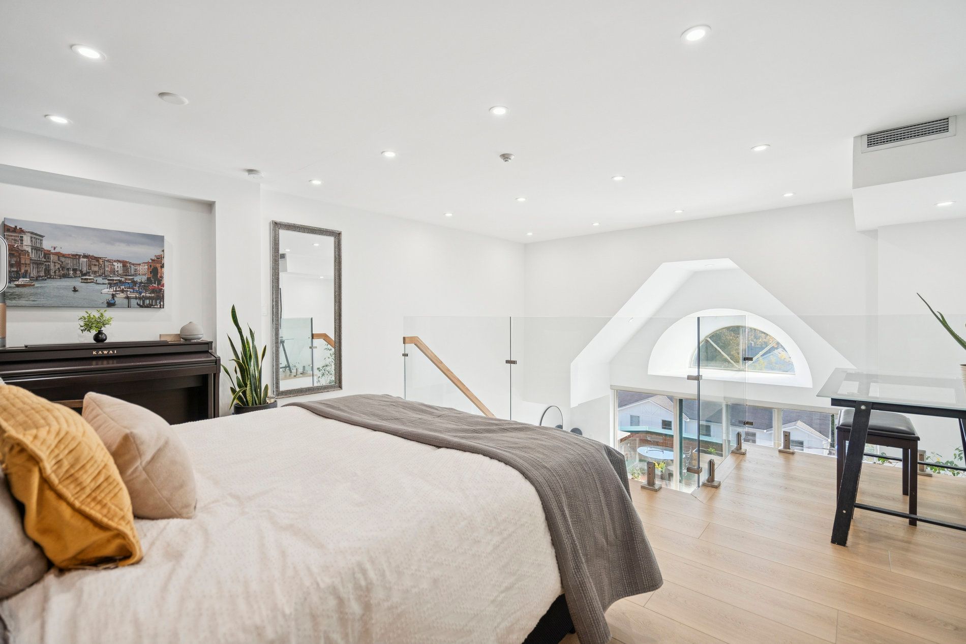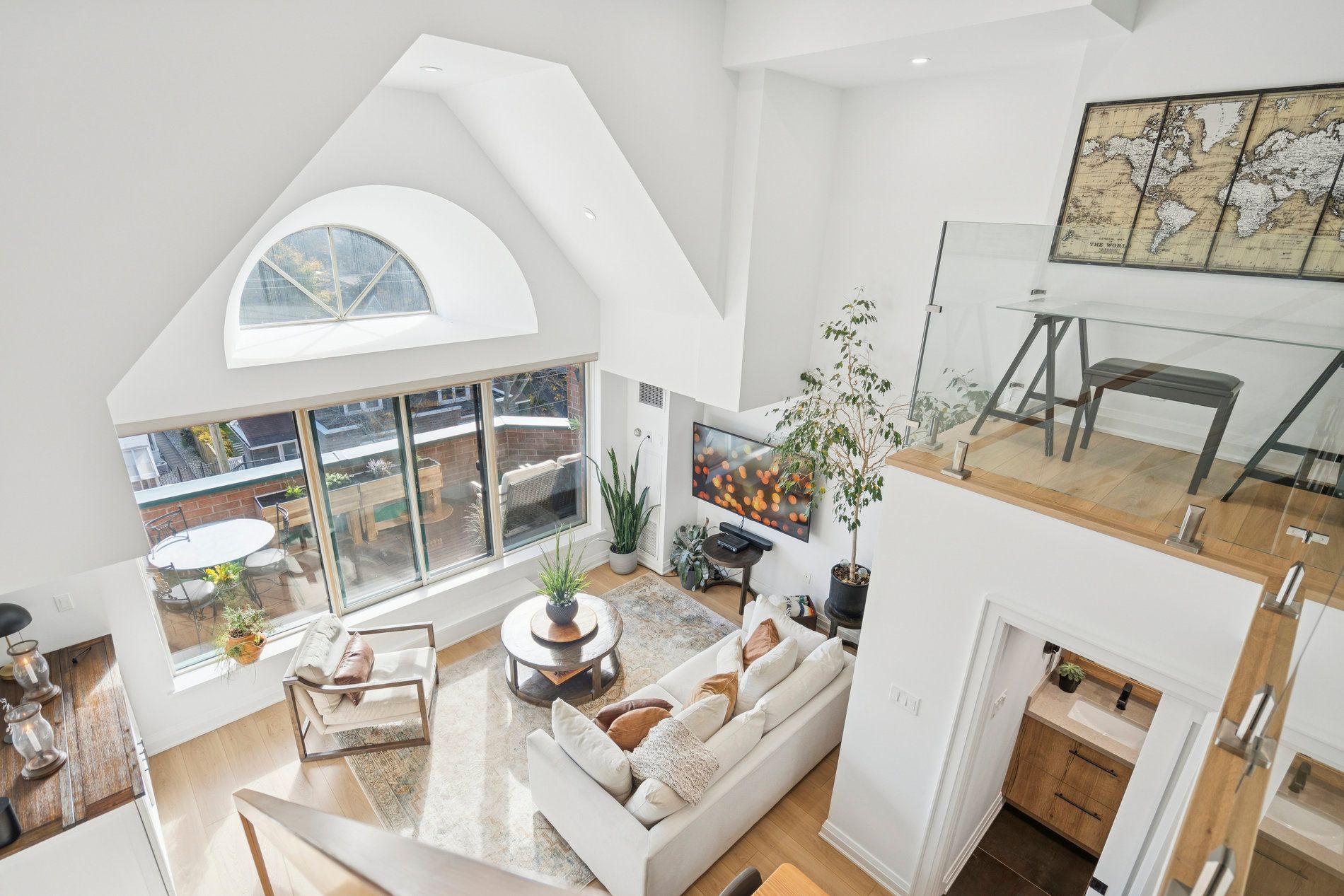 Experience an executive luxury lifestyle in this fully ** furnished ** renovated penthouse withtwo floors at the ashbury, located in the heart of downtown oakville. This extraordinary 1,100sqft 1-bedroom + den suite features soaring 18-foot ceilings and expansive windows with anabundance of natural light. The chef's kitchen is a masterpiece, boasting a historic 1896reclaimed wood island from toronto's original simpson's store (the first department store incanada), outfitted with high-end full-sized appliances, including a miele built-in oven andfisher & paykel range and fridge. Time for a coffee? This unit includes a custom beveragestation complete with an espresso machine and wine fridge, ideal for refined entertaining orquiet indulgence. The graceful glass and wood staircase leads to a bright open-concept bedroomwith lots of closet space and a small den overlooking the grand room, perfect for focused work. Step outside to the private balcony, equipped with a built-in tv and planters for herbgardening for dining and entertainment. Having the town square as its backyard, this unit islocated steps from oakville's finest boutiques, michelin-starred restaurants, the marina,oakville club, library, and performing arts centre. This unit offers an unmatchedurban-lakeside lifestyle, including ** one parking spot with an ev charger ** and a ** storagelocker**. A rare opportunity to lease oakville's most historic district, where design andluxury living unite.