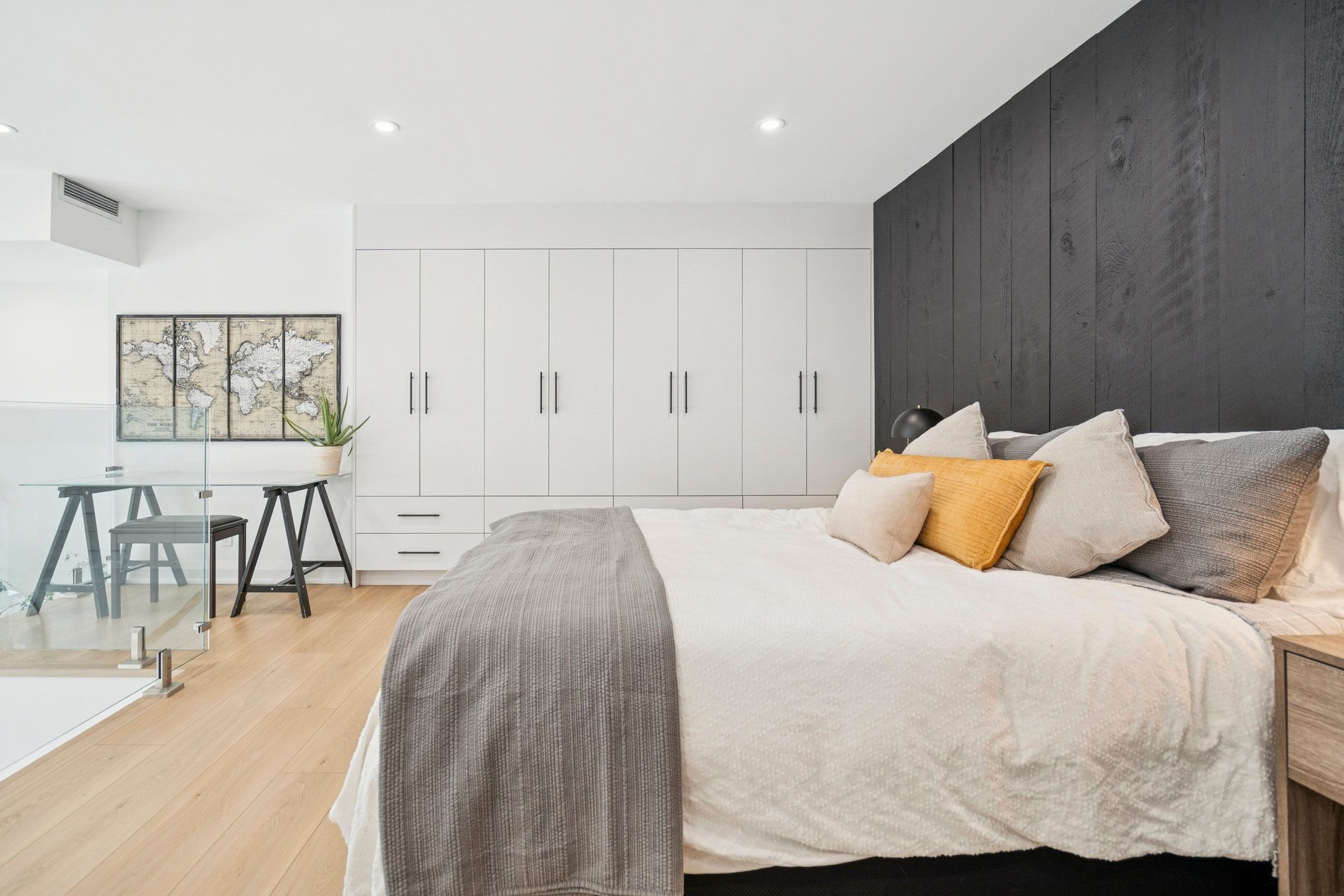 • Soaring 18-foot ceilings and large windows flood the space with light.