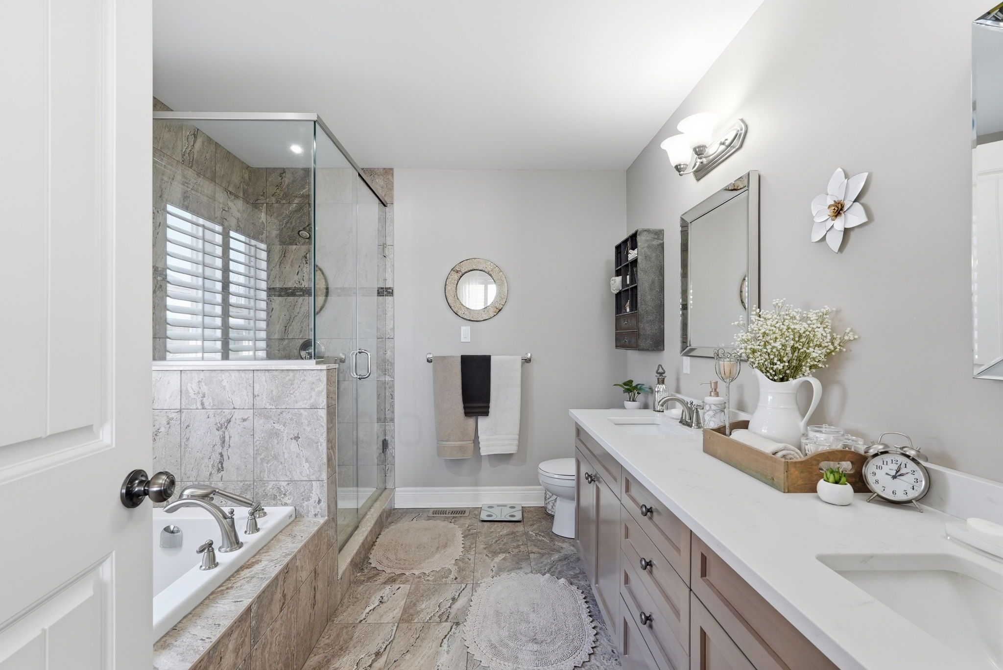 • Main level features two spacious bedrooms and a spa-like ensuite retreat.