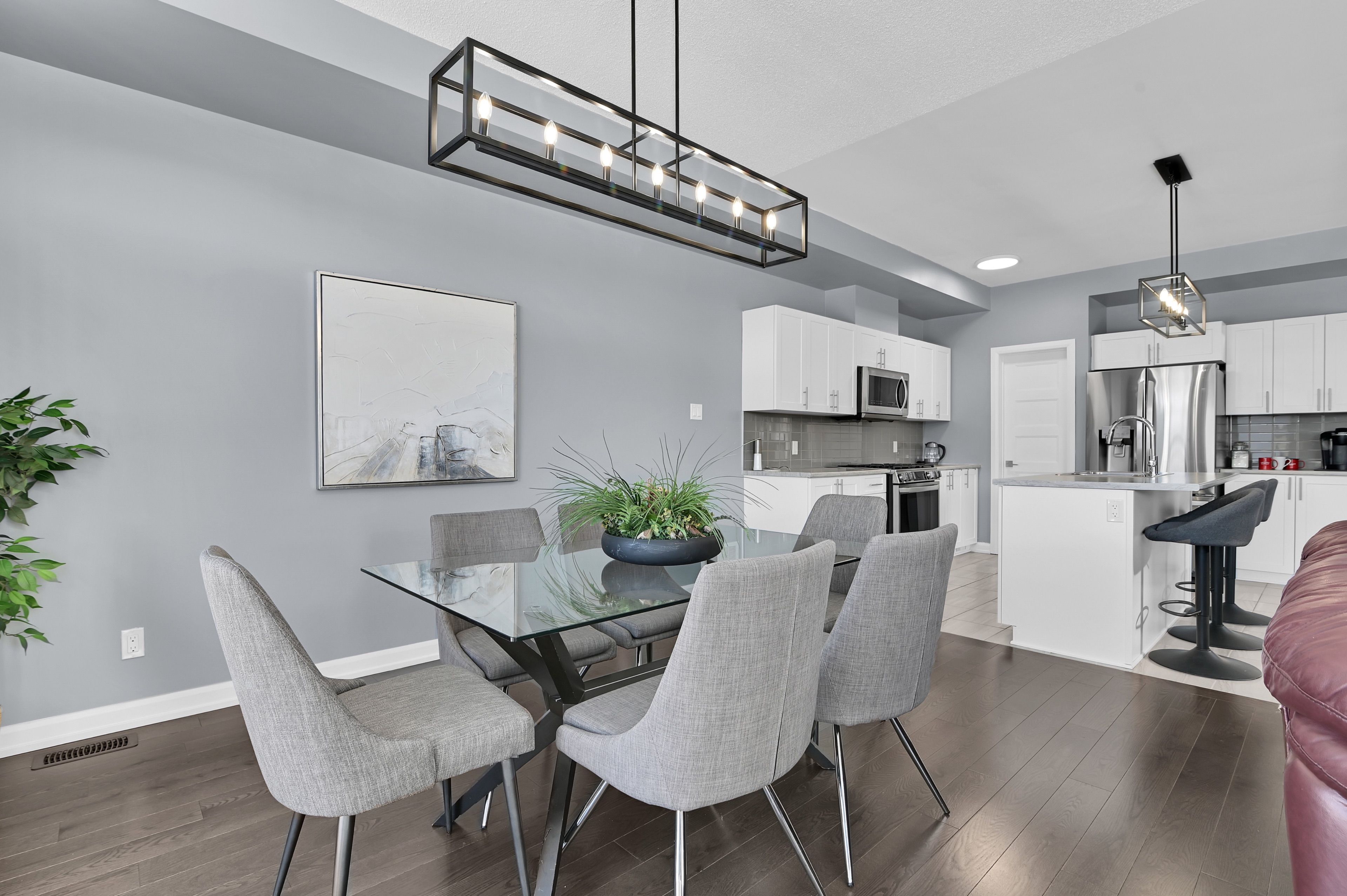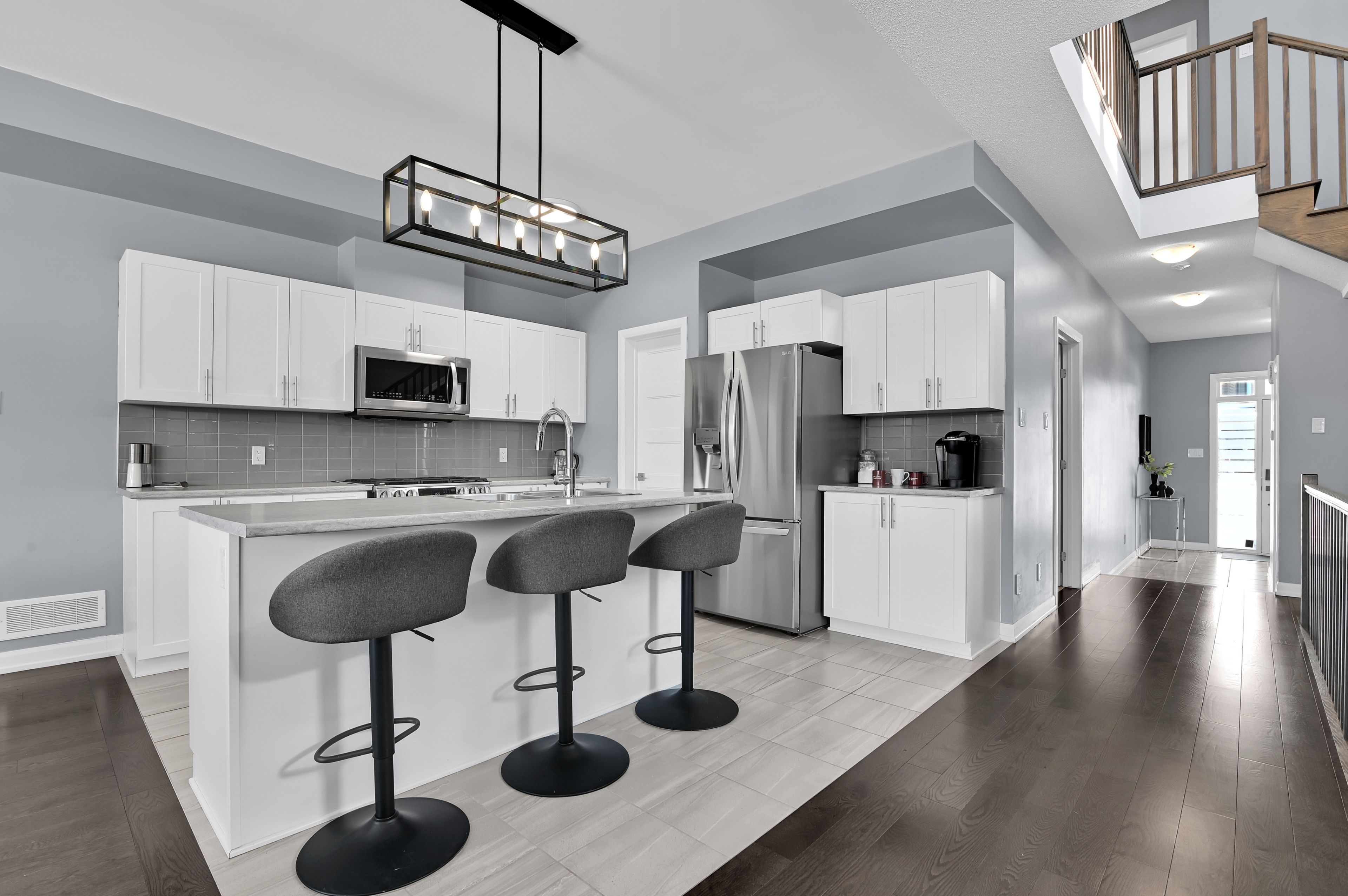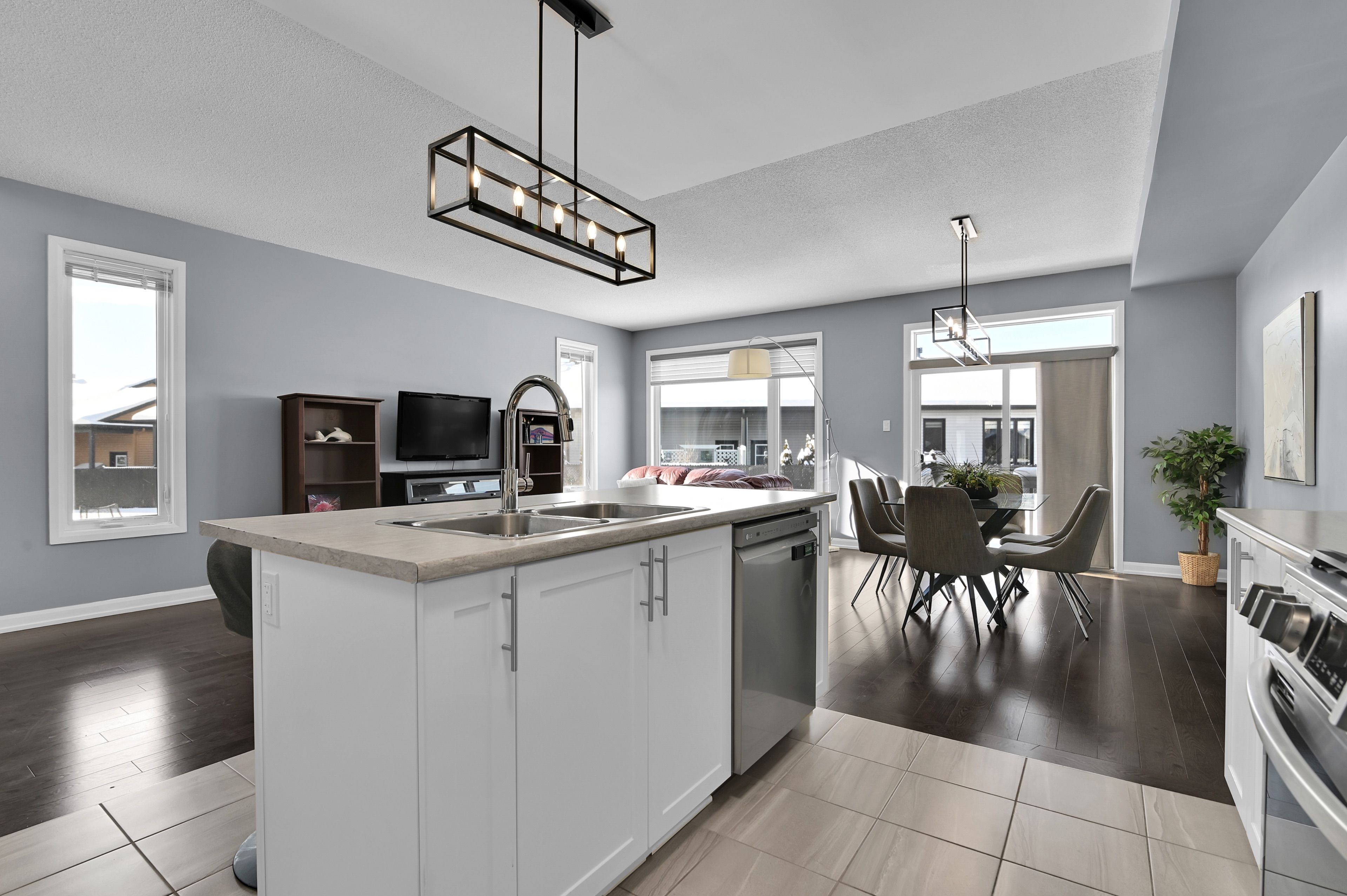 • Bright open-concept layout with a stylish kitchen and stainless steel appliances.