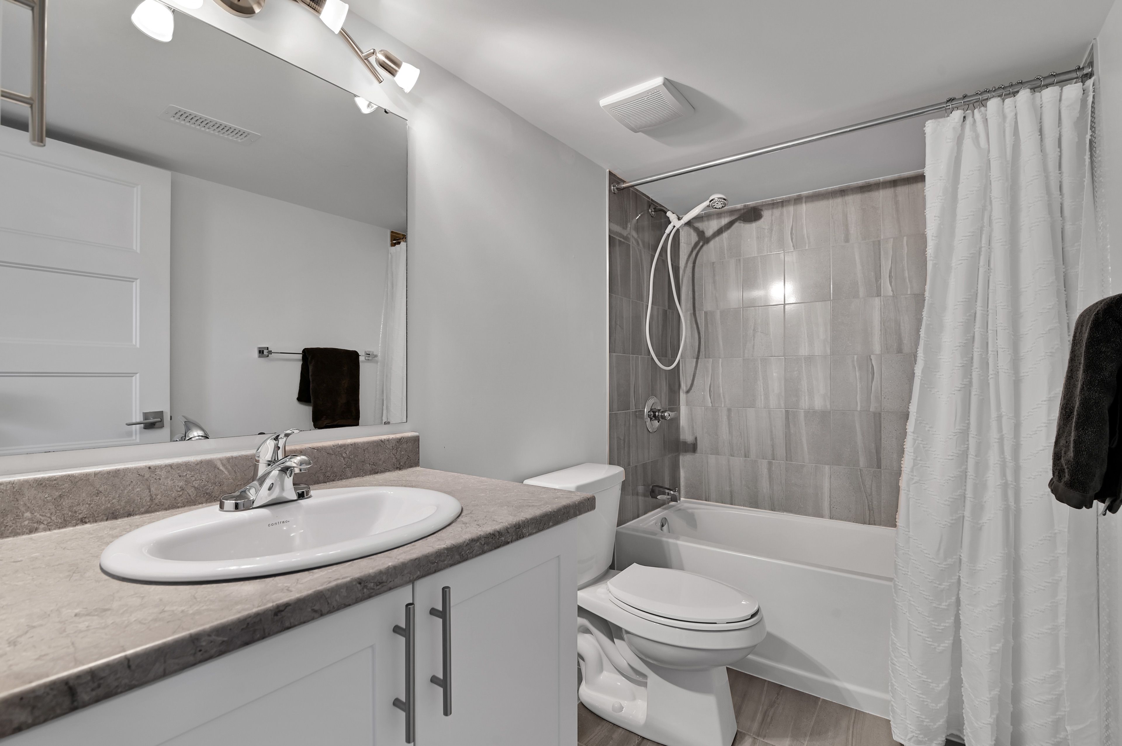 • Finished lower level with a rec room and additional bathroom for flexibility.