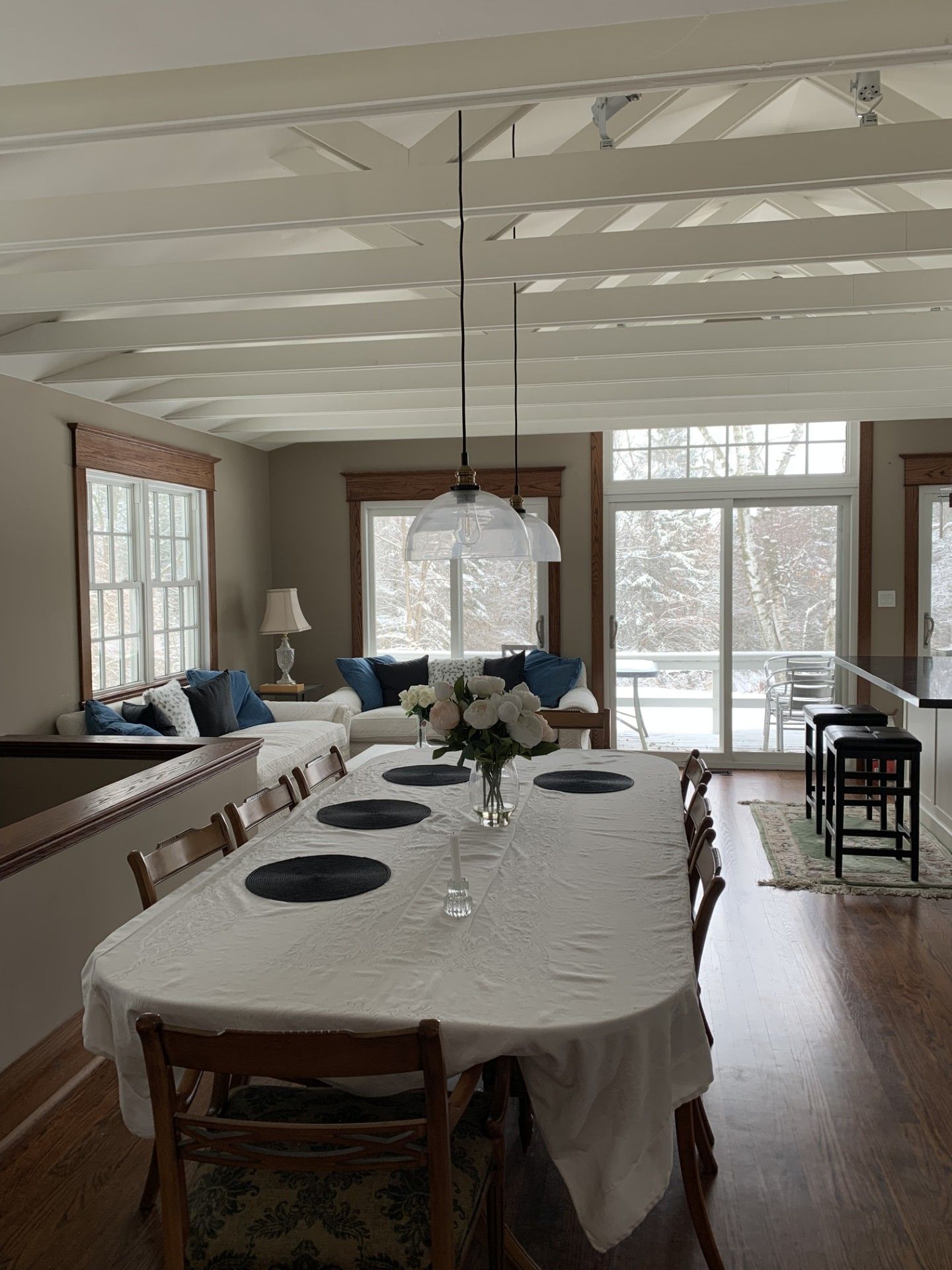 • Open concept gourmet kitchen featuring vaulted ceilings and breakfast bar.