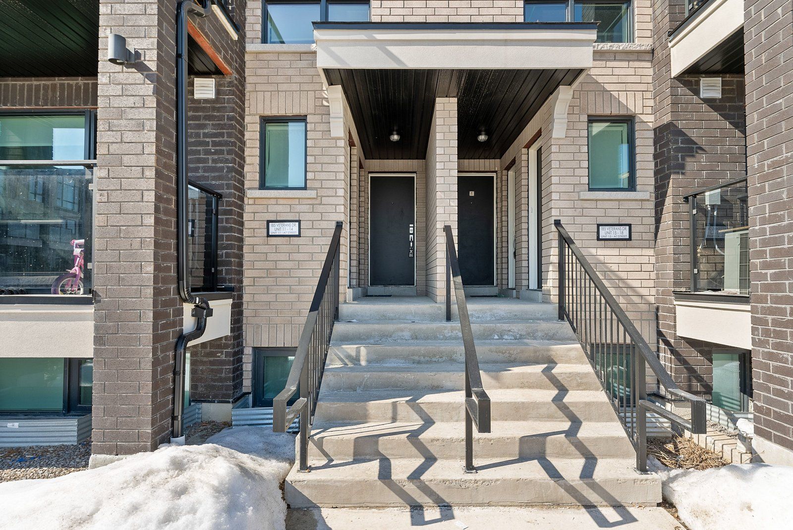 • Modern townhouse with stylish brick exterior and open-concept layout.