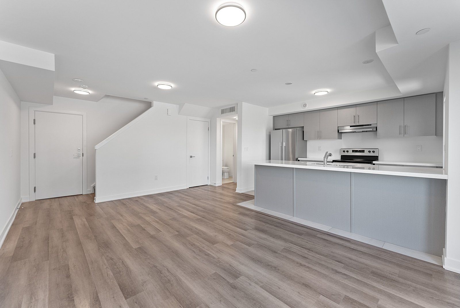 Discover this stunning modern townhouse featuring a stylish brick exterior and a bright, open-concept layout with 2 bedrooms, 2 bathrooms. The contemporary kitchen is equipped with quartz countertops and stainless steel appliances, while the private balcony offers a lovely spot to relax and enjoy the view. Located in a highly sought-after neighborhood, this home is close to banks, daycare, shopping plazas, mount pleasant go station, schools, soccer fields, and parks everything you need just minutes away!