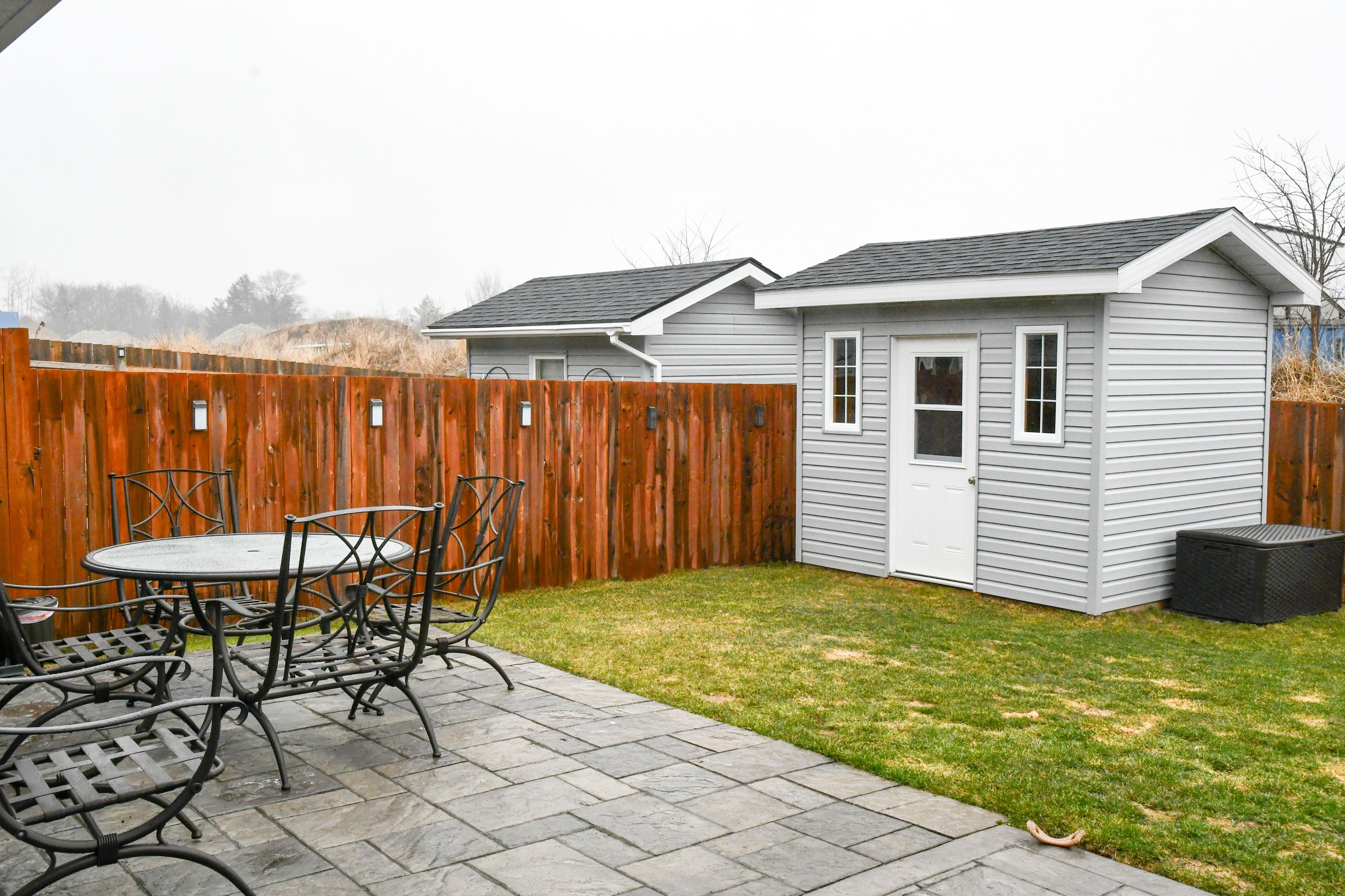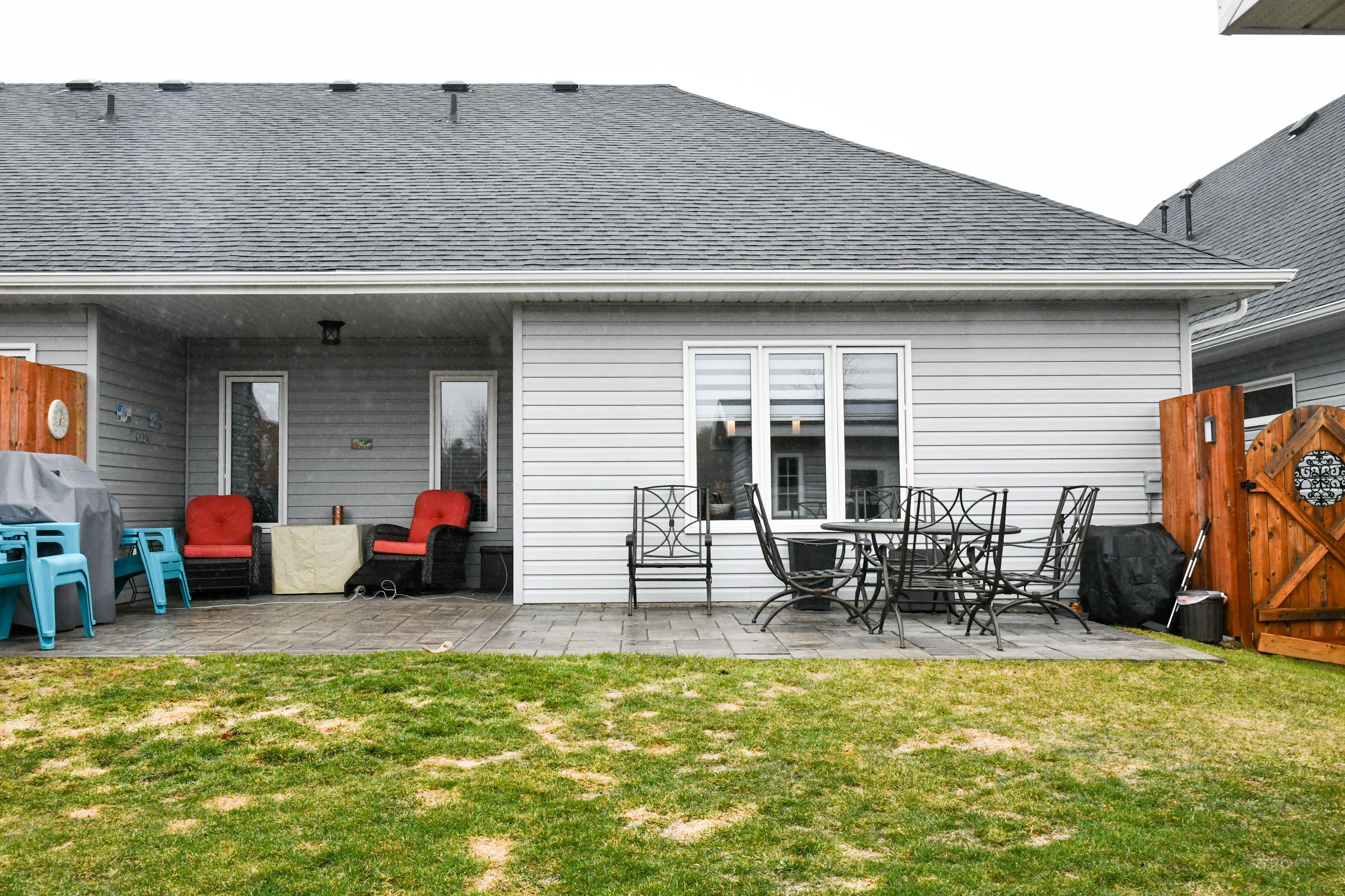 Welcome to castle grove, a sought-after new community in gananoque. This bright and spacious end-unit semi-detached home is impeccably maintained and loaded with quality upgrades, stylish finishes, and exceptional storage throughout-perfect for entertaining family and friends. Designed for easy, long-term living, this zero-step, slab-on-grade home offers true one-level convenience with minimal maintenance. The well-appointed kitchen features a generous walk-in pantry, while both bedrooms include large walk-in closets, ensuring ample storage space. Step outside to enjoy the fully fenced and landscaped yard with storage building, and both covered and open back patios-ideal for relaxing or hosting. A single-car garage adds everyday practicality. Located just steps from gananoque's shops, restaurants, parks, and amenities, this home combines comfort with convenience. With newer construction, no condo fees, and everything on one level, this is a rare opportunity you won't want to miss. Book your showing today and start planning your next chapter at castle grove.