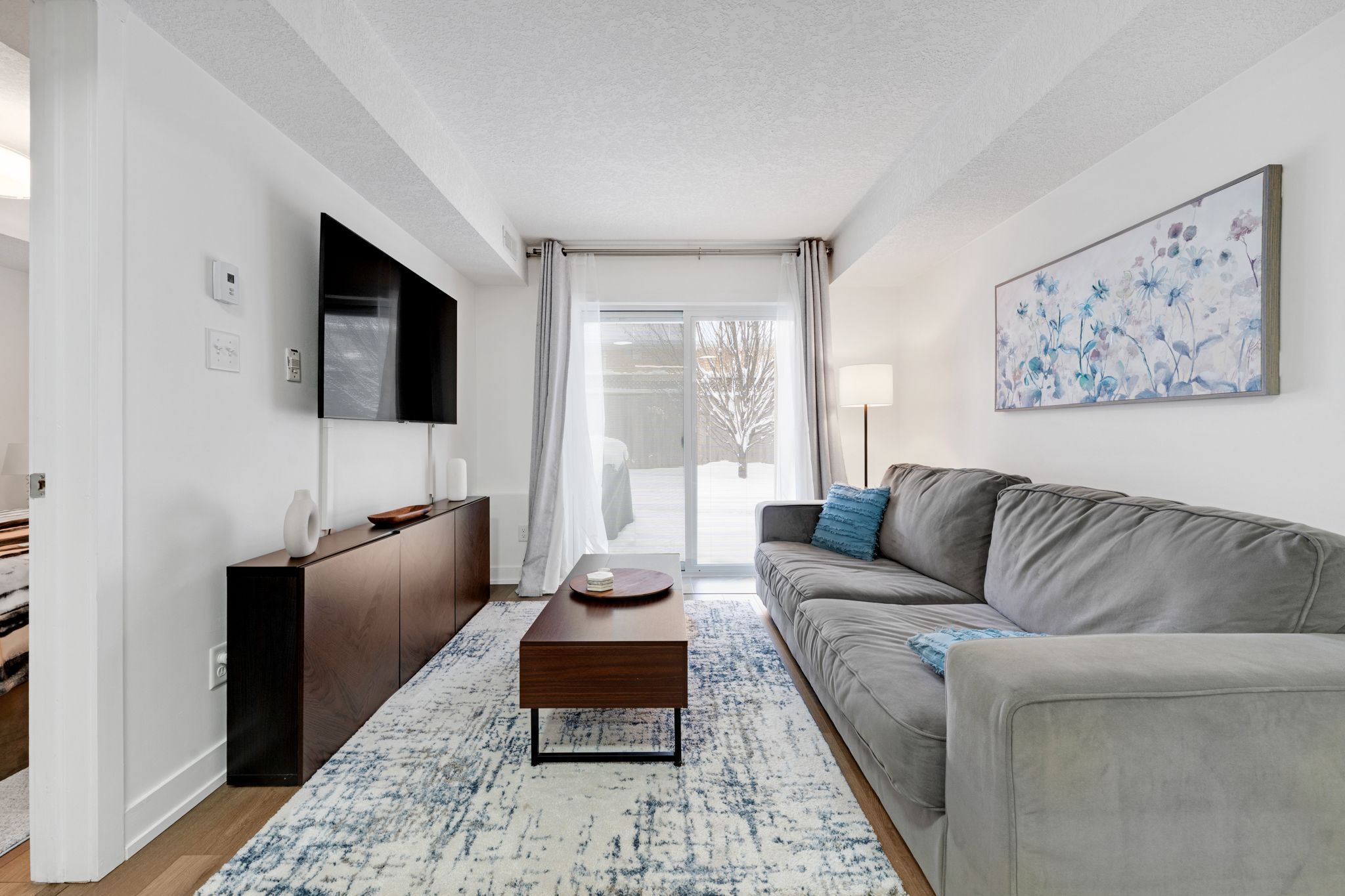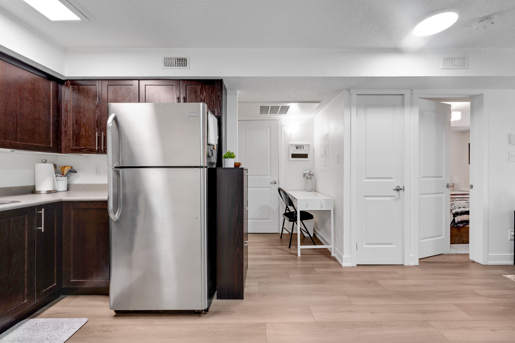 • Modern finishes and stainless steel appliances throughout the suite.