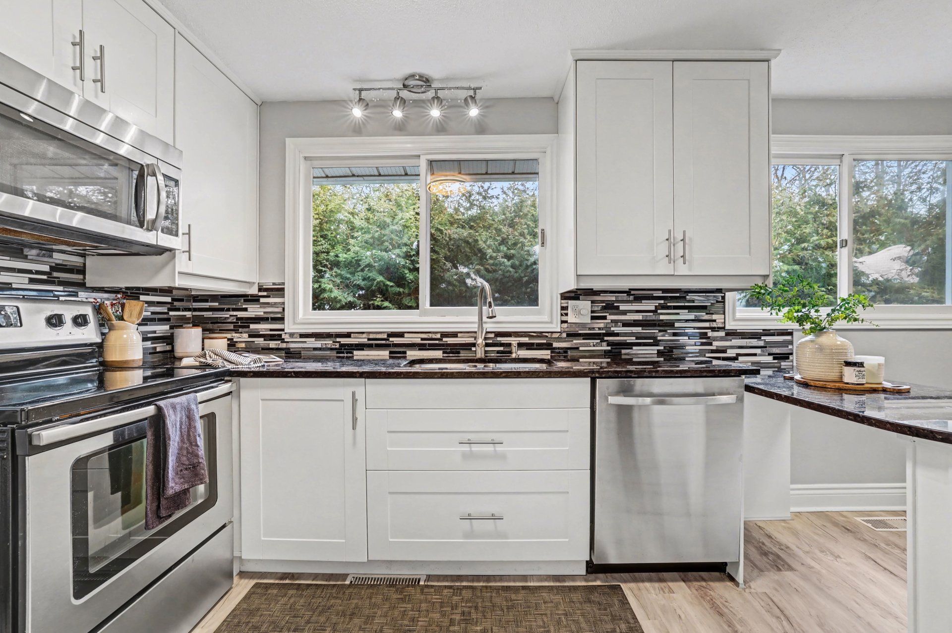 This split-level beauty is bigger than it looks and perfectly positioned on a generous lot in the central, sought-after ryan farm neighbourhood. You're just steps from algonquin college, college square, great transit and plenty of parks - perfect for morning strolls and weekend adventures. Inside, natural light fills the main floor living room, anchored by a cozy stone surround electric fireplace. The attached dining area overlooking the front yard is perfect for entertaining, with smart built-ins for extra storage. The updated kitchen shines with granite countertops, terrific storage and a sunny eat-in peninsula with an additional space for a coffee nook. Down a few steps, a spacious family room opens to the backyard, alongside a large bedroom that could be your primary suite or a special inter-generational space, complete with a private ensuite and larger glass shower. Upstairs, two more generous bedrooms, including one with custom closets and private bath access, while the other offers a bright, cheerful hideaway for kids - or for anyone who loves a cozy spot to read. The basement is ready to expand your living space and features a brand-new modern bathroom with an extra long freestanding bathtub. Outside, your own city oasis awaits: a refreshing and beautiful in-ground pool with stone surround and deck, perfect for summer nights and weekend entertaining. A home this thoughtfully designed, in such a convenient location, really has it all- it's a place you'll be proud to call home, home. Come fall in love with 185 withrow.