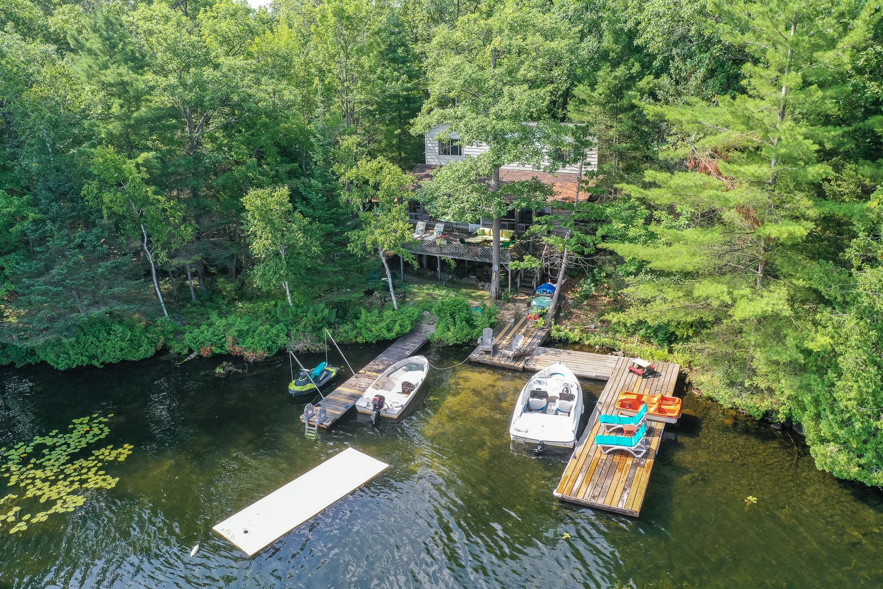 • Deep, clean water right off the dock for swimming and boating.