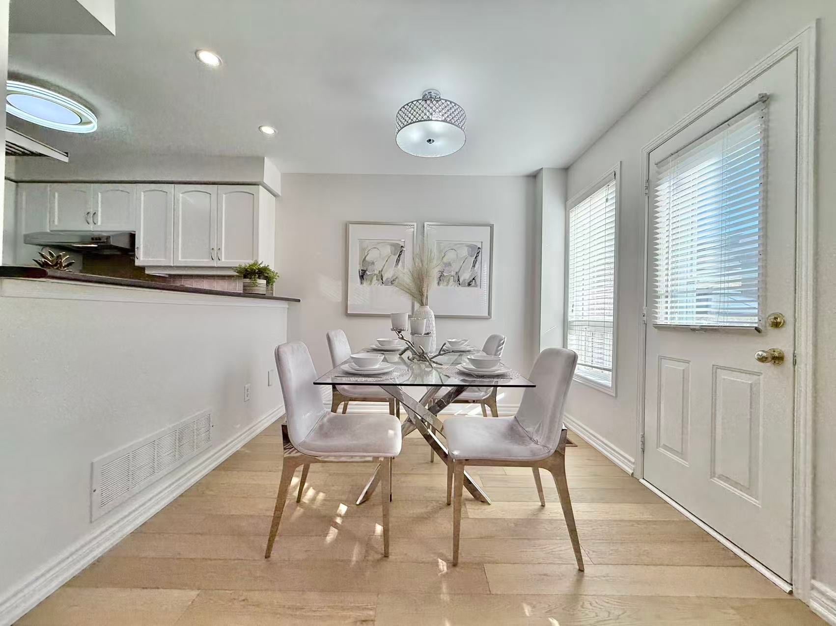 3+1 bedrooms 3 baths freehold 2 storey townhome in uptown burlington. All brick exterior w/ laminate flooring throughout and pot lights on main floor. Kitchen with valance lighting and ceramic backsplash w/ breakfast bar. Dining overlooking huge interlocking backyard. Open concept family room w/ large windows. Master bedroom with 4 pcs ensuite & w/i closet. Newly renovated open concept living and 4th bedroom in basement, w/ 4 pcs bath. Steps to park & public transit. Close to school, go train, supermarkets, shopping plazas, golf club & hwy407/qew...