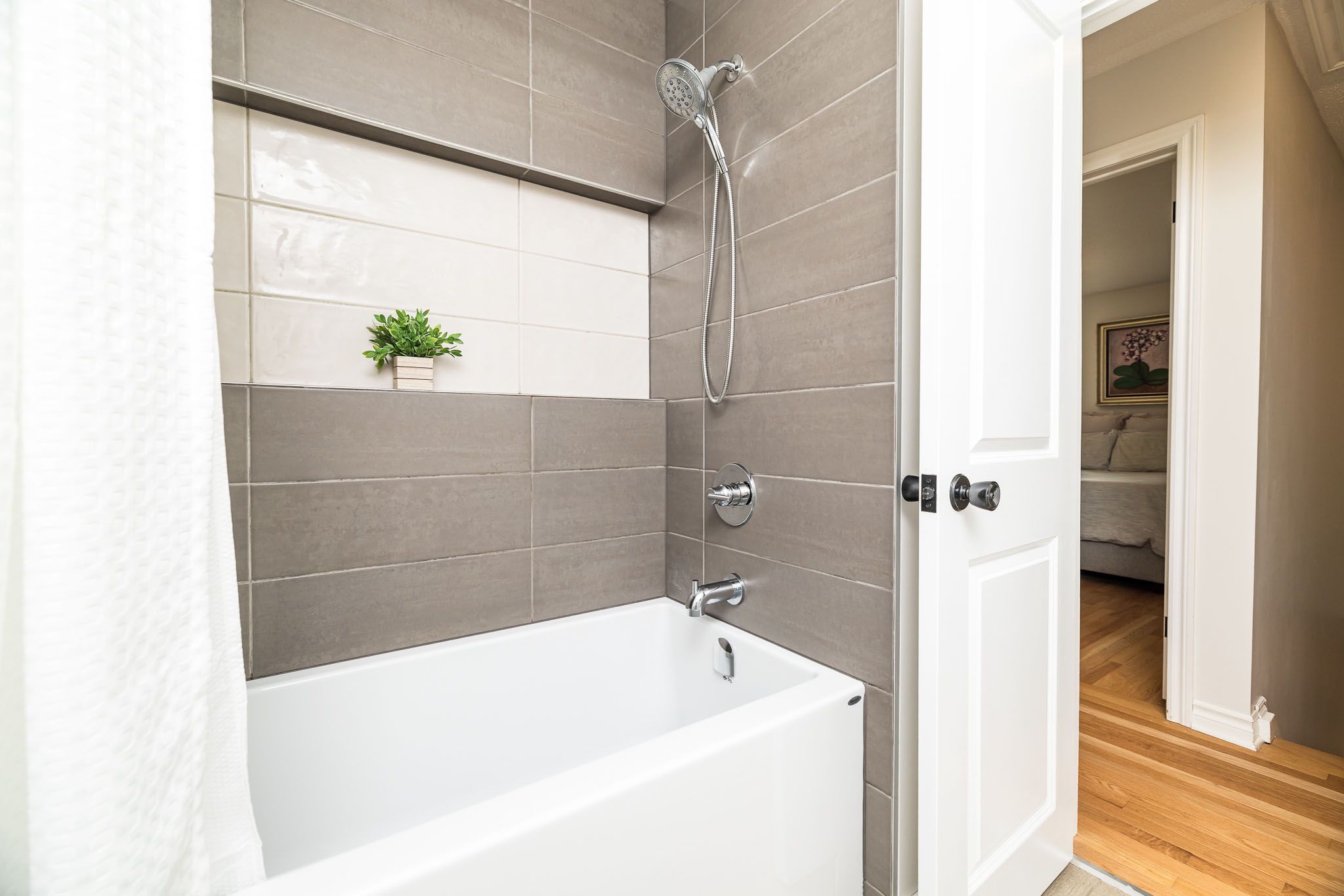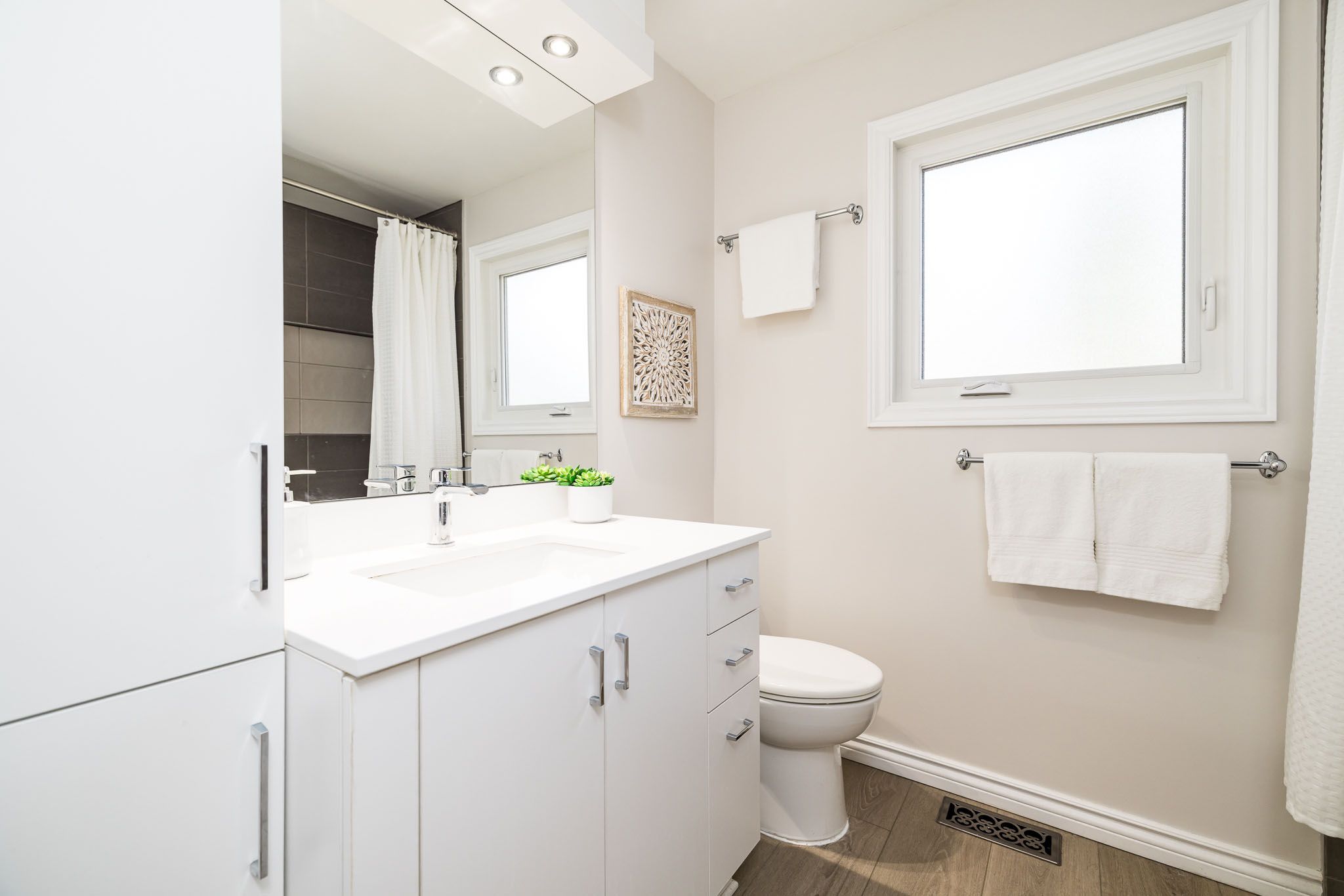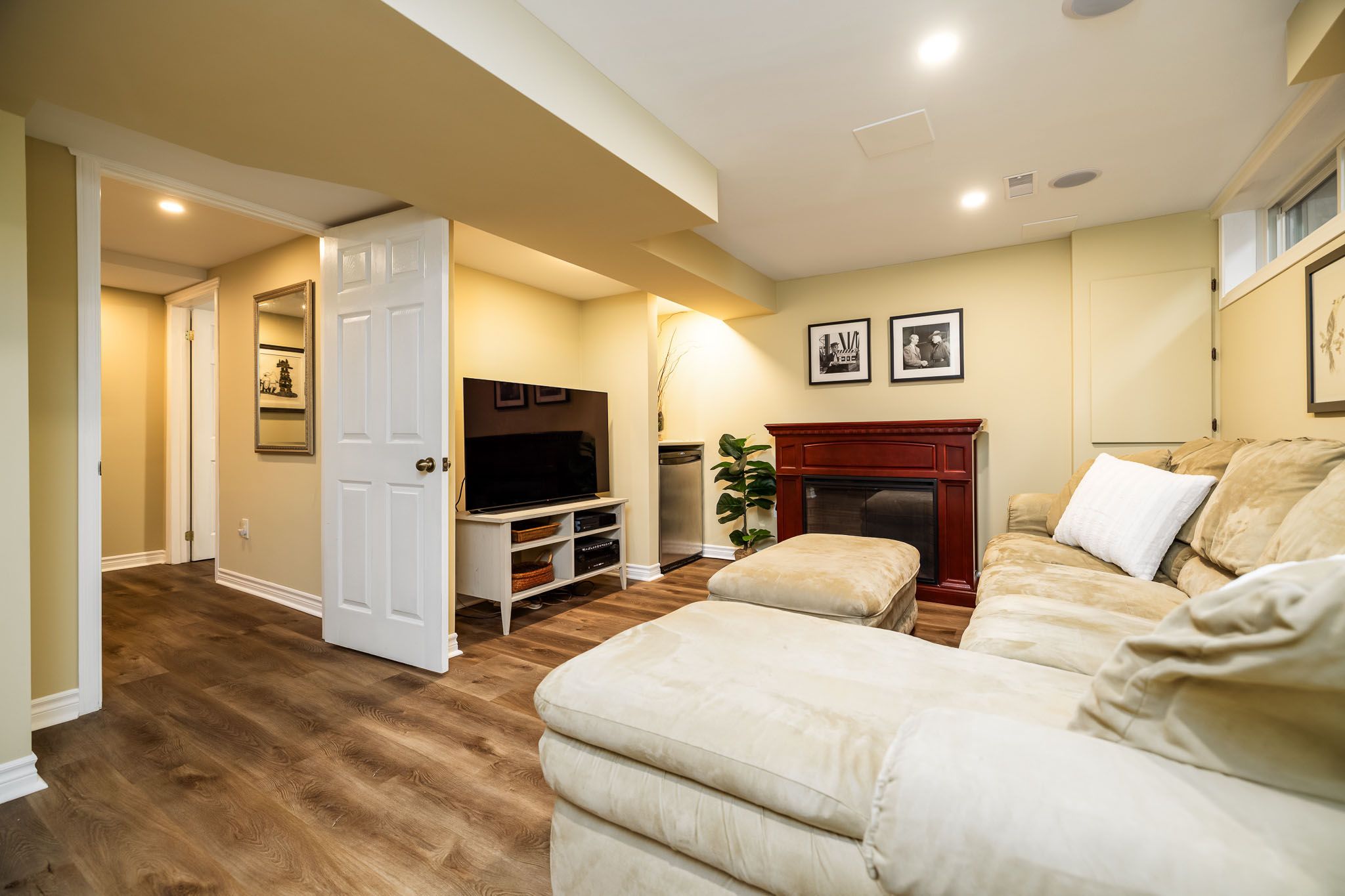 • Finished lower level with recreation room, den, and renovated bathroom.