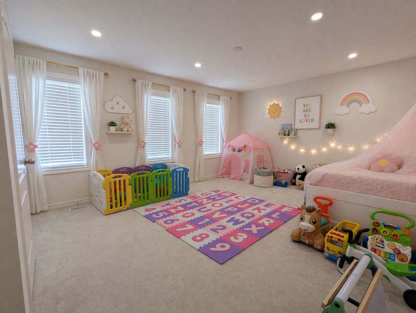 • Smart potlights throughout, fully wifi-operated with color-changing features.