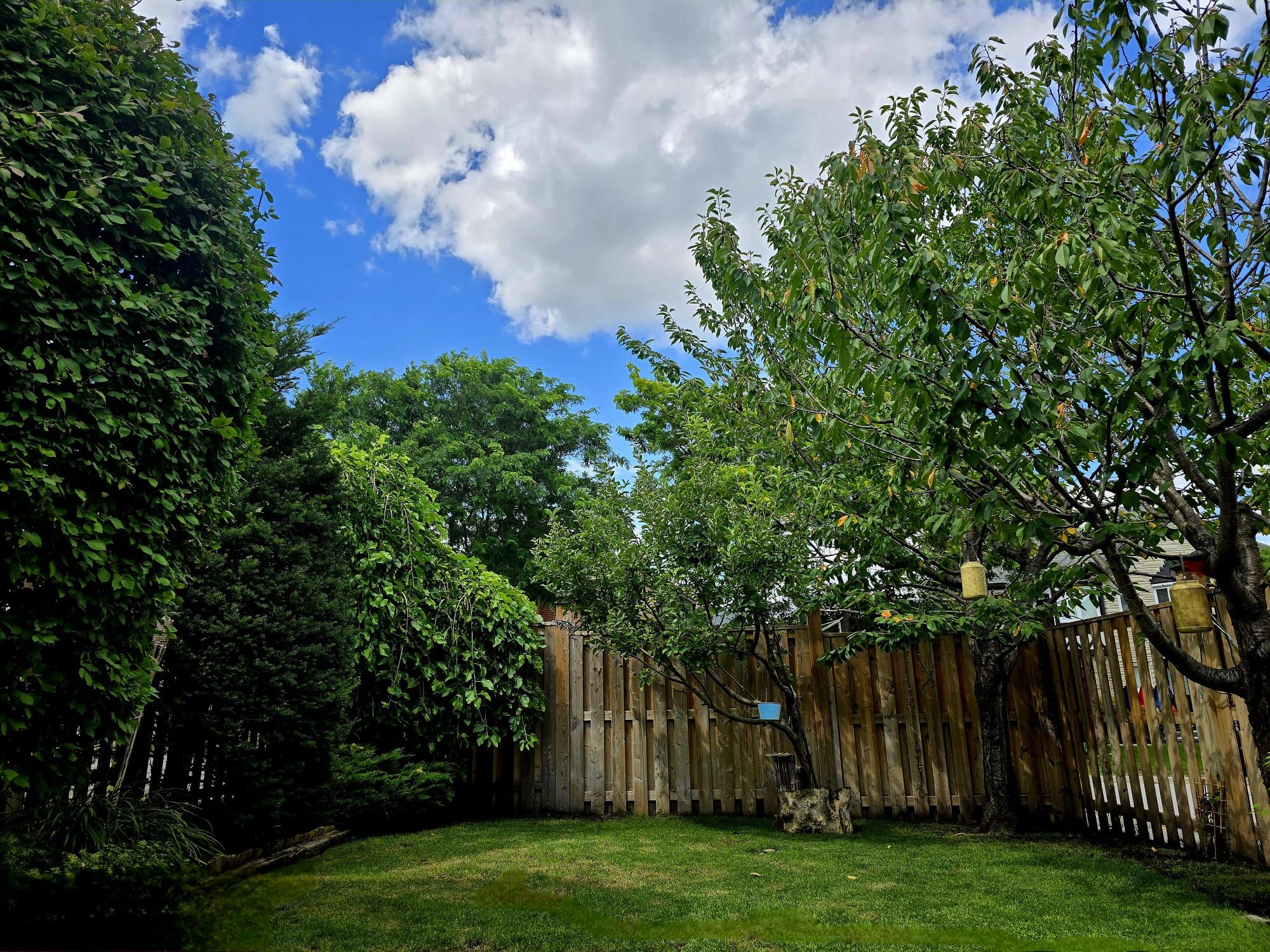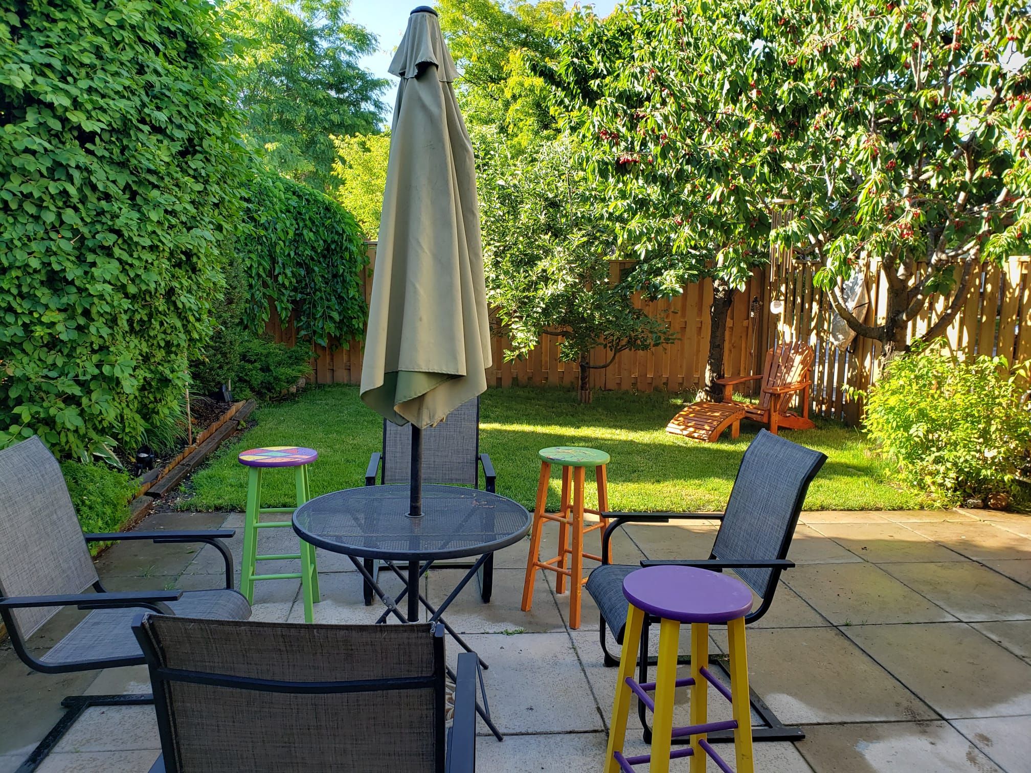 • Bright interior with serene backyard views featuring fruit trees and local wildlife.