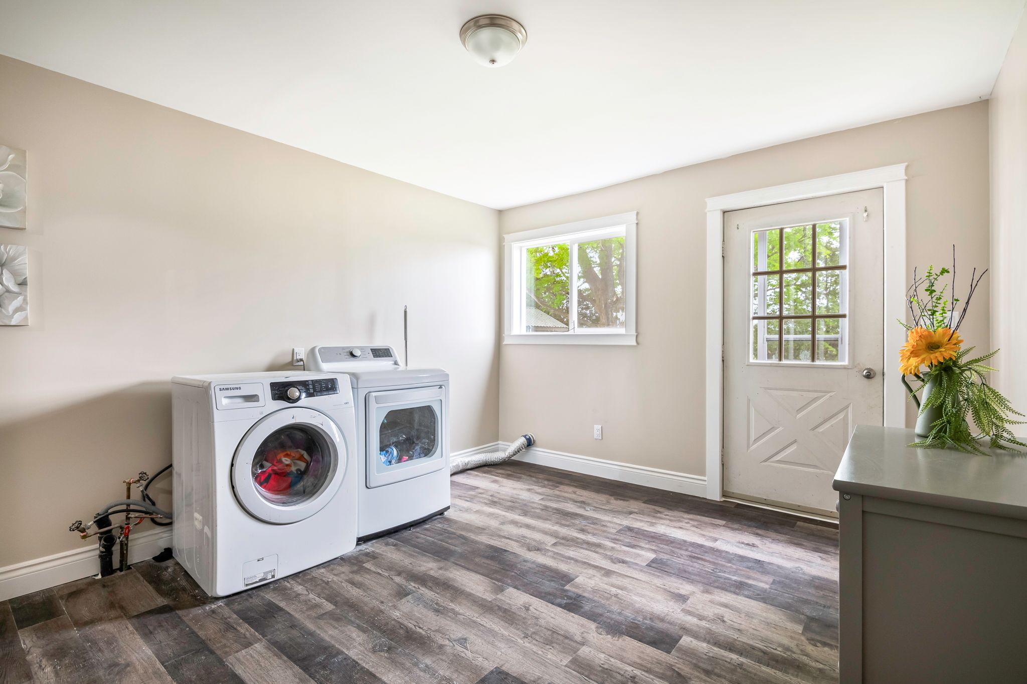 • Main floor features two bedrooms, an office, and a large laundry room.