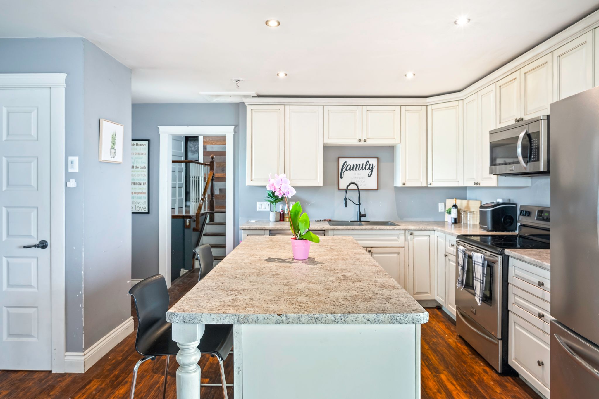 • Spacious open concept kitchen with a fantastic island and stainless steel appliances.