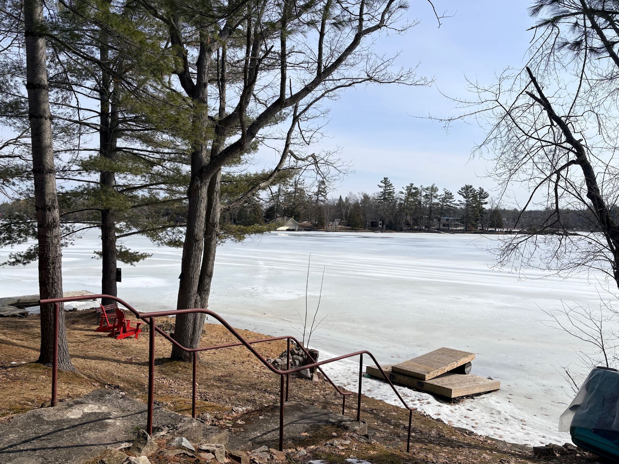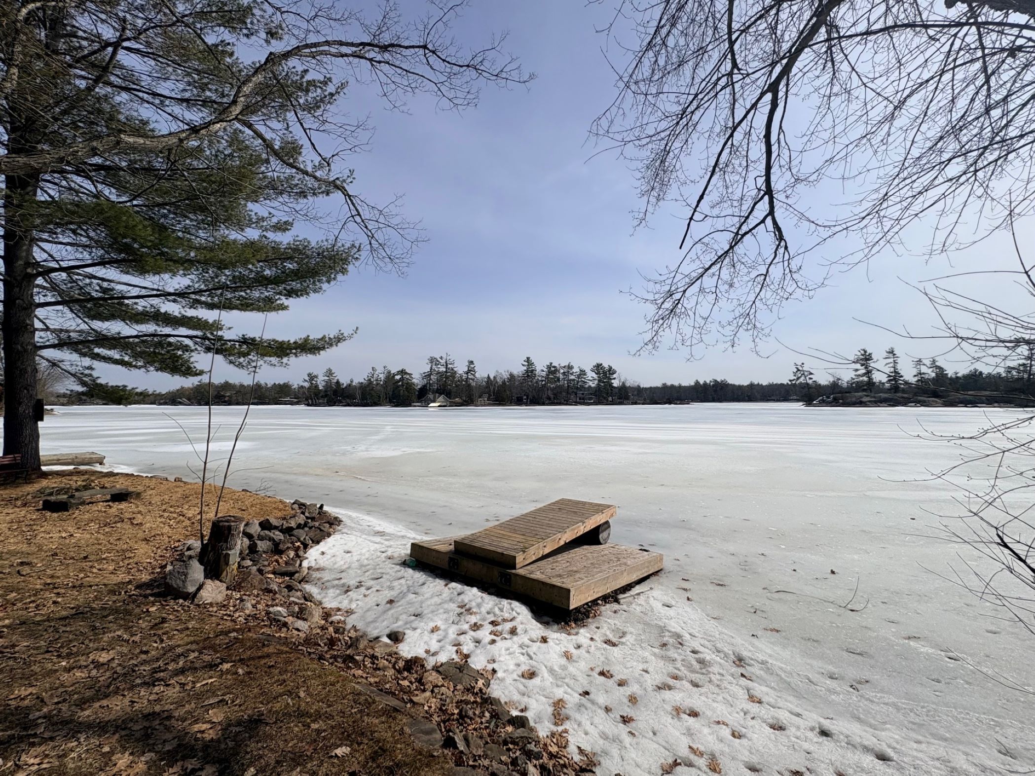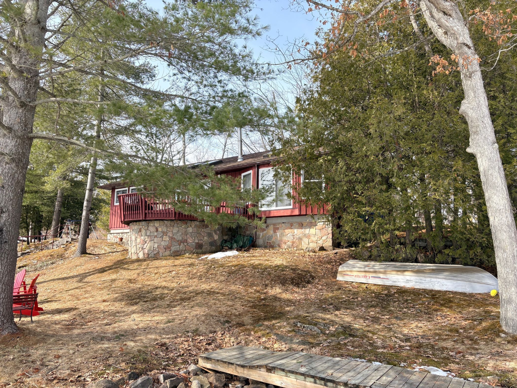 Stoney lake. Year-round bungalow style lake house. Gorgeous open lake and island view with sunrise exposure. Good swimming frontage - level, gently sloping property with mature pine trees. This property also has frontage on a quiet back bay which is perfect for children or adults to explore. The home features 3 bedrooms, an open concept design with walkout to large lakeside deck, wood burning fireplace, 2 bathrooms, laundry - mud room, forced air heat and central air conditioning. Located on a privately maintained, year-round road - with both year-round and seasonal neighbours. Upper- stoney location with a "crown land" island in sight and a short paddle away. Well maintained home. Enjoy all four seasons on beautiful stoney lake.
