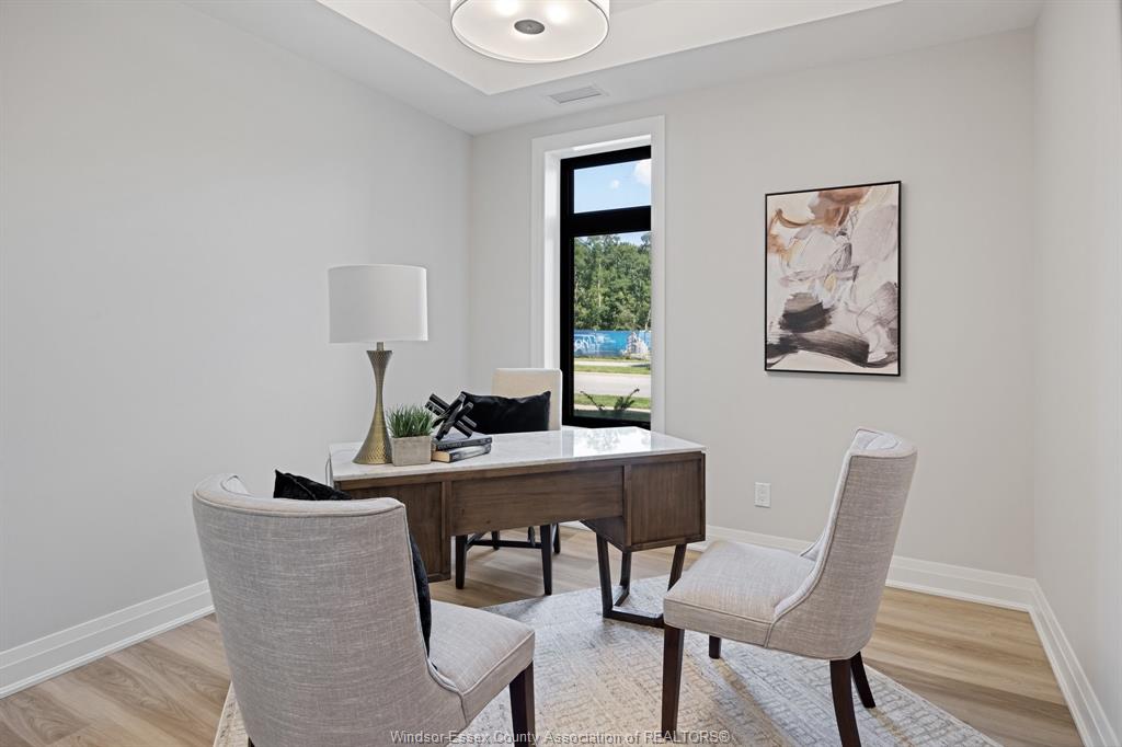 • Great room with a trayed ceiling and stylish linear fireplace.