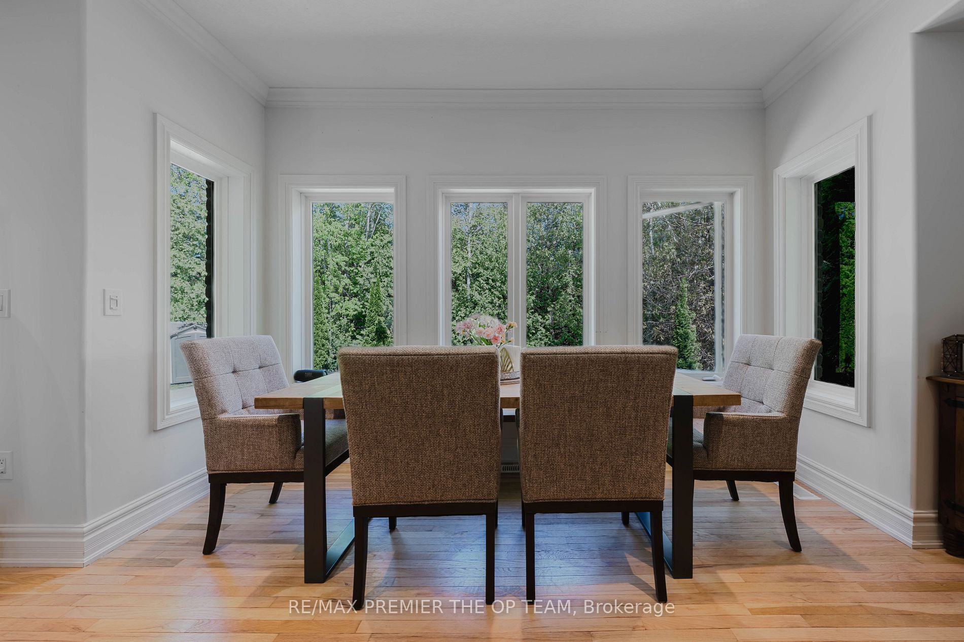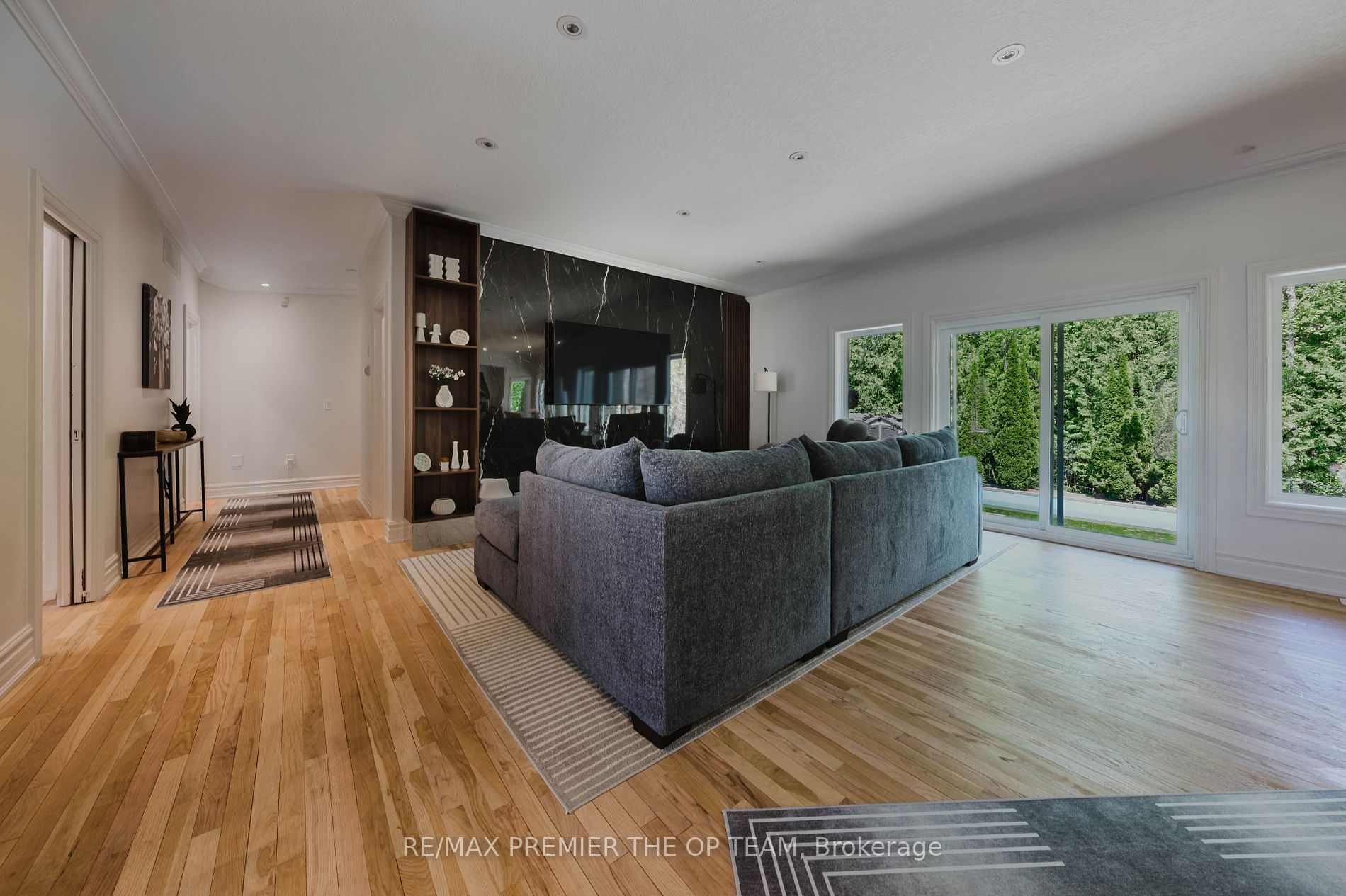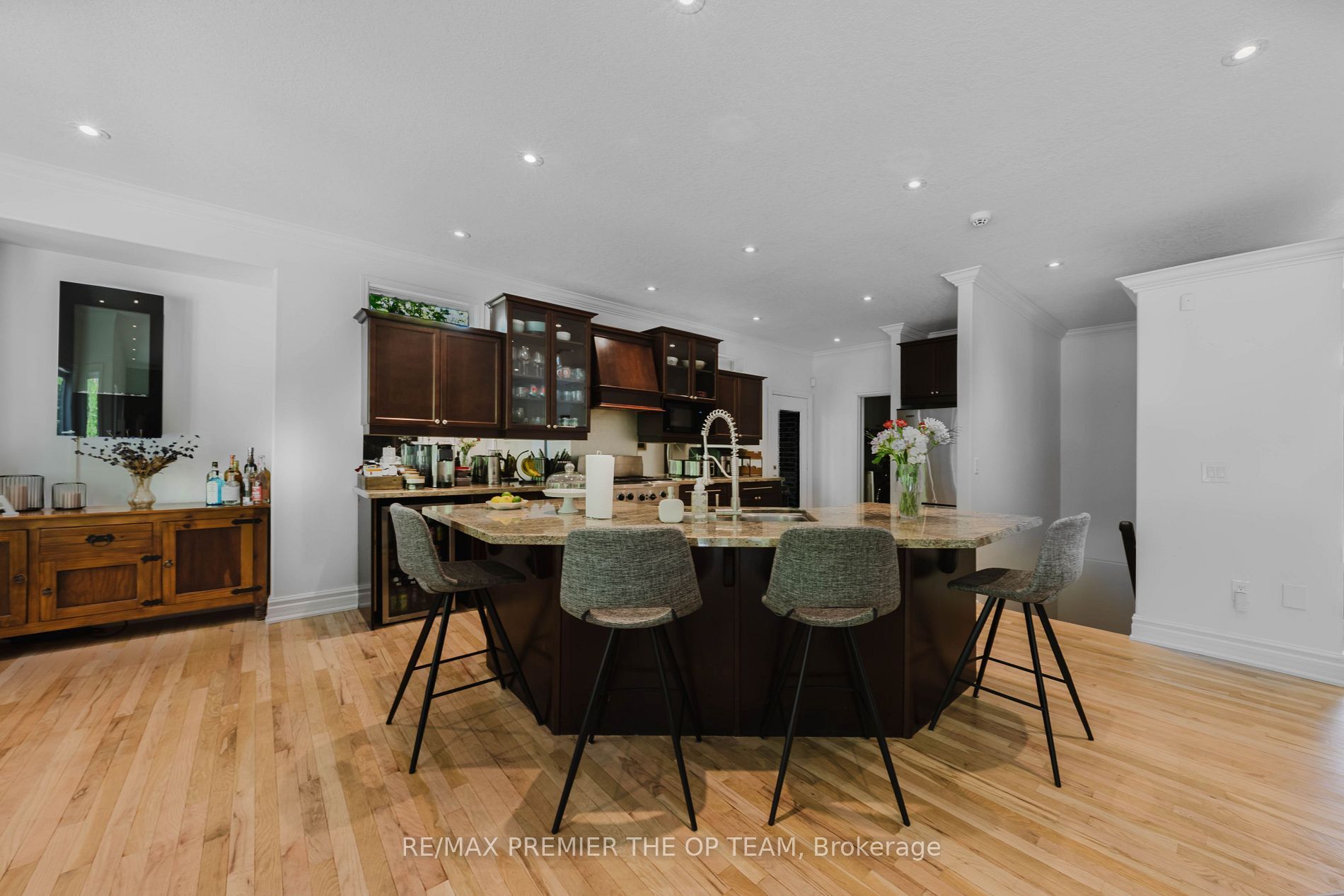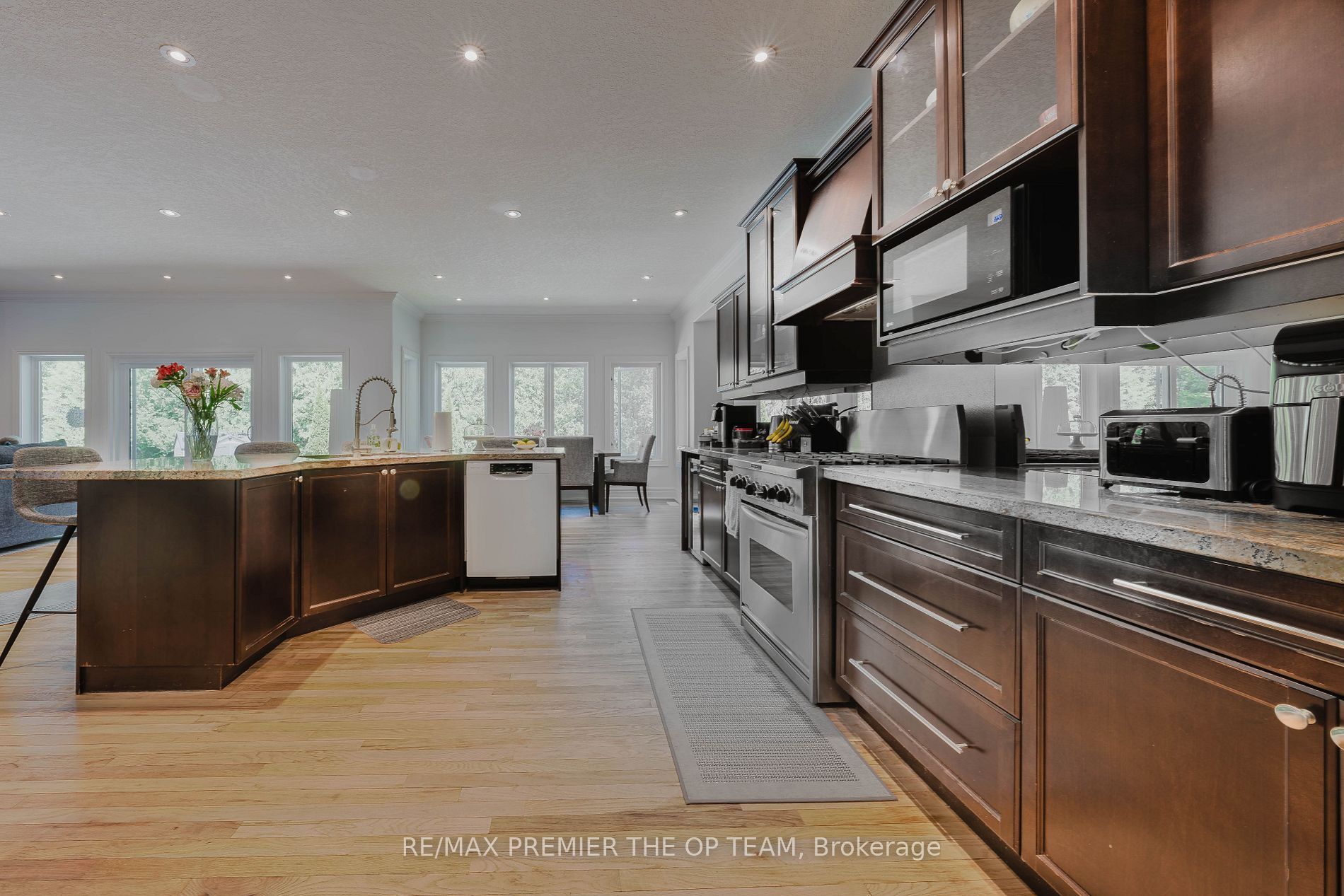 • Open-concept layout with rich oak hardwood floors and modern finishes.