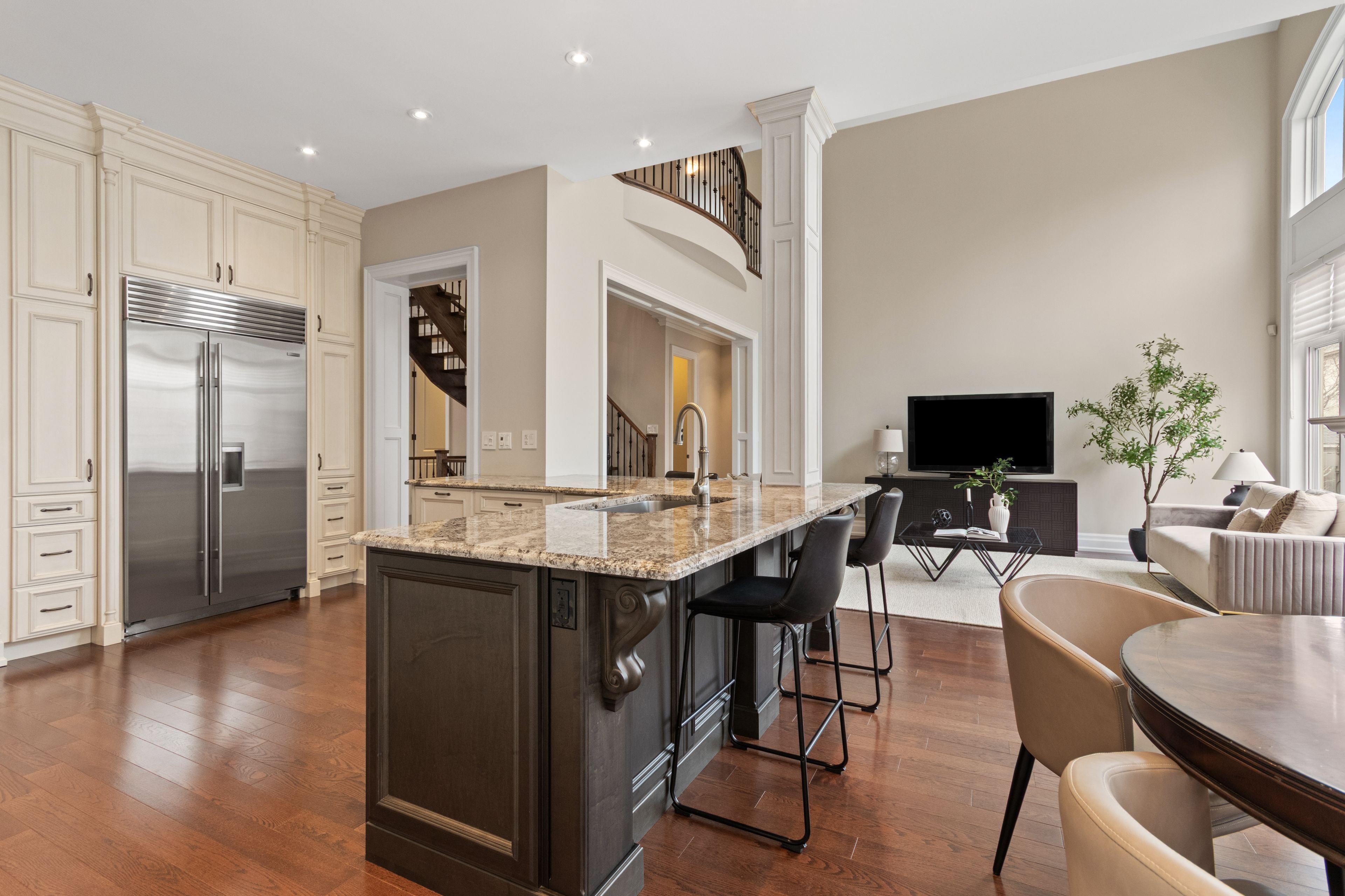 • Open-concept kitchen with premium appliances and elegant finishes for entertaining.