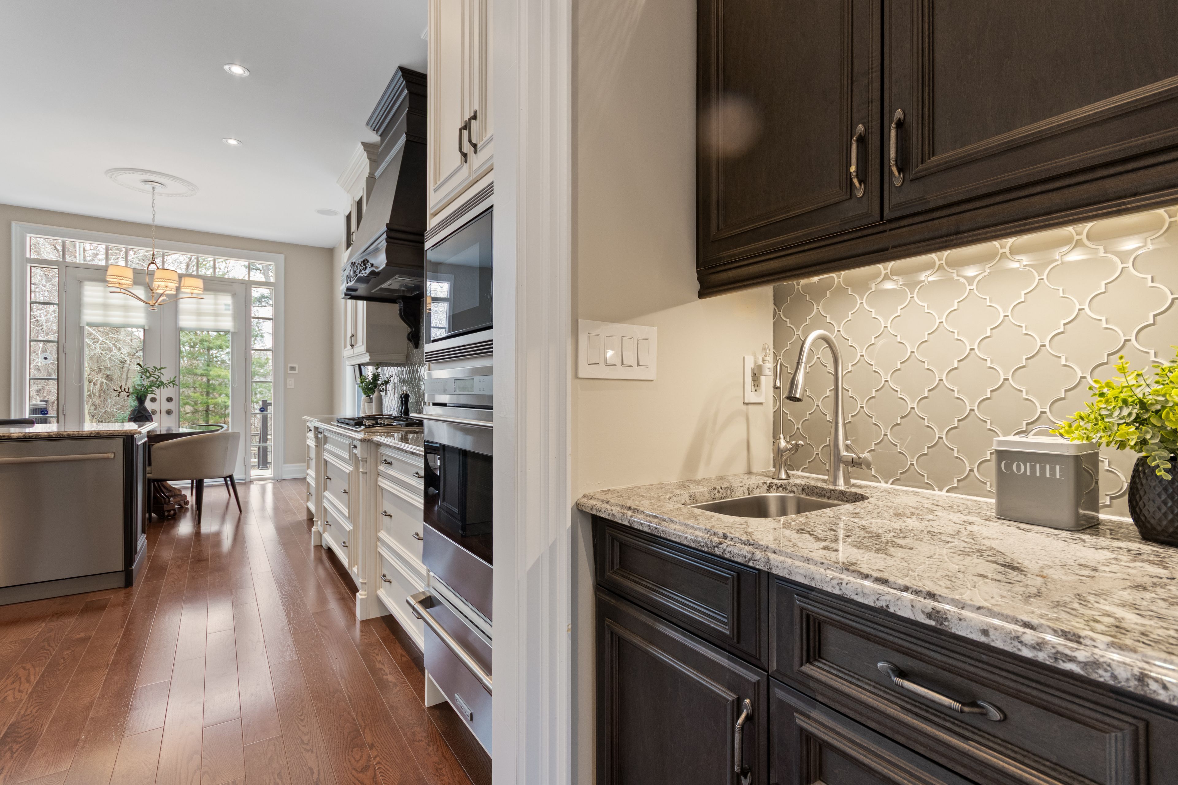 • Professionally finished basement with guest suite, recreation room, and kitchenette.