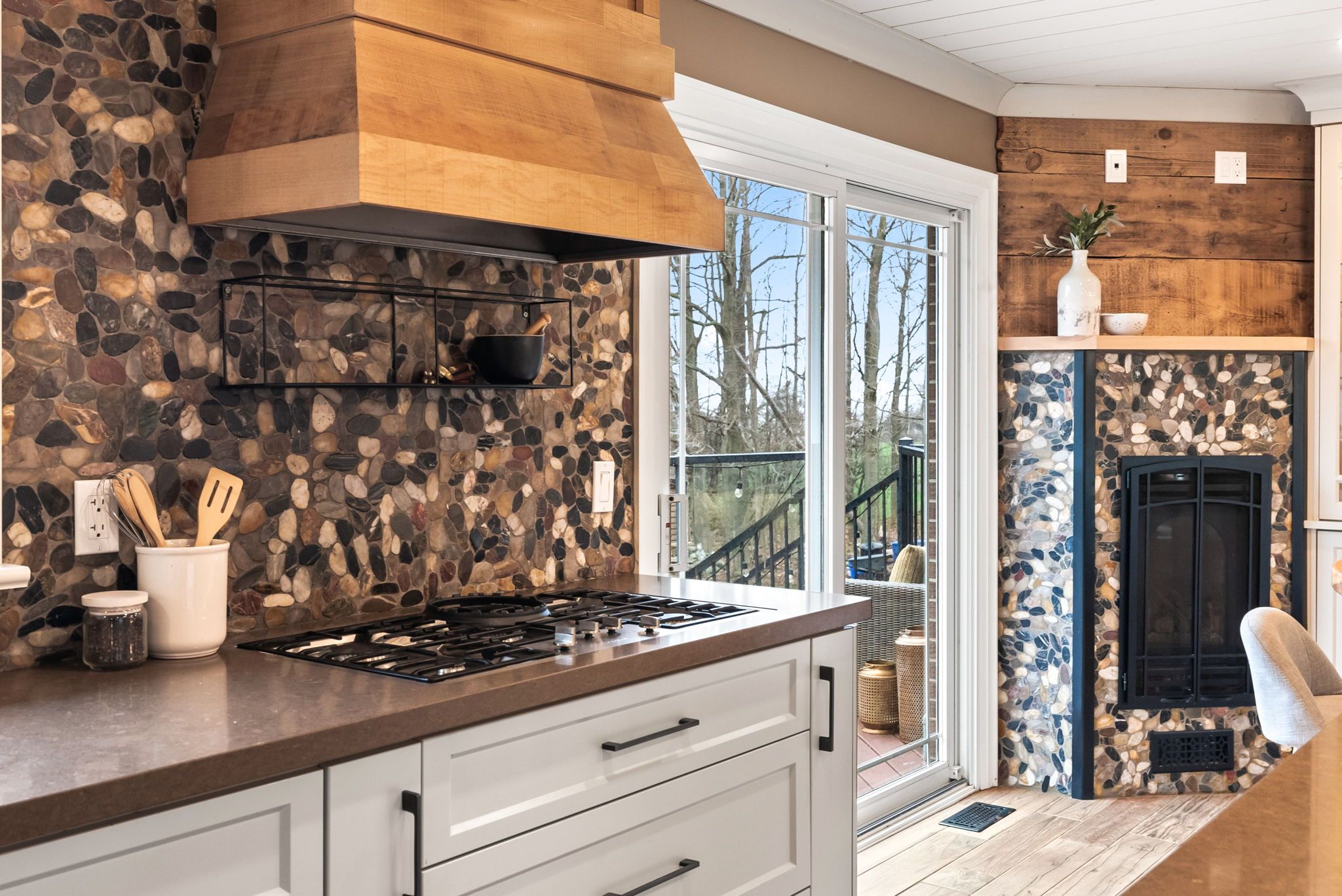 • Relaxing outdoor space with hot tub and fire pit in natural surroundings.