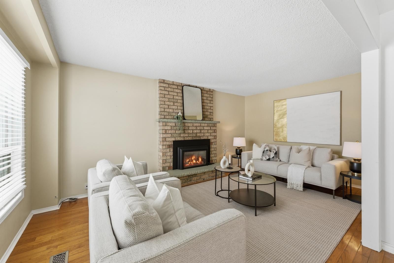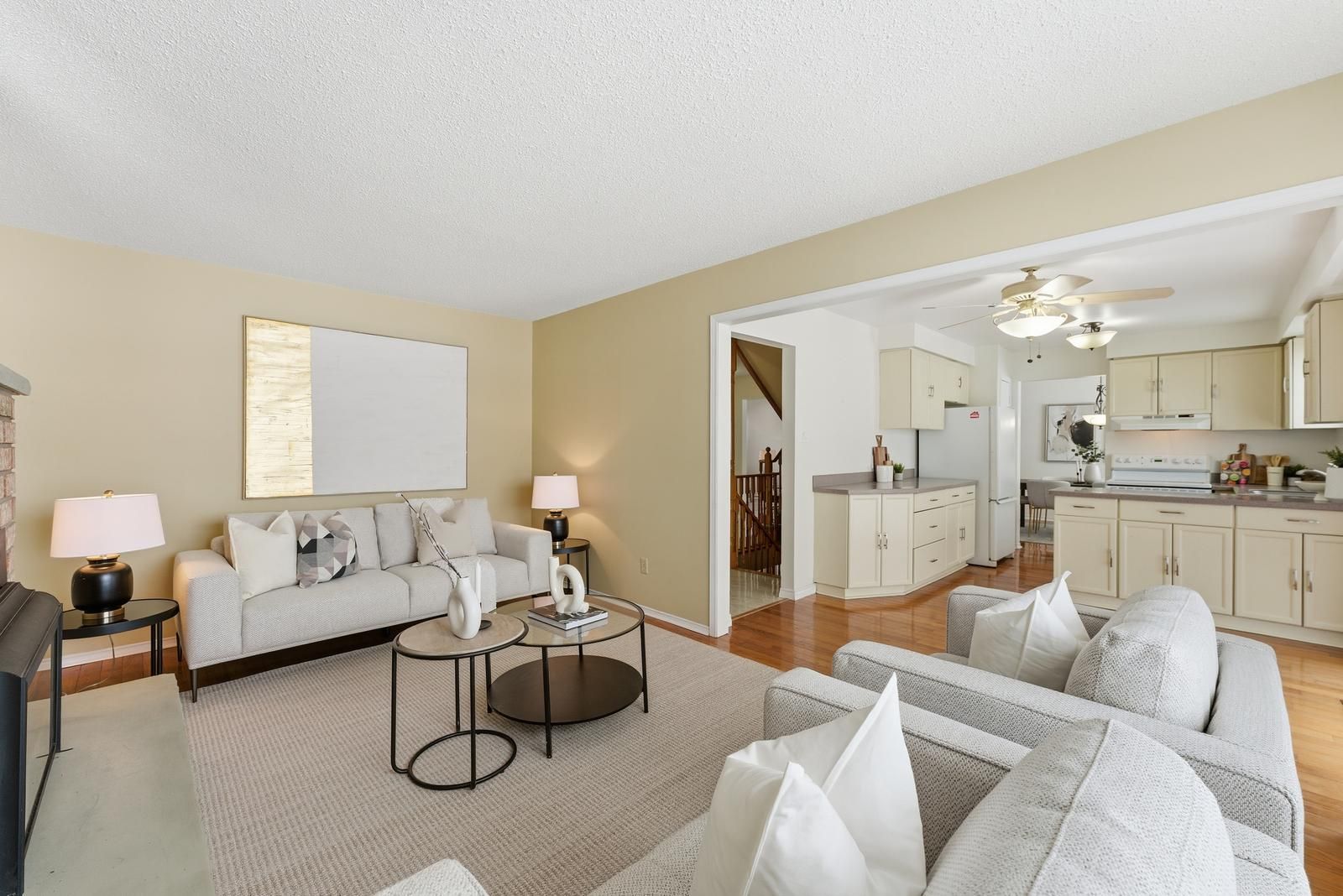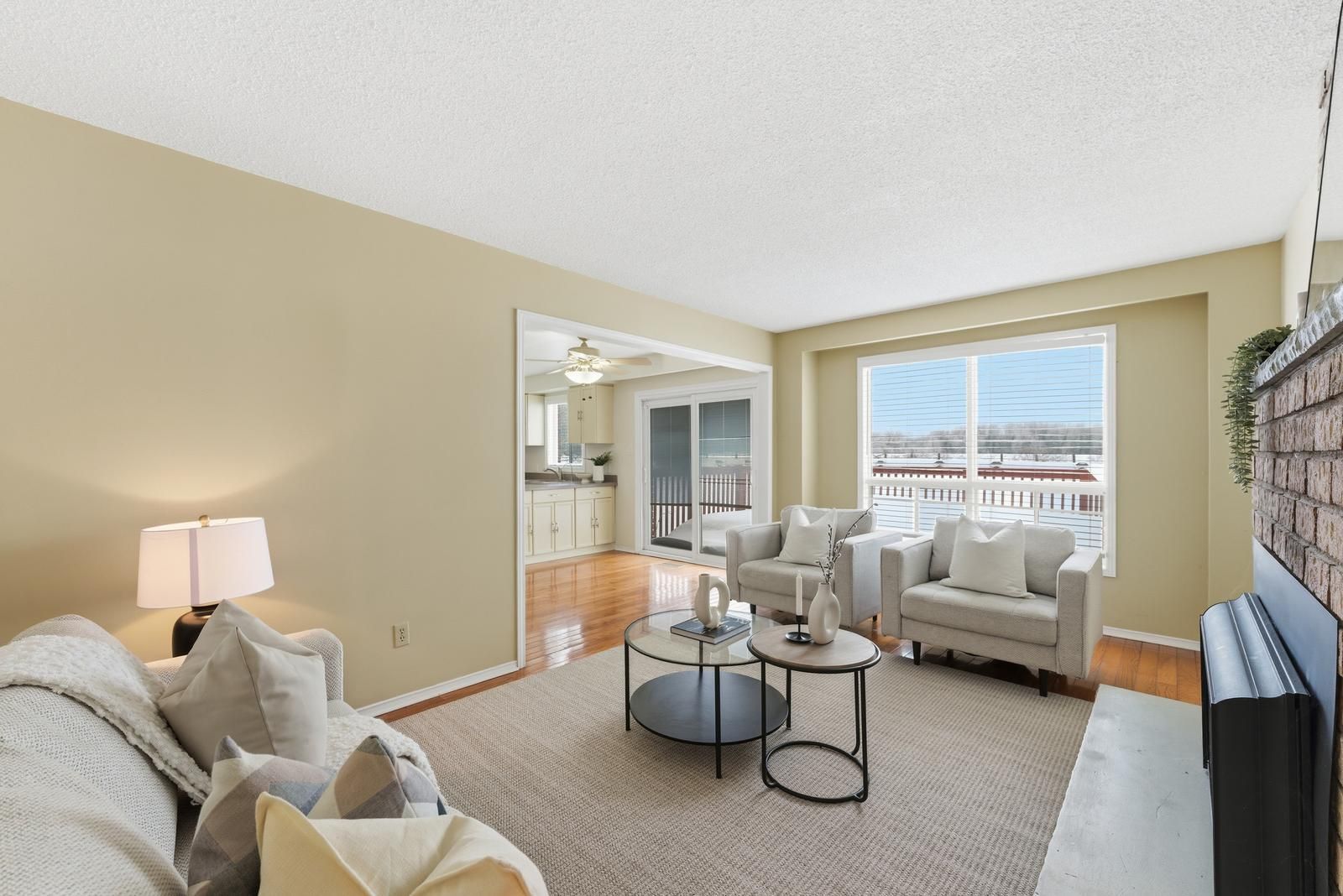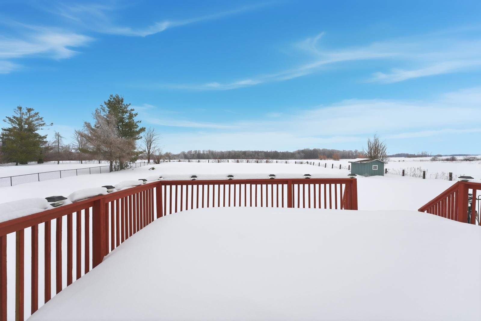 Welcome to this 2-storey family home on 1 acre with open views. This 4-bedroom property offers 2,200 sq ft above grade with a functional separate living, family & dining room layout. The bright kitchen flows into the family room with a gas fireplace. Hardwood flooring runs through the main living areas & the enclosed front porch adds additional usable space. The finished basement extends the home with a second gas fireplace and bar area. Outdoors, enjoy a saline inground pool, landscaping, oversized deck on the flat rectangular lot. Major updates include roof (2019), a/c (2022), water softener (2022),a newly paved driveway (2022) with parking for many vehicles, new staircase carpet (2026), updated kitchen (2026), removed bedroom carpet (2026).