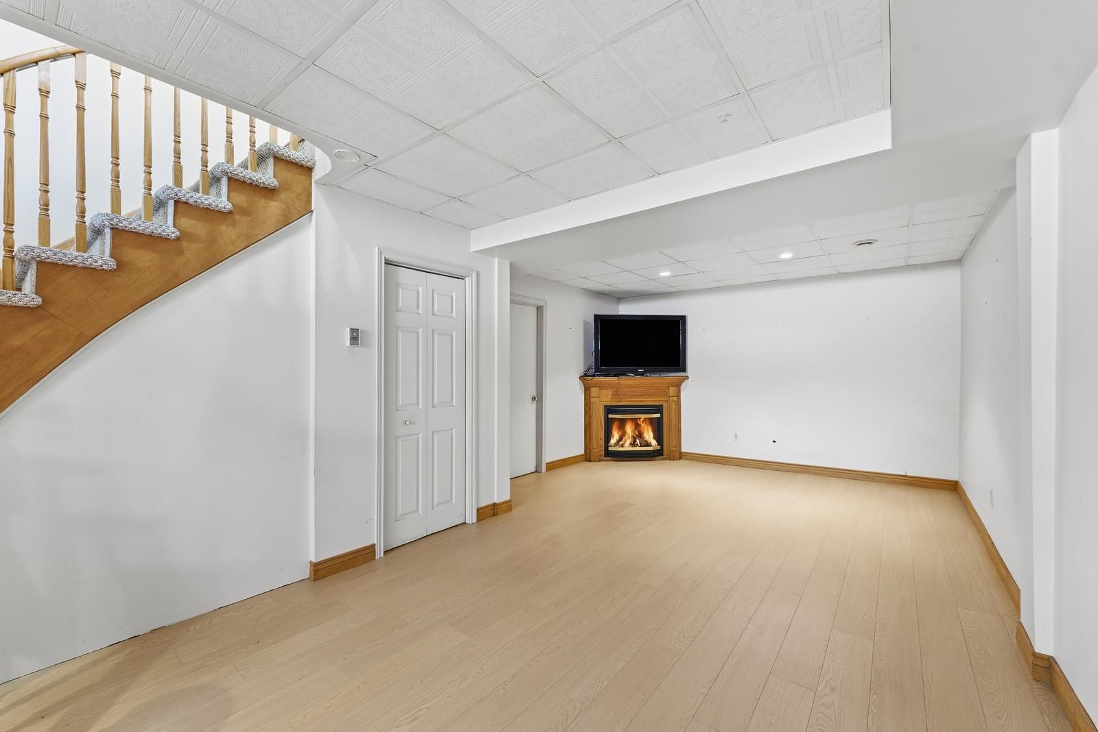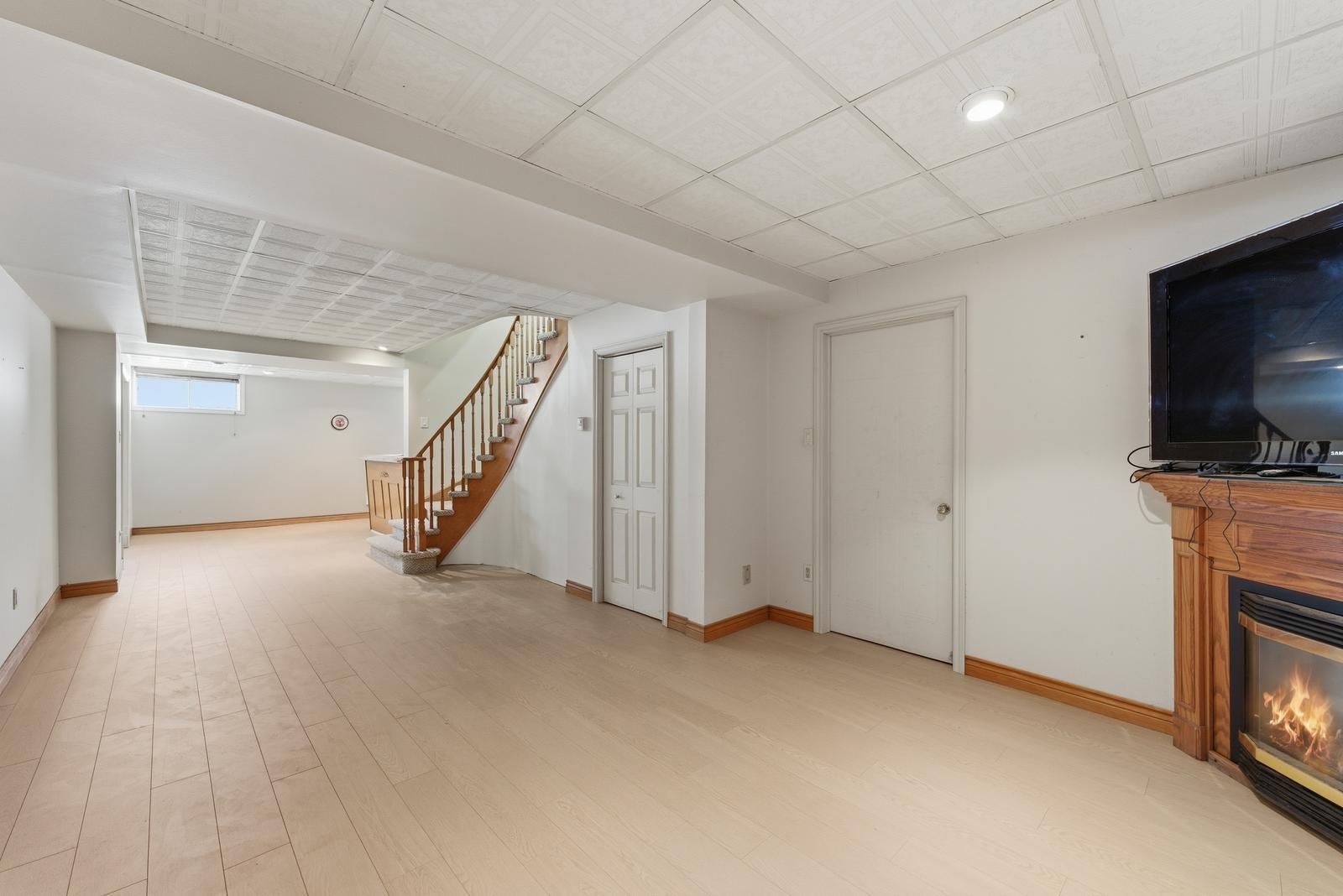 • Finished basement includes a second gas fireplace and bar area.