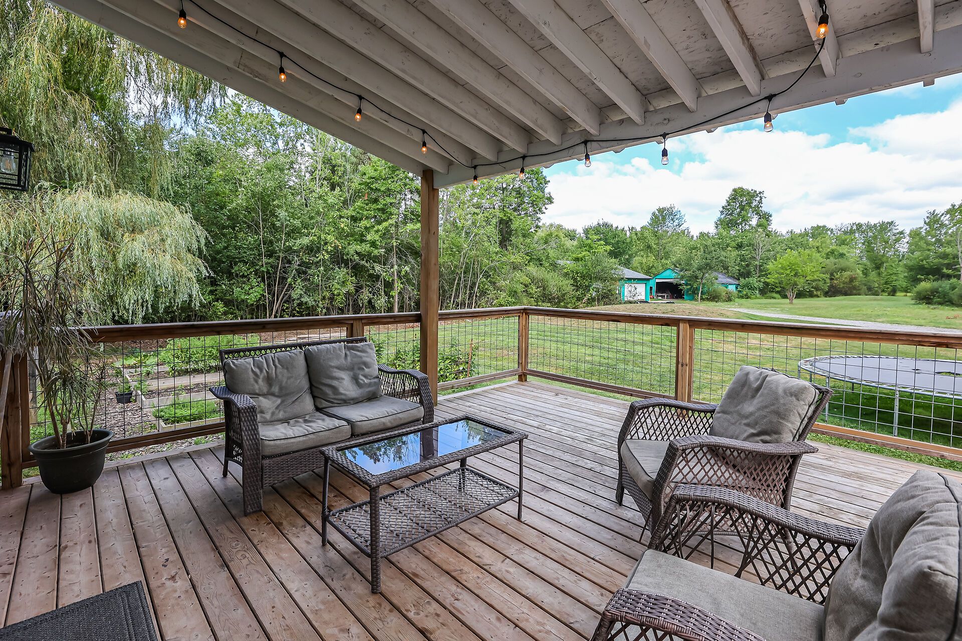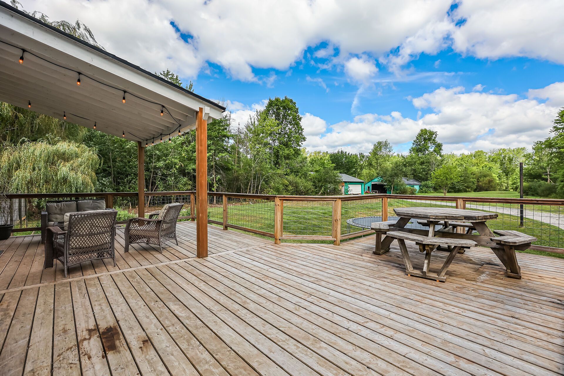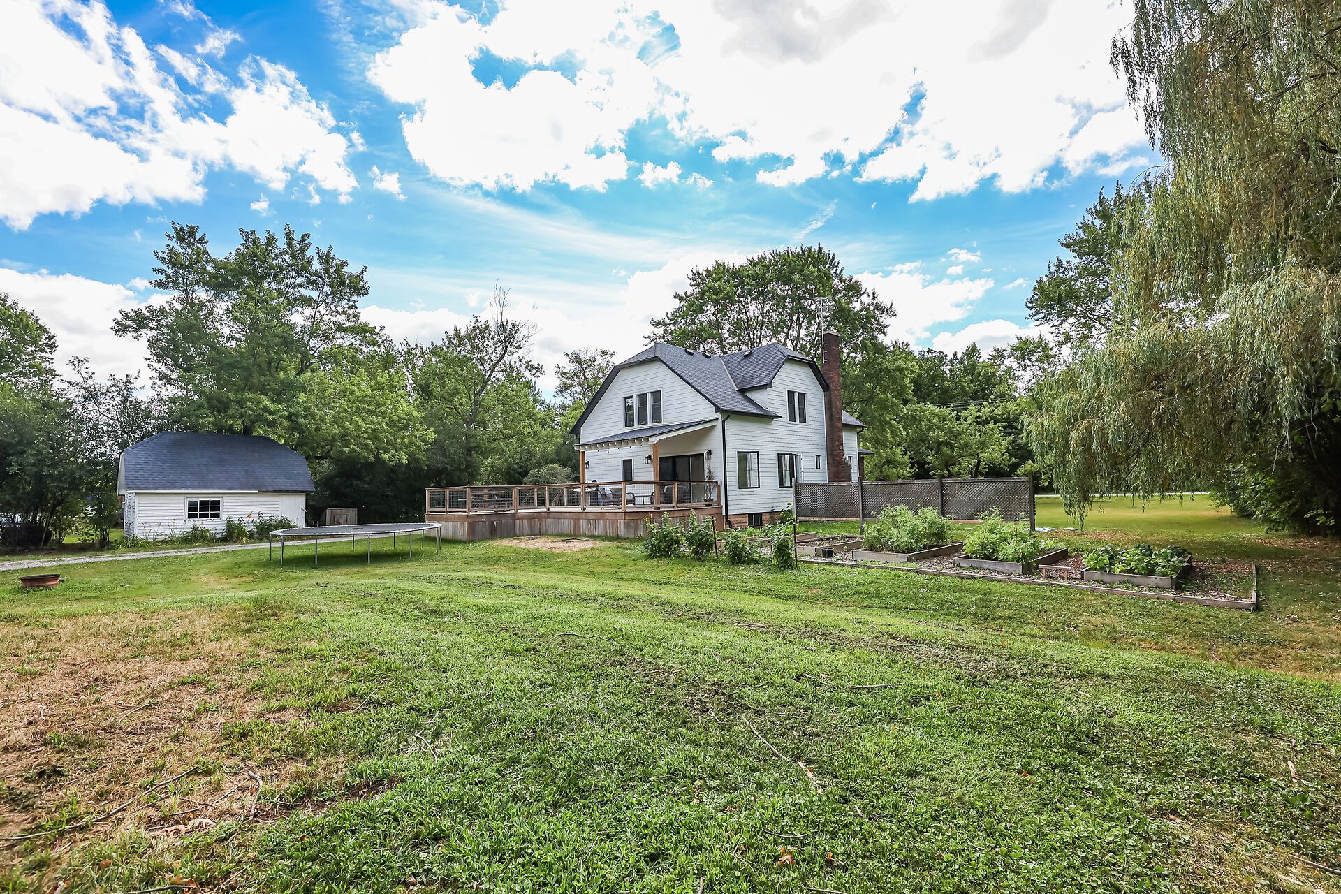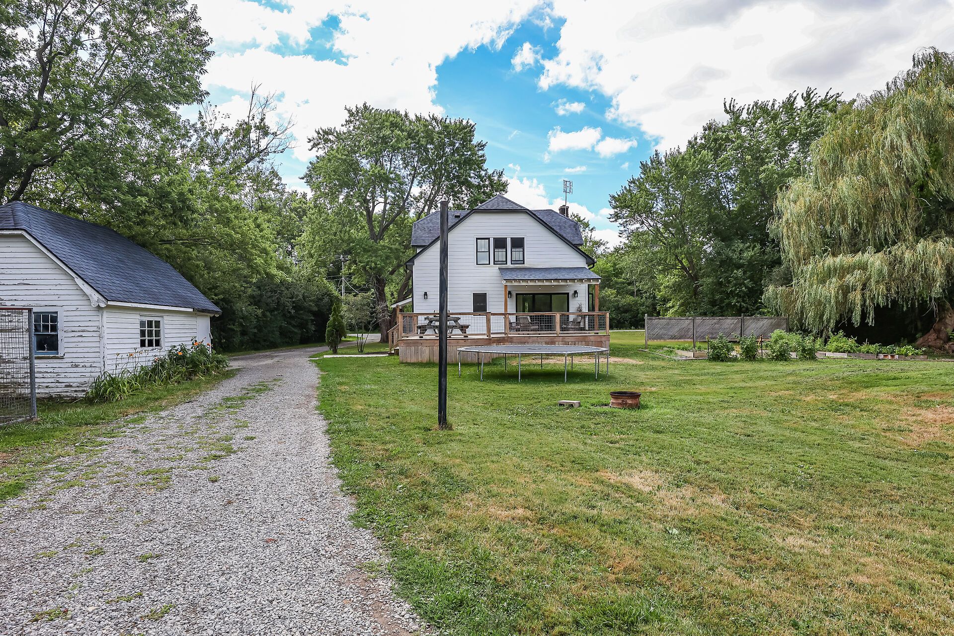 • Dog-friendly covered deck and three outbuildings for added convenience.