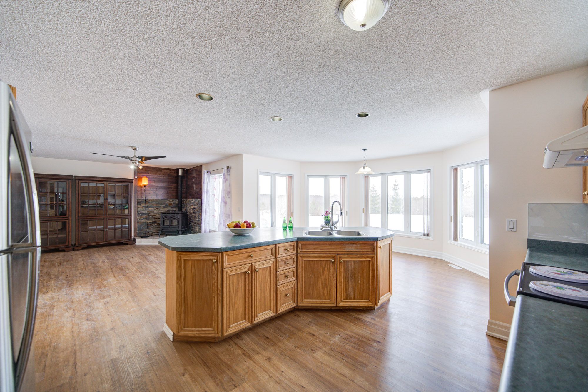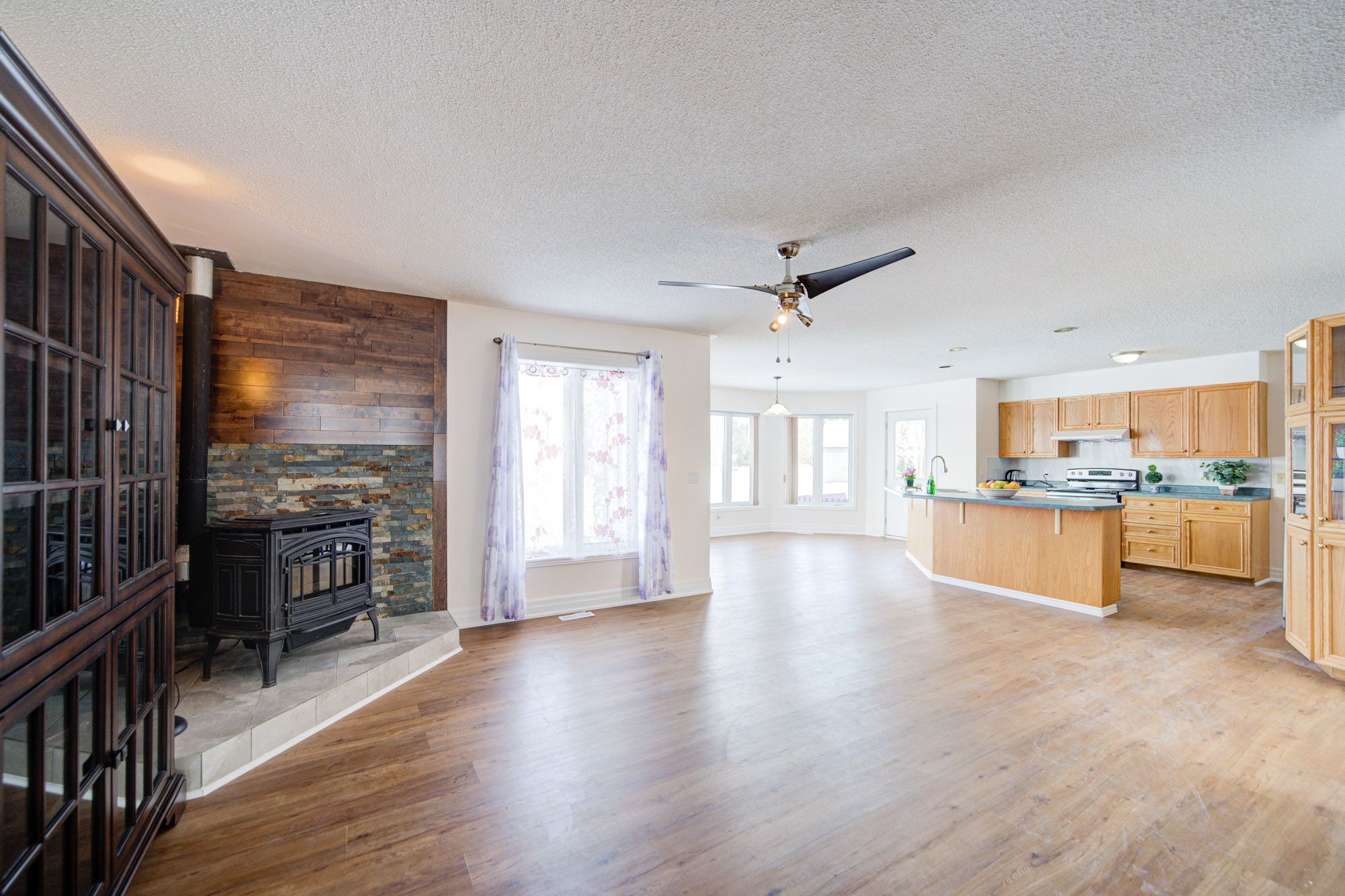 • Open-concept bungalow on a spacious 107-acre private lot.