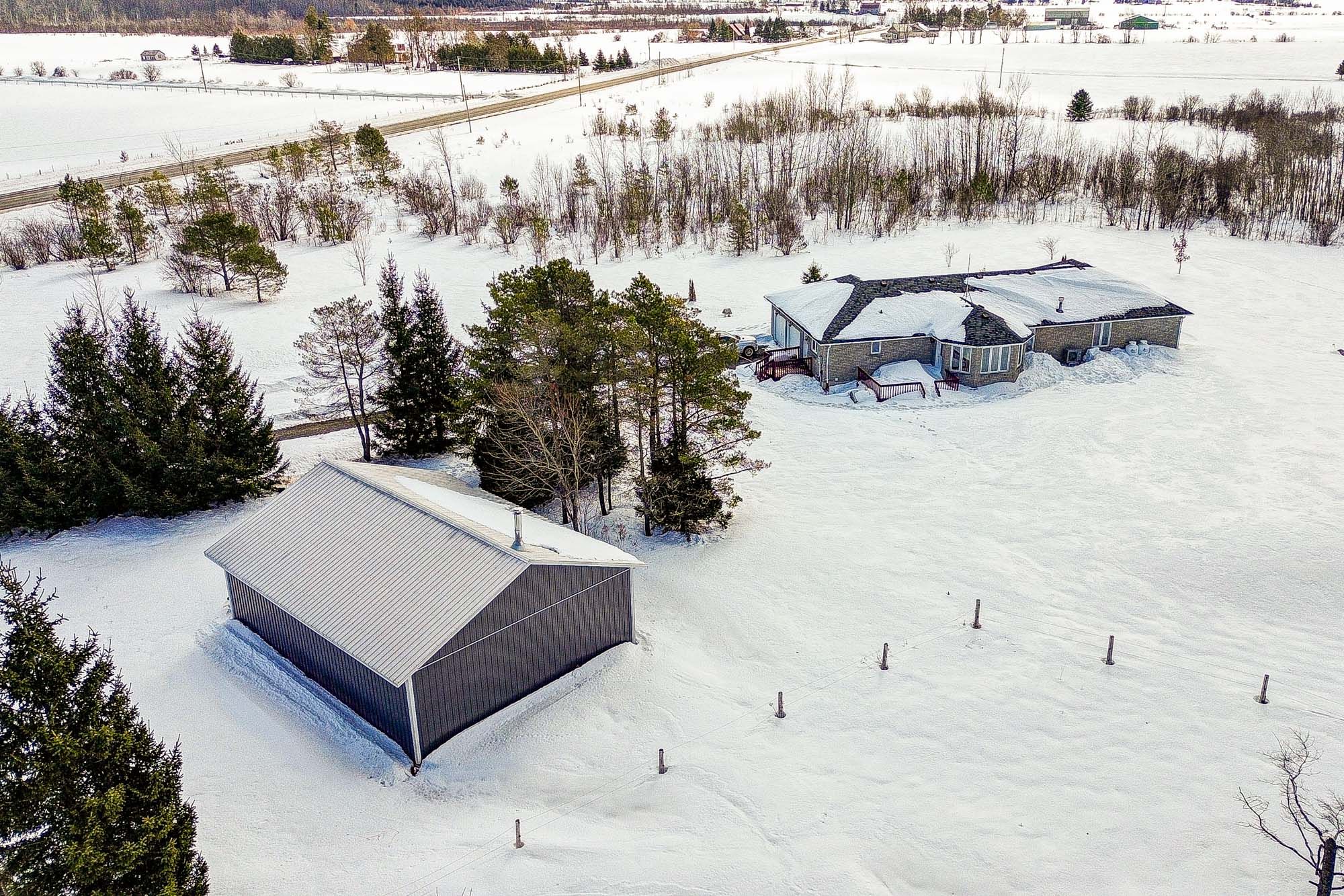 Attention nature lovers and outdoor enthusiasts! Your rare chance to own a stunning, open-concept bungalow nestled on aprivate and picturesque 107-acre lot! With 3 bedrooms and 3 bathrooms, this immaculate home oers approximately 2,200 sq. Ft. Of livingspace. The property features about 20 acres of workable land, with the remaining area covered in mixed bush, perfect for a variety of outdooractivities. A standout highlight is the impressive 30x40 ft insulated shop with a steel roof, ideal for storing all your toys. There are also twolarge fenced paddocks with a run-in shed, perfect for horses. With the property zoned for cannabis production and processing facilities(subject to general provisions b/l2021-057), the possibilities are endless. Whether you're looking to grow crops, start a hobby farm, enjoyhunting, or simply revel in the abundance of wildlife, ride snow mobile in winter, this property has it all. The huge unfinished basement oersenormous potential, waiting for your personal touch. Dont miss out on this extraordinary opportunity!