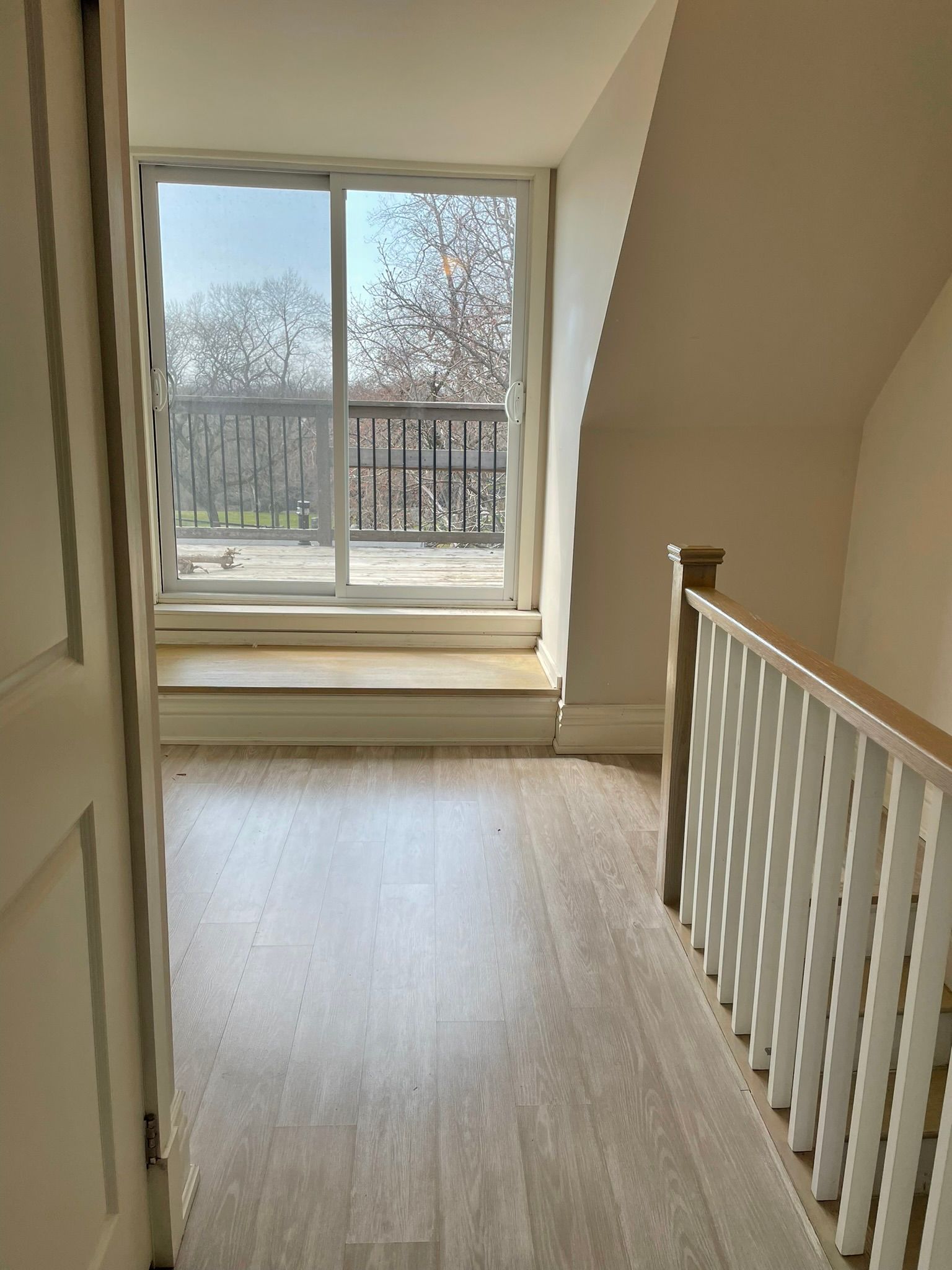 Steps to the beaches, boardwalk, parks, shops, restaurants, cafes and ttc. Spacious upper level 2 + 1 bedroom renovated apartment with upgraded bathrooms. Walk-out roof top deck, laminate thru-out. Must see units for families. Photos were taken before current tenants moved in.