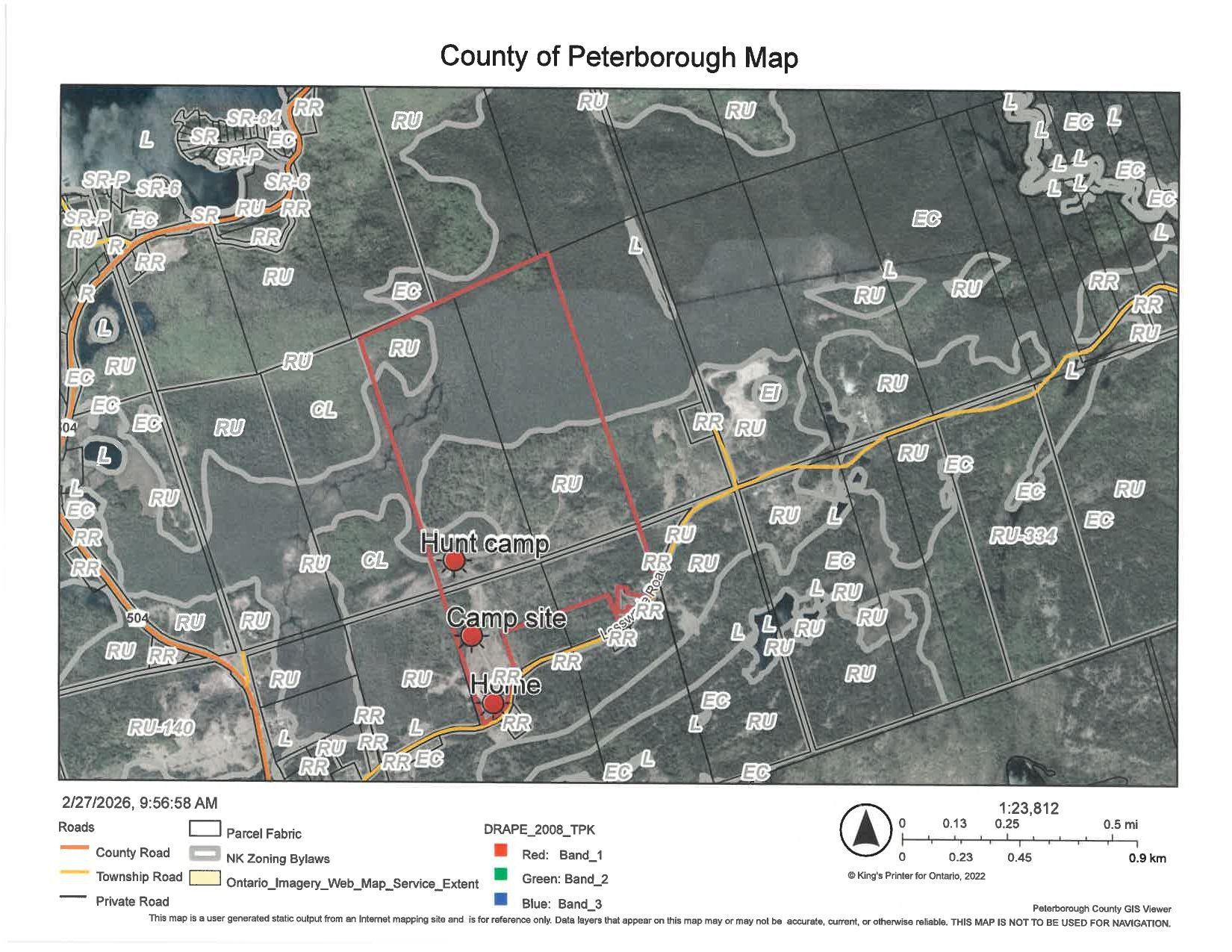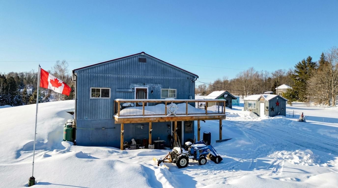 Room to roam! With 278 acres of mixed forest and an additional 100 acres of adjacent crown land, you won't need more space. The land has several trails and some nice open meadow as well. The two bedroom raised bungalow is ready to move into, featuring main floor living and a full undeveloped walk-out basement. The 9'6" ceilings and the huge viewing window make it feel like you are living outdoors, with amazing views over your acreage. The open concept living area includes a four piece bathroom and a laundry/pantry room right off the kitchen. The exterior is completely maintenance free, featuring a metal roof and galvanized siding that will last forever. The owners have created a driving range to practice your swing too. No problem having your hunting buddies, there is a well equipped hunt camp in the bush that would also make a great airbnb for nature lovers. Other features include a new septic system in 2025, new propane furnace and a/c, 7' commercial eavestroughs, a nice she shed, a storage shed, a camper trailer and an rv (no motor). The home is also roughed in for in floor heating, it just needs the boiler. Close to the town of apsley and minutes to "the gut" conservation area and several lakes with public access points. Whether you are relocating or investing in a lifestyle removed from the hustle and bustle, this place is a must see.