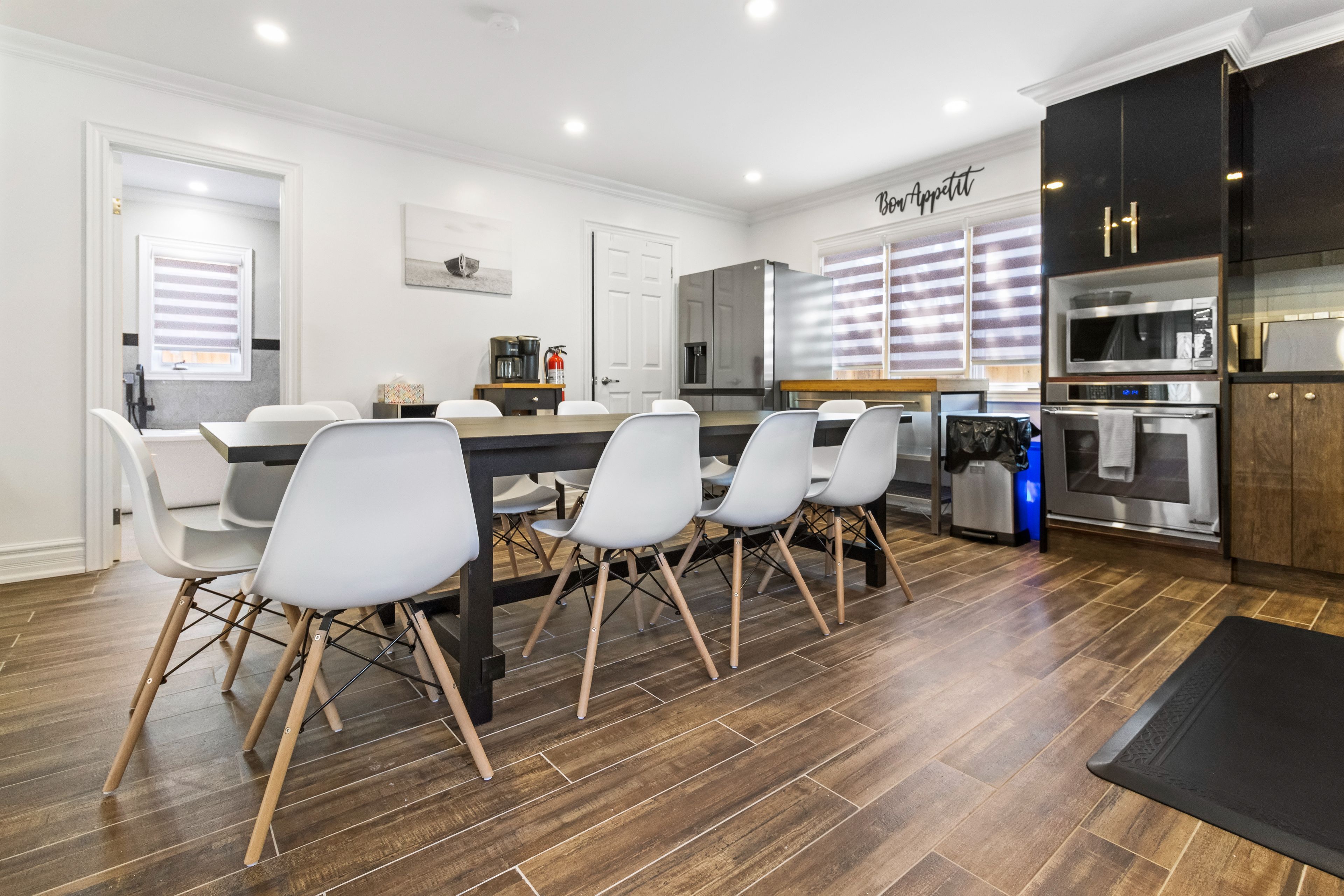 • Open-concept main floor with updated flooring and pot lights.